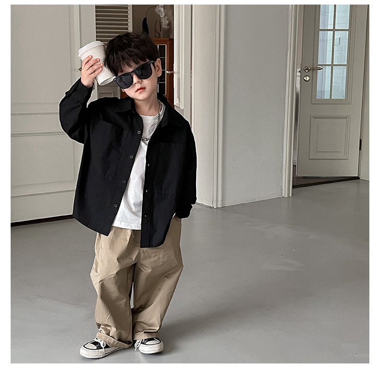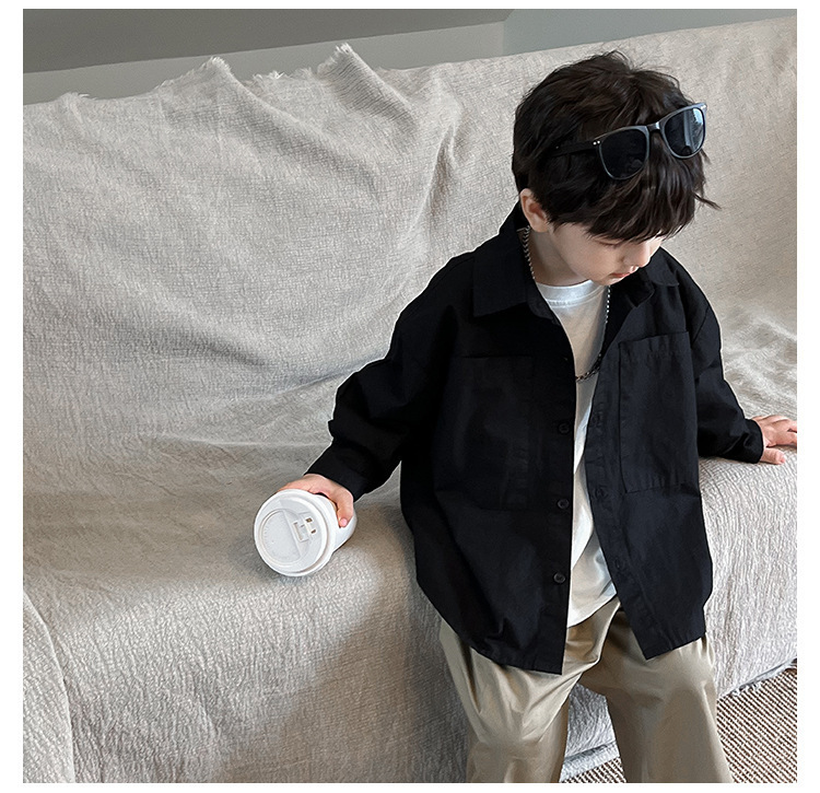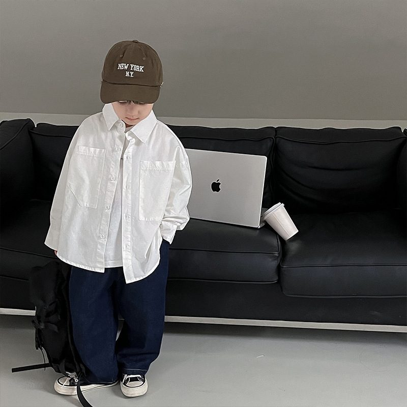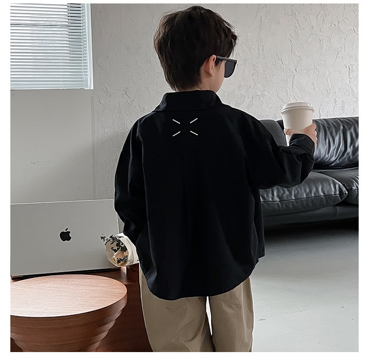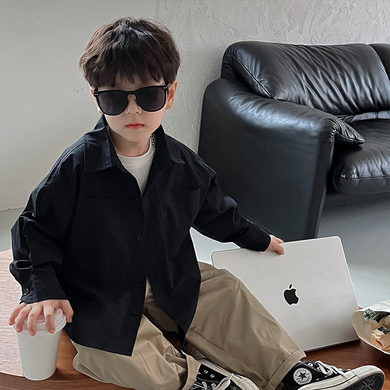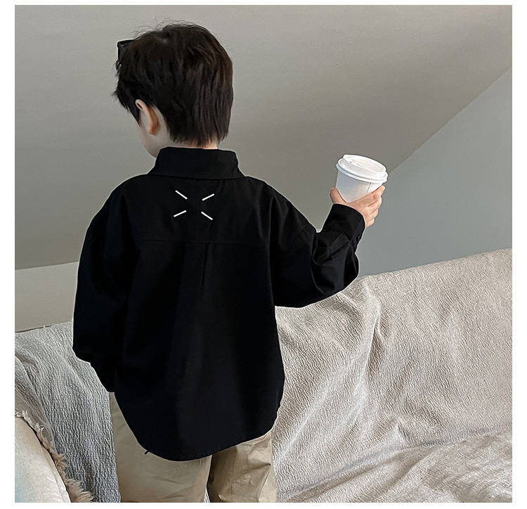 아동 셔츠 2025 어린이 멋진 가을 새로운 한국어 버전 단색 베이비 코트 서양식 수 놓은 소년 옷깃 셔츠스토어 가기