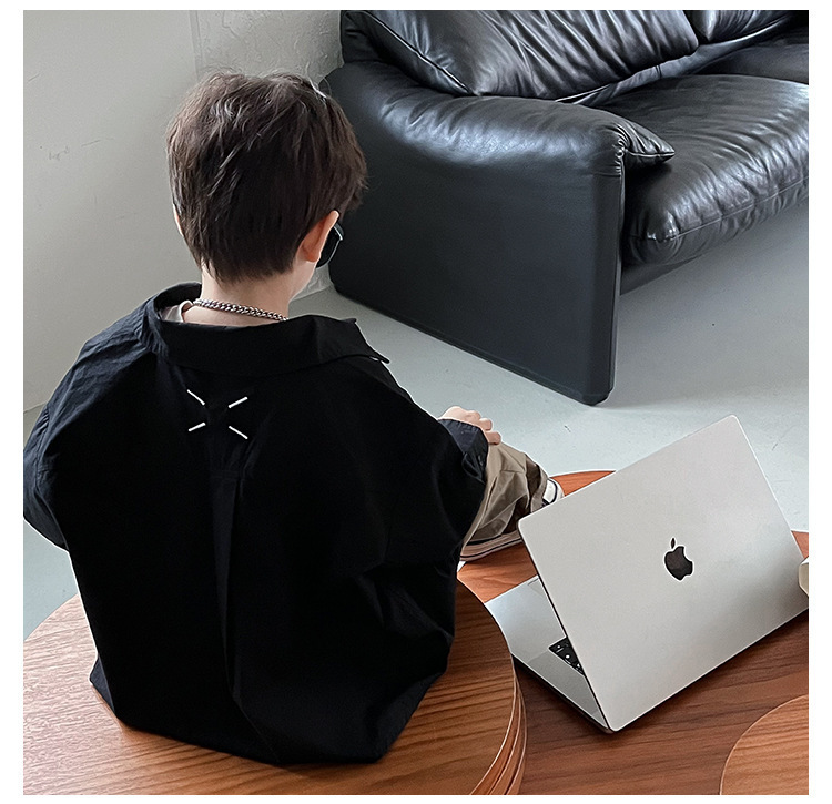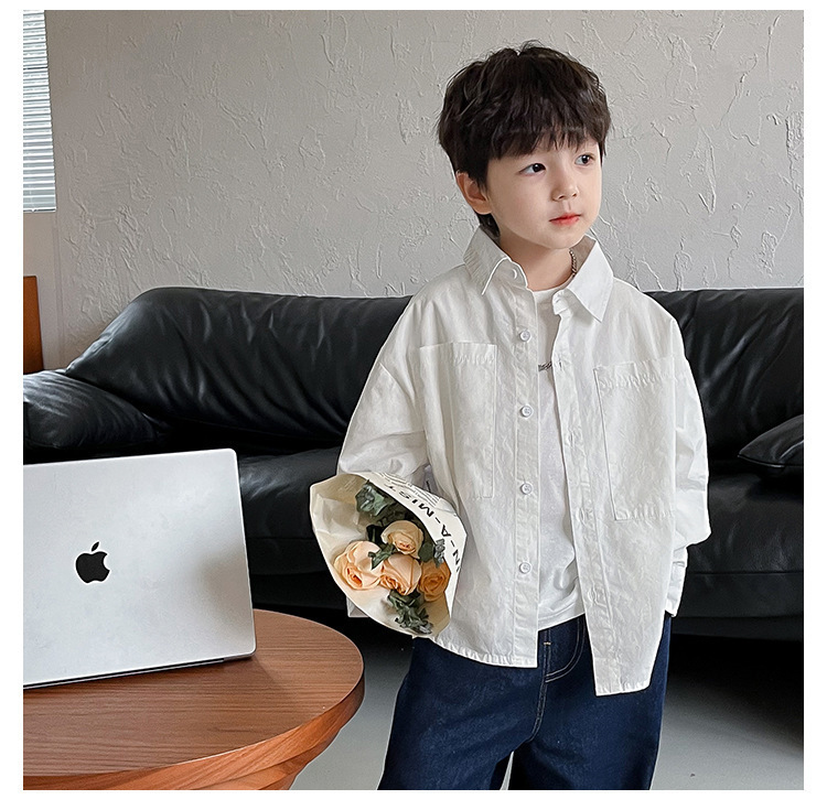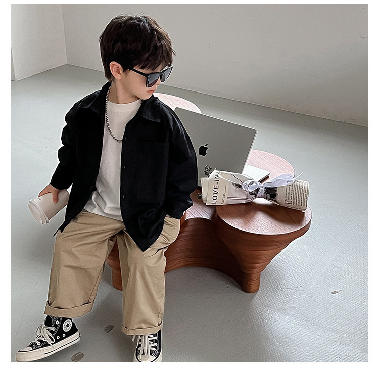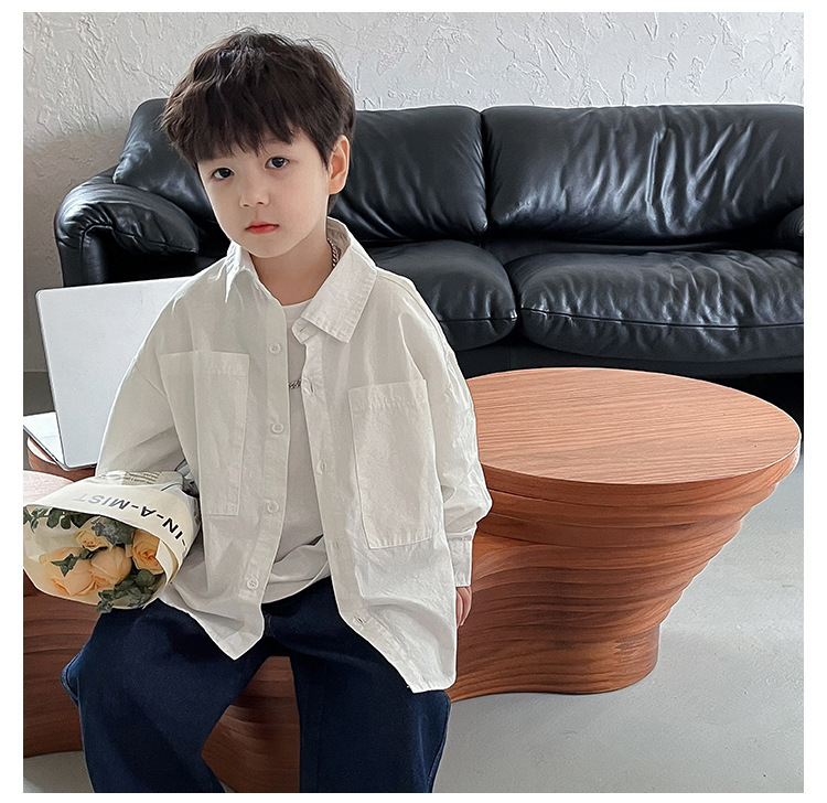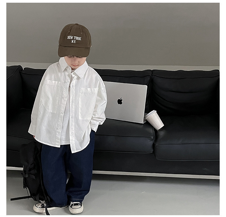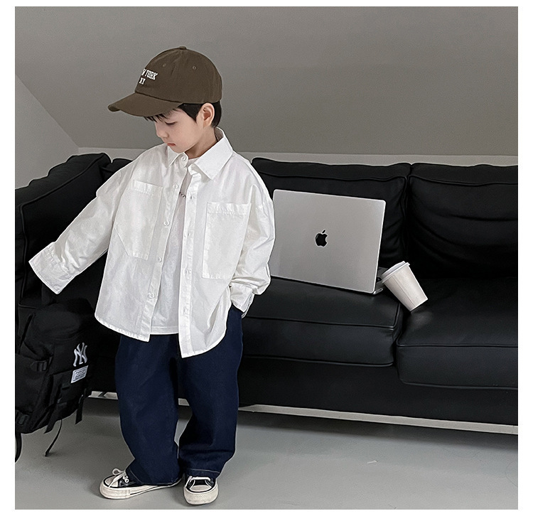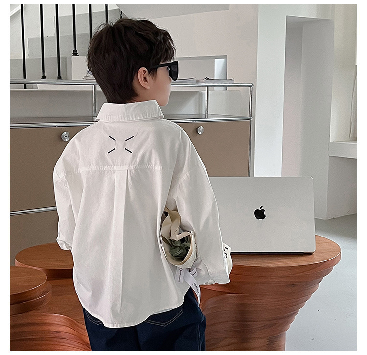아동 셔츠 2025 어린이 멋진 가을 새로운 한국어 버전 단색 베이비 코트 서양식 수 놓은 소년 옷깃 셔츠스토어 가기