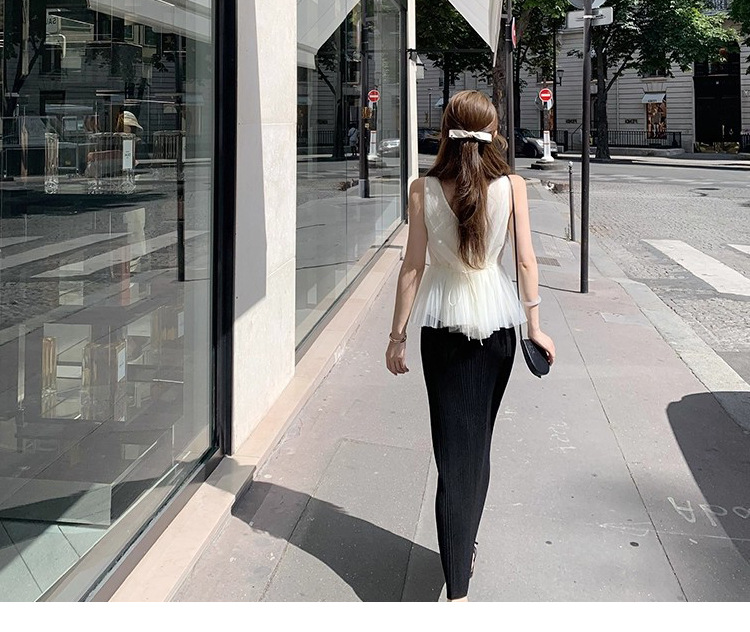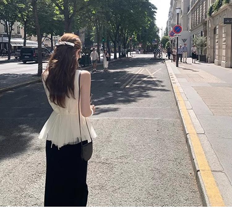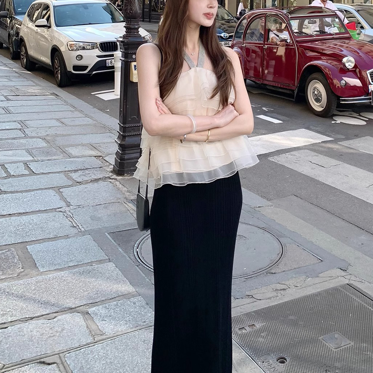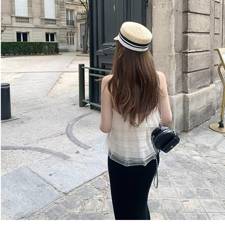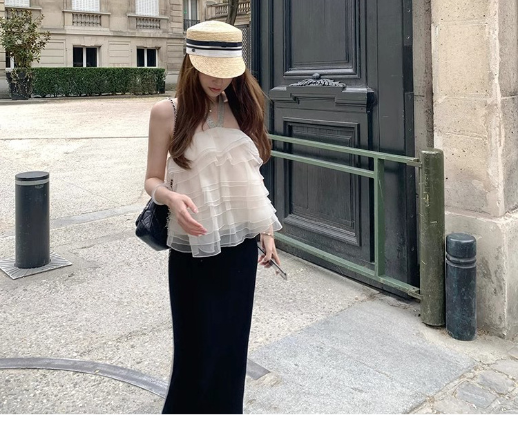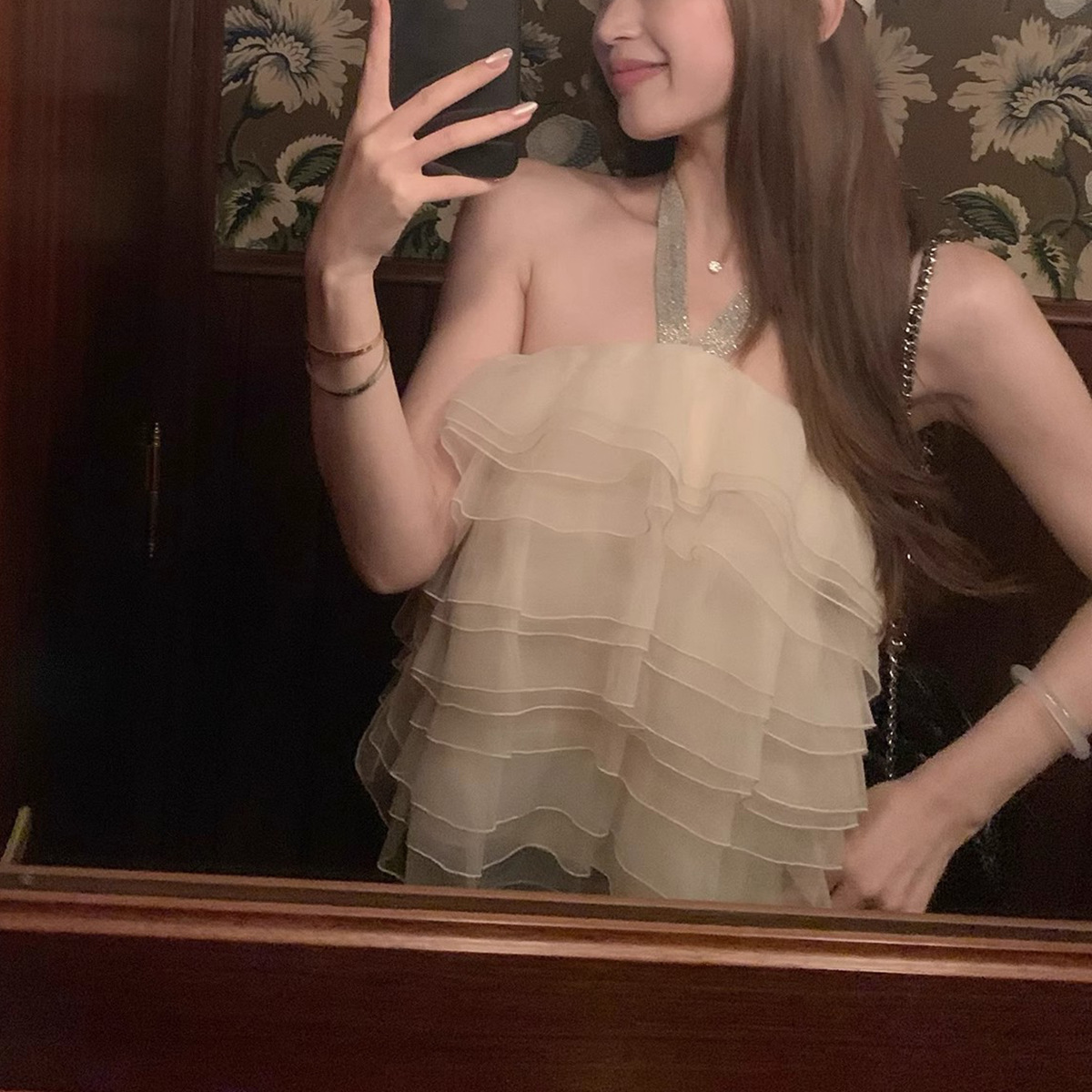 중간 여름의 꿈같은_컬렉션 bc 요정같은 레이어드 러플 홀터넥 탑 여성 고급스러운 스타일 끈 없는 탑 순백색스토어 가기