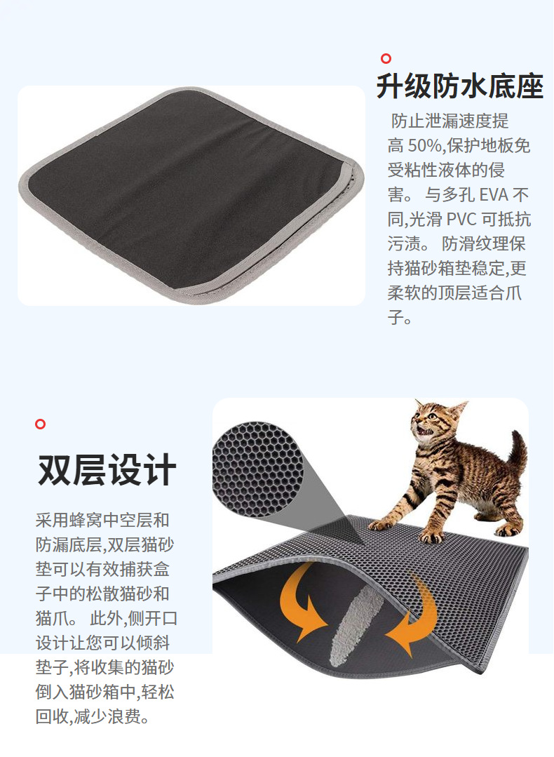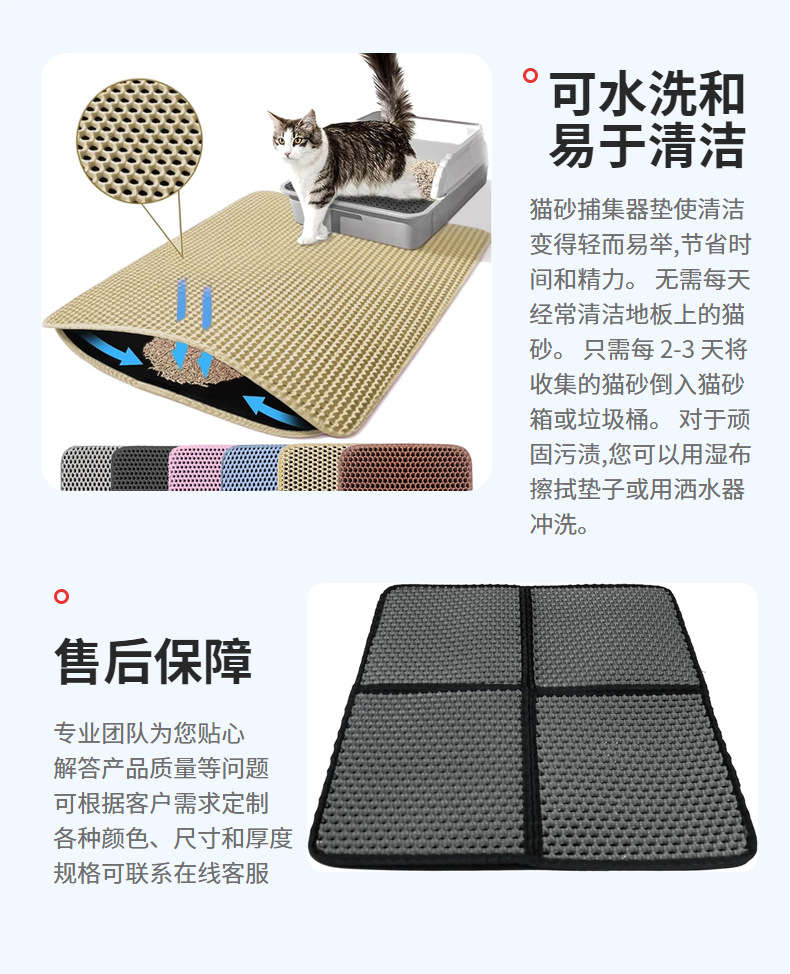 두꺼운 1.3cm 고양이 모래 패드, 고양이 모래 상자에서 새는 것을 방지하는 패드, 상하 이중층 필터 모래 제어 애완 동물 패드