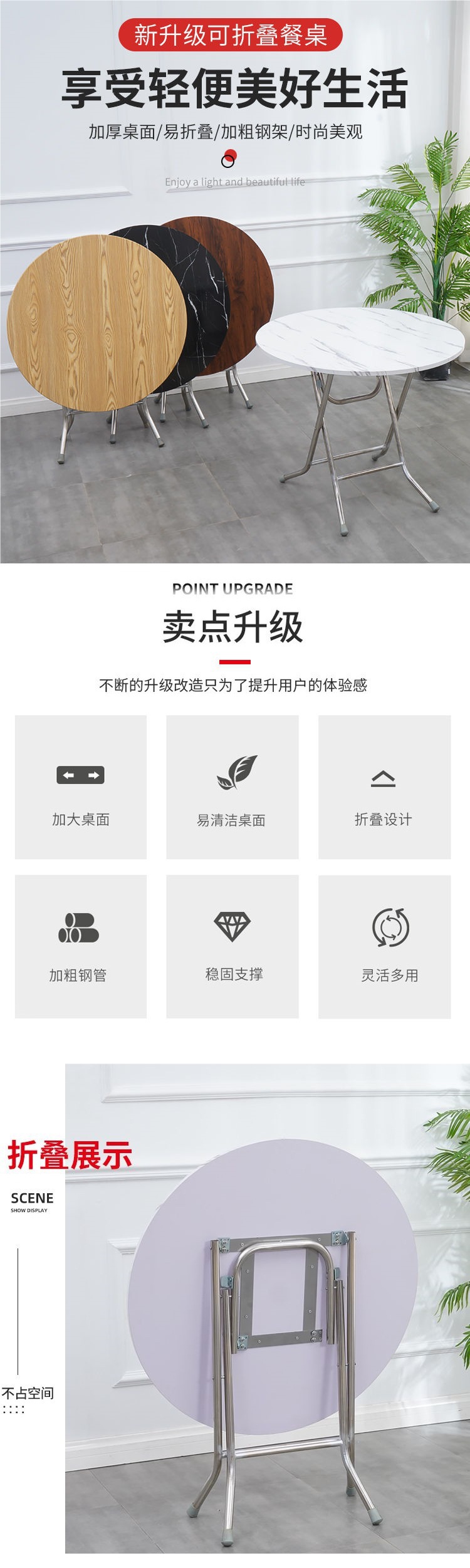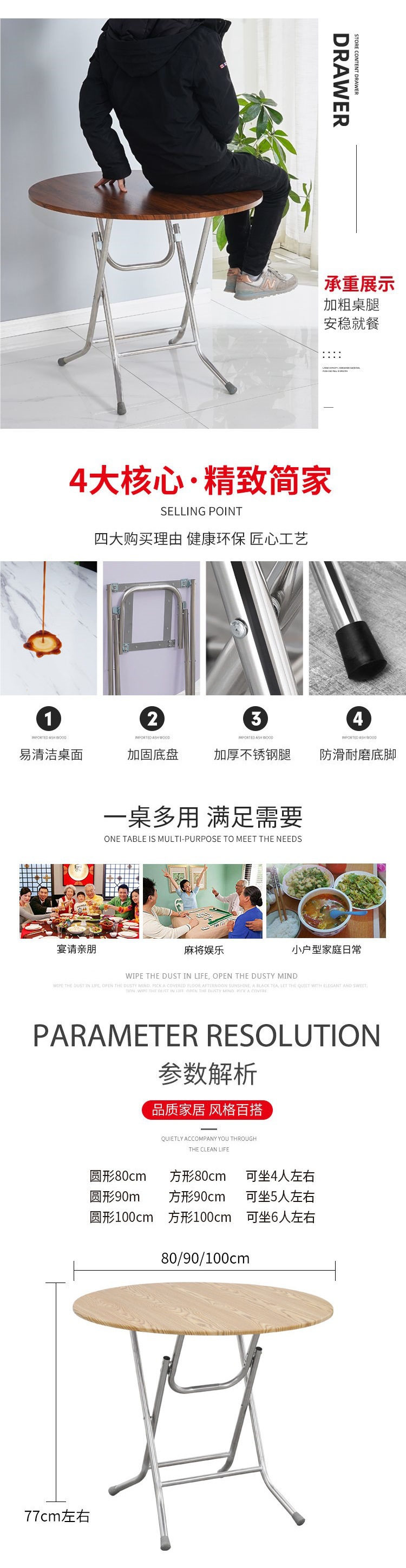 접이식 스톨 테이블 식탁 가정용 간단한 접이식 소형 아파트 임대 주택 간단한 원형 야외 식탁스토어 가기