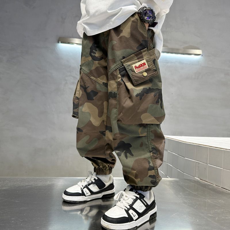 소년 캐주얼 소년 위장 바지 새로운 유행 바지 아동 의류 봄, 가을 2025 유행 가을 의류 중대형 아동 작업복