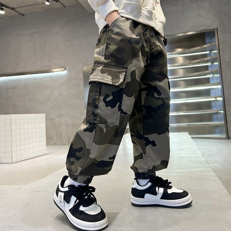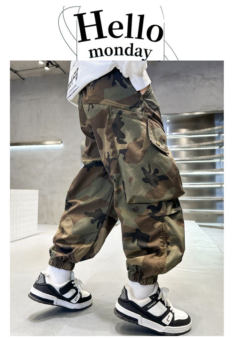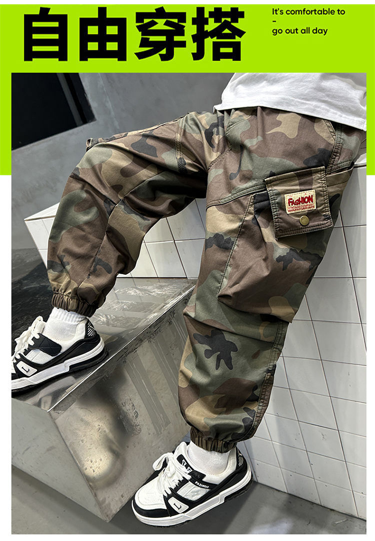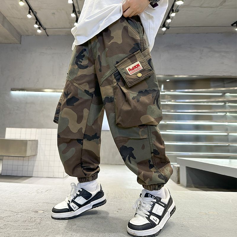 소년 캐주얼 소년 위장 바지 새로운 유행 바지 아동 의류 봄, 가을 2025 유행 가을 의류 중대형 아동 작업복스토어 가기