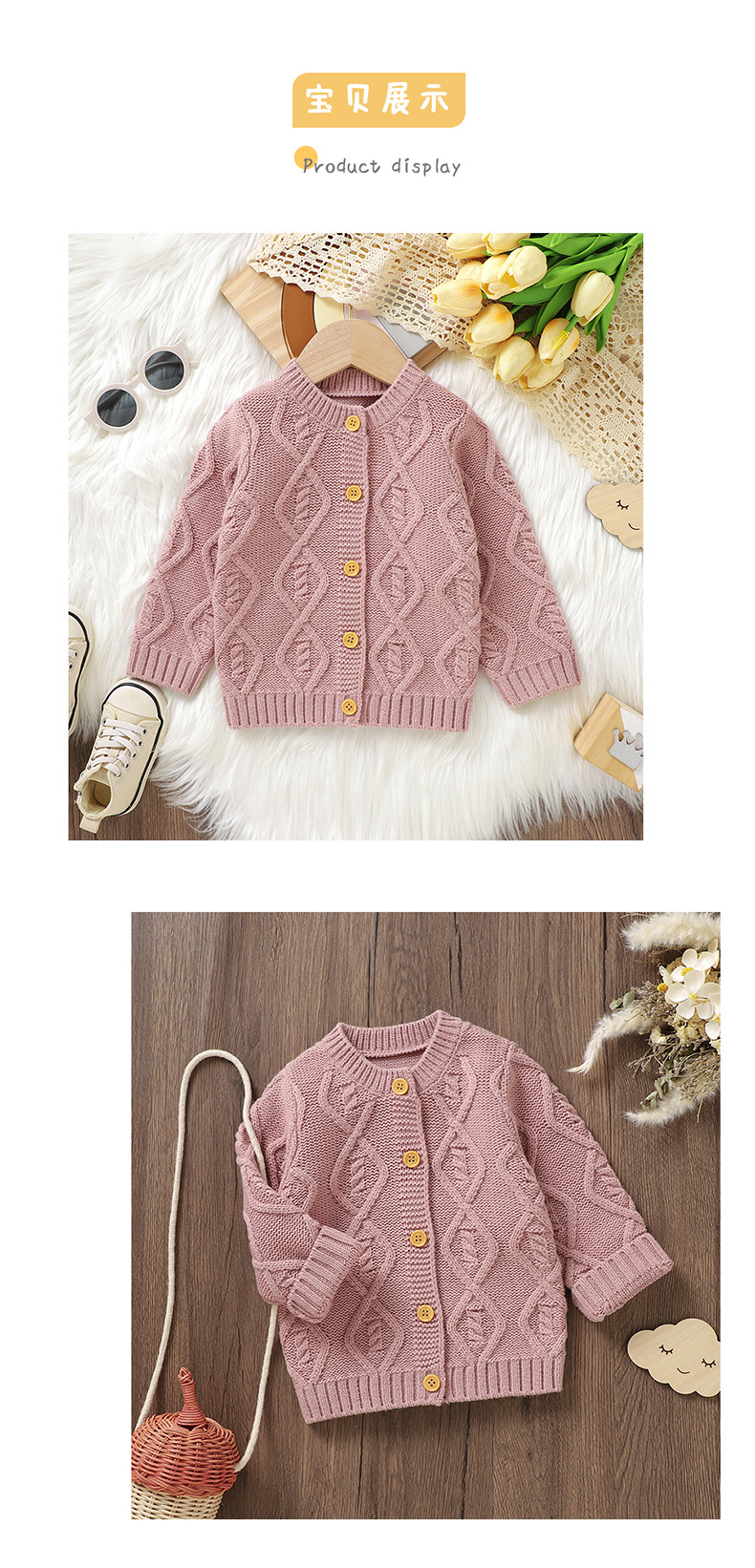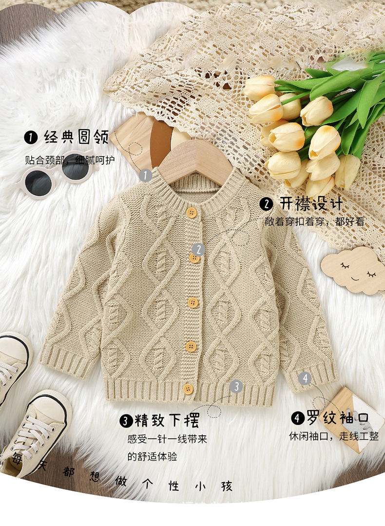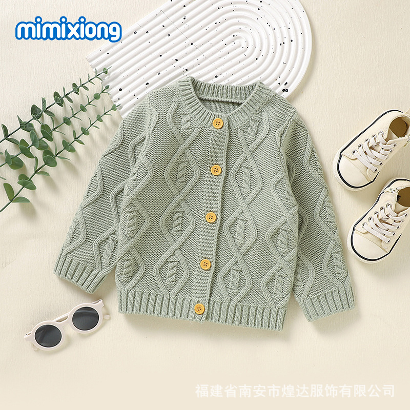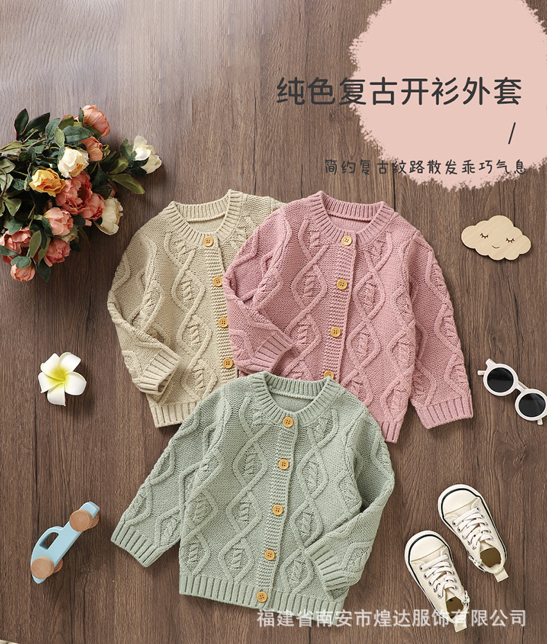 Ins 뜨거운 판매 가을, 겨울 새로운 스타일 남성과 여성의 아기 단색 입체 질감 니트 따뜻한 방풍 재킷 아기 카디건스토어 가기