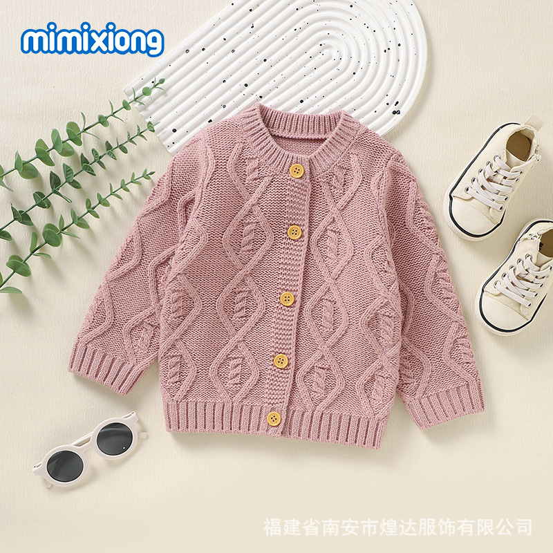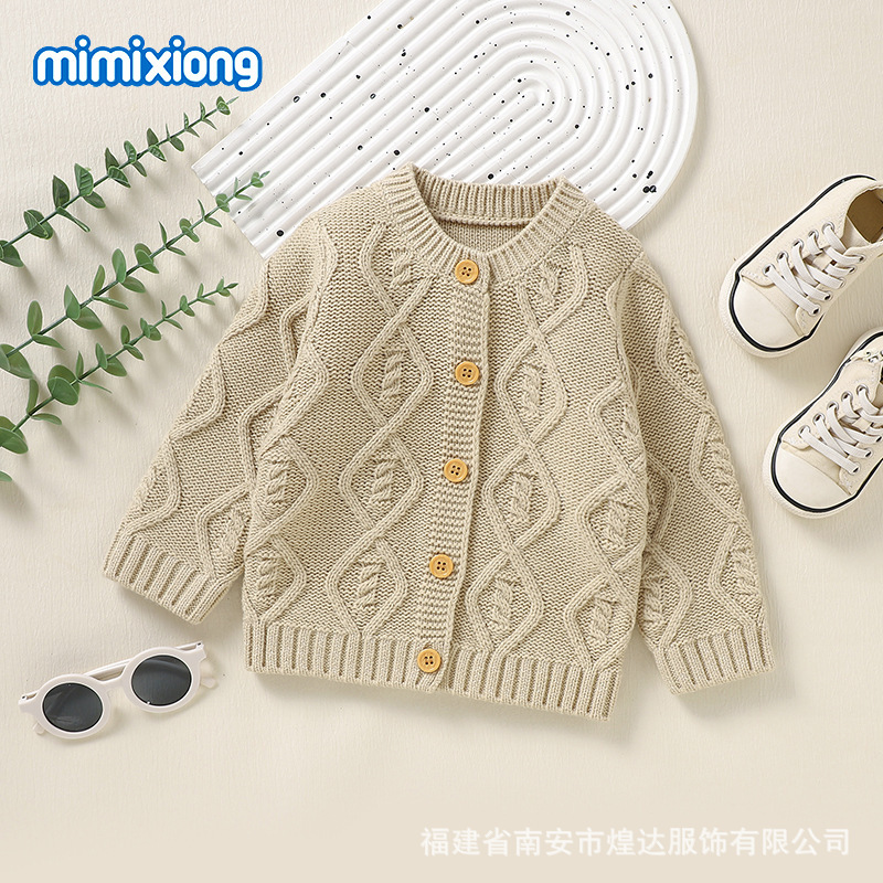 Ins 뜨거운 판매 가을, 겨울 새로운 스타일 남성과 여성의 아기 단색 입체 질감 니트 따뜻한 방풍 재킷 아기 카디건