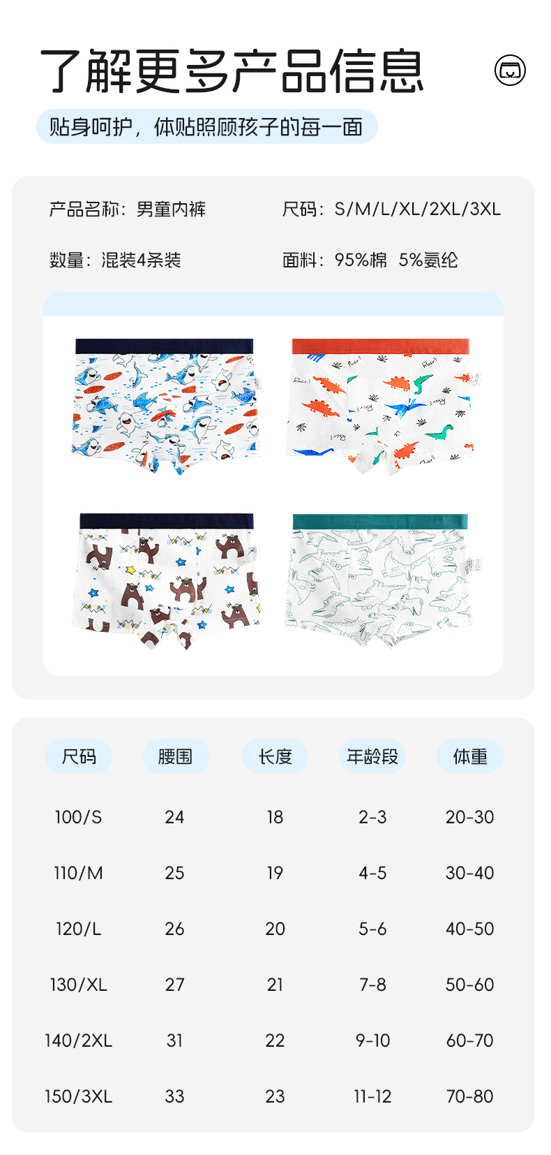 남아용 속옷, 사각 면반바지, 아동용 사각팬티, 남아용, 엉덩이가 꼬이지 않는 항균팬츠