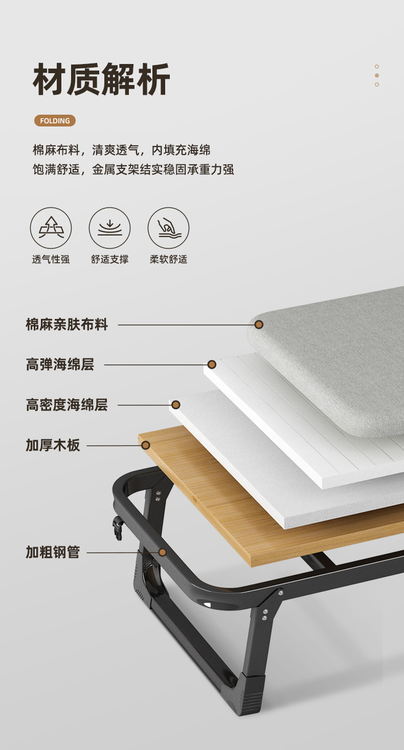 접이식 침대 점심 시간 안락 의자 사무실 싱글 침대 낮잠 홈 성인 휴대용 군대 간단한 동반자 L&