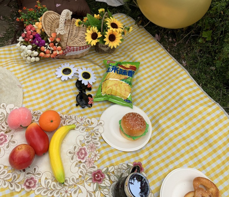 • 노란색 체크무늬 [150X200cm] 휴대용
