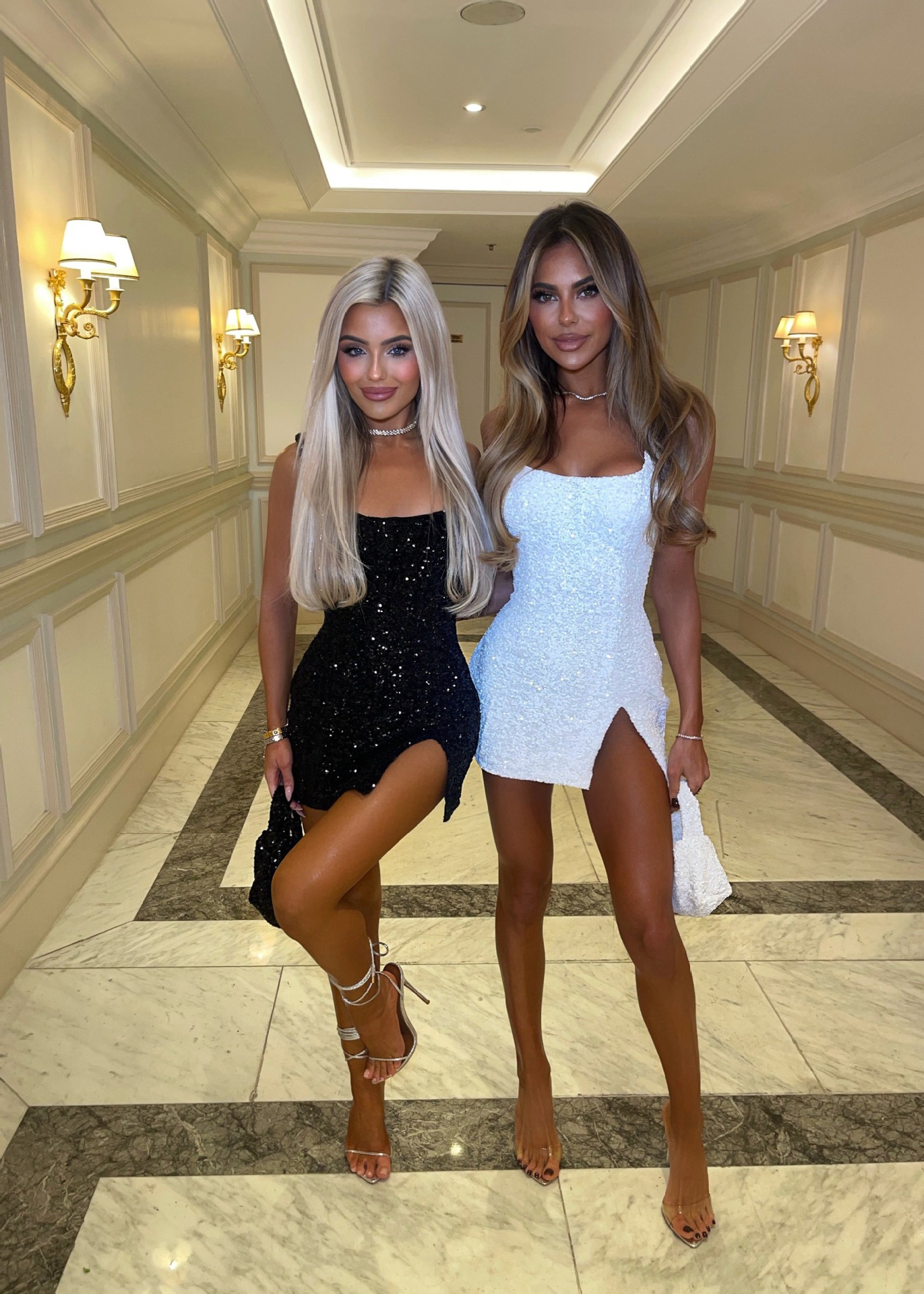 2025 유럽과 미국의 봄 여름 패션 새로운 국경 간 컬러 다이아몬드 격자 스팽글 슬릿 힙 커버 섹시한 드레스 도매스토어 가기