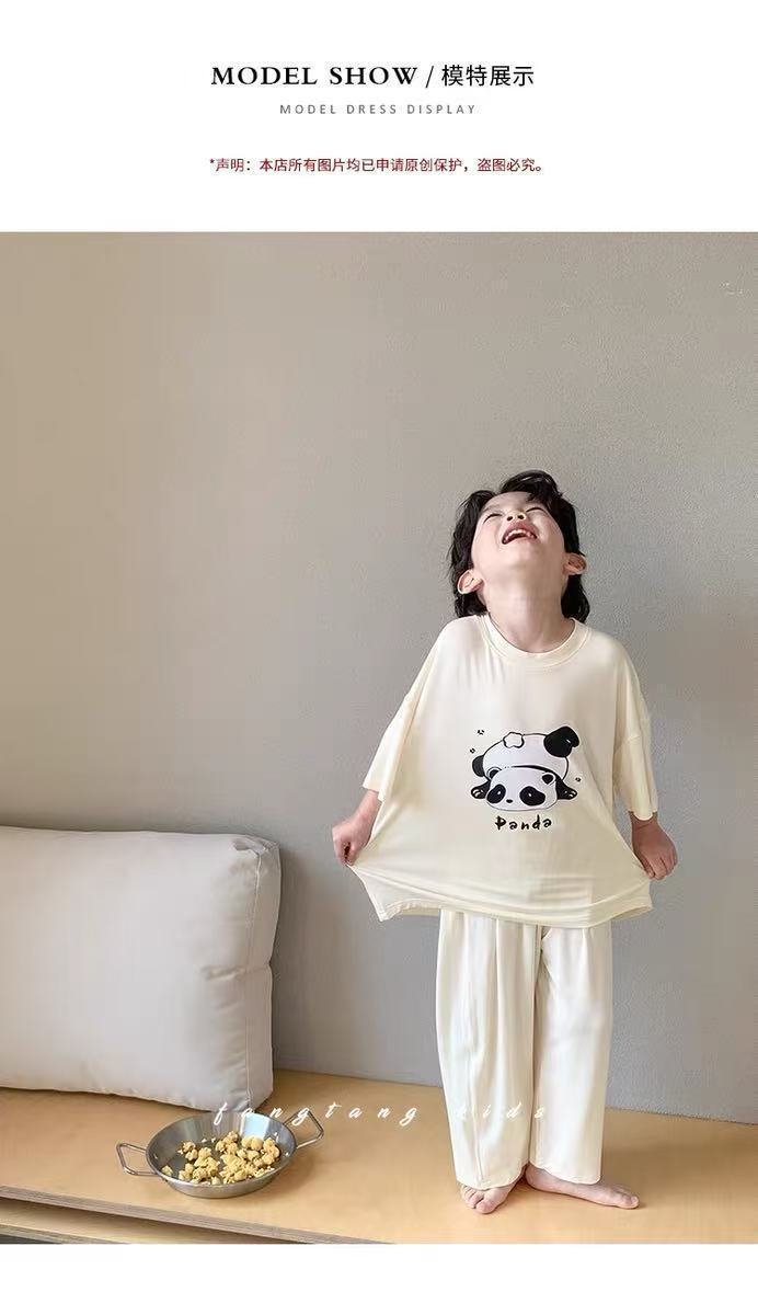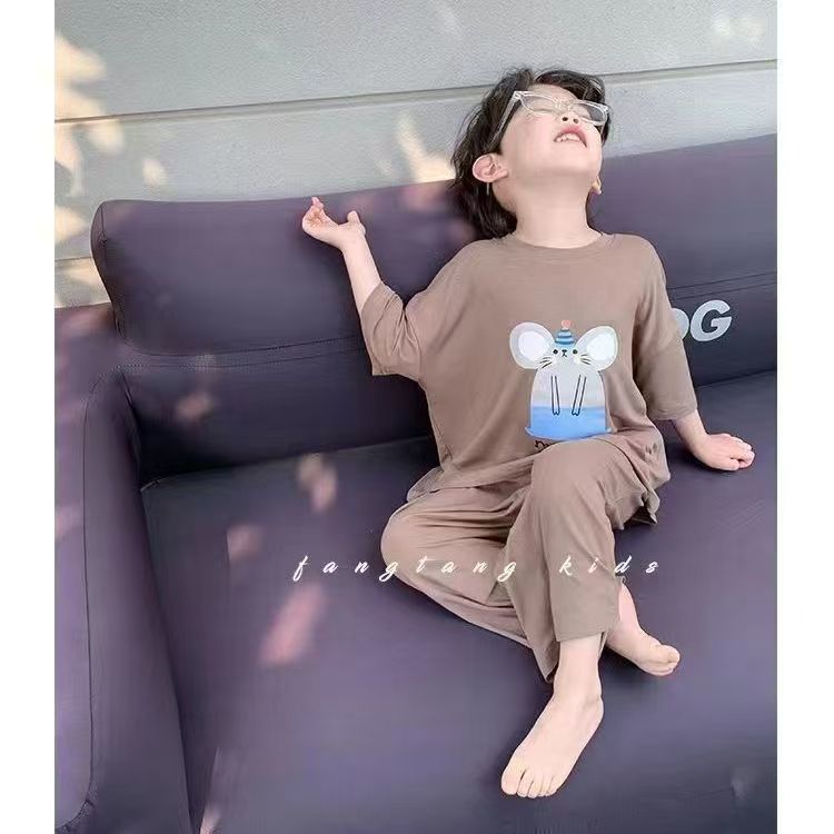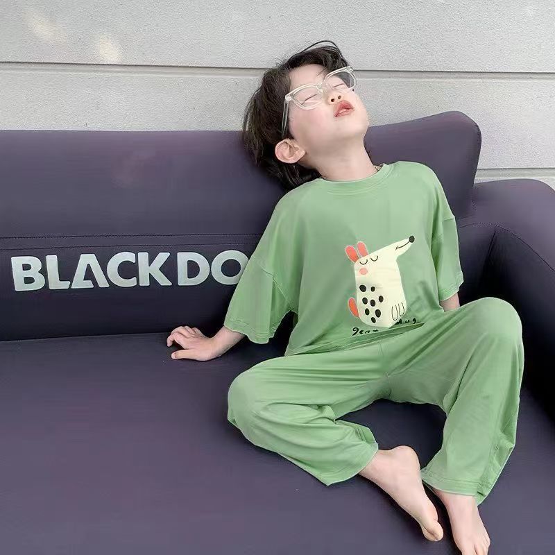 모달 어린이 잠옷 2025 여름 얇은 소년 반팔 가정 의류 세트 소년 캐주얼 의류 에어컨 의류스토어 가기