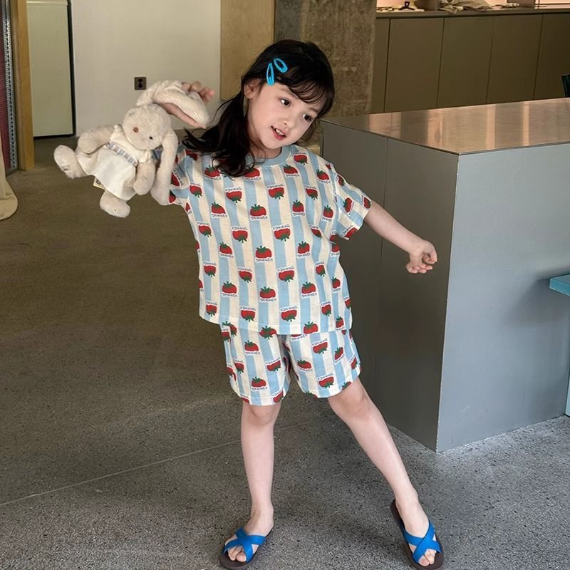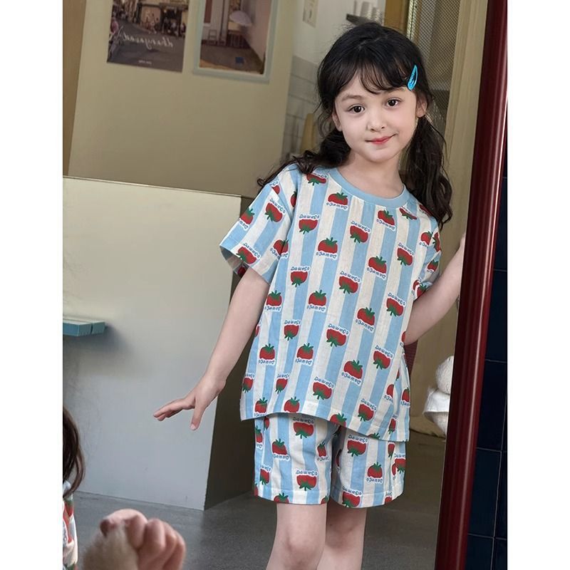 여자 잠옷 풀오버 새로운 얇은 만화 반바지 어린이 가정 의류 세트 반팔 여름 잠옷 큰 소녀를위한스토어 가기