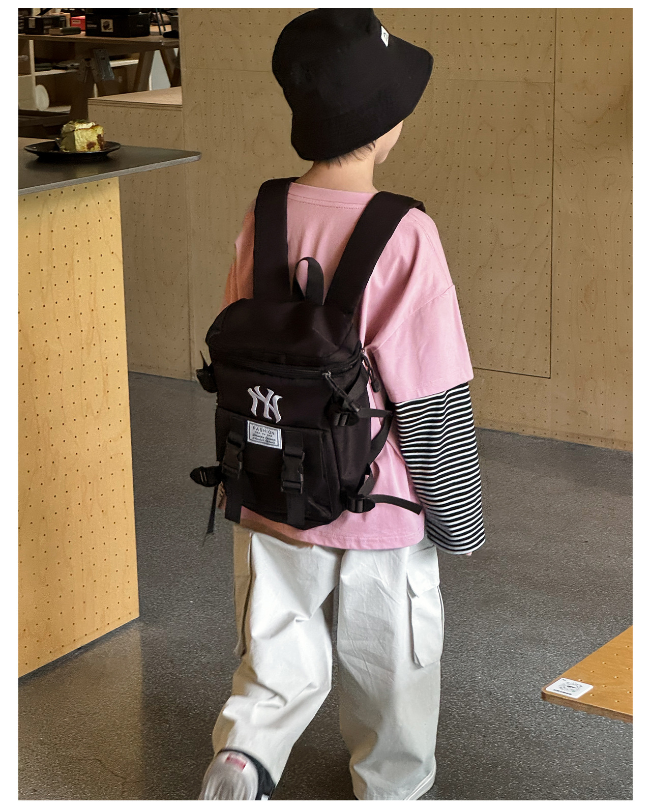통쿠2026 남아용 봄 스타일 호주 직조리 아동복 트렌디한 레터 프린트 페이크 투피스 루즈핏 아동 티셔츠 멋짐