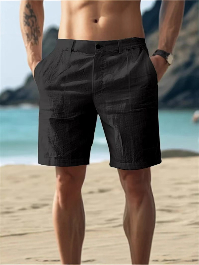 크로스보더 남성용 면 및 린넨 여름 2025 솔리드 컬러 버튼 비치 데일리 아웃도어 통기성 스트레이트 캐주얼 반바지