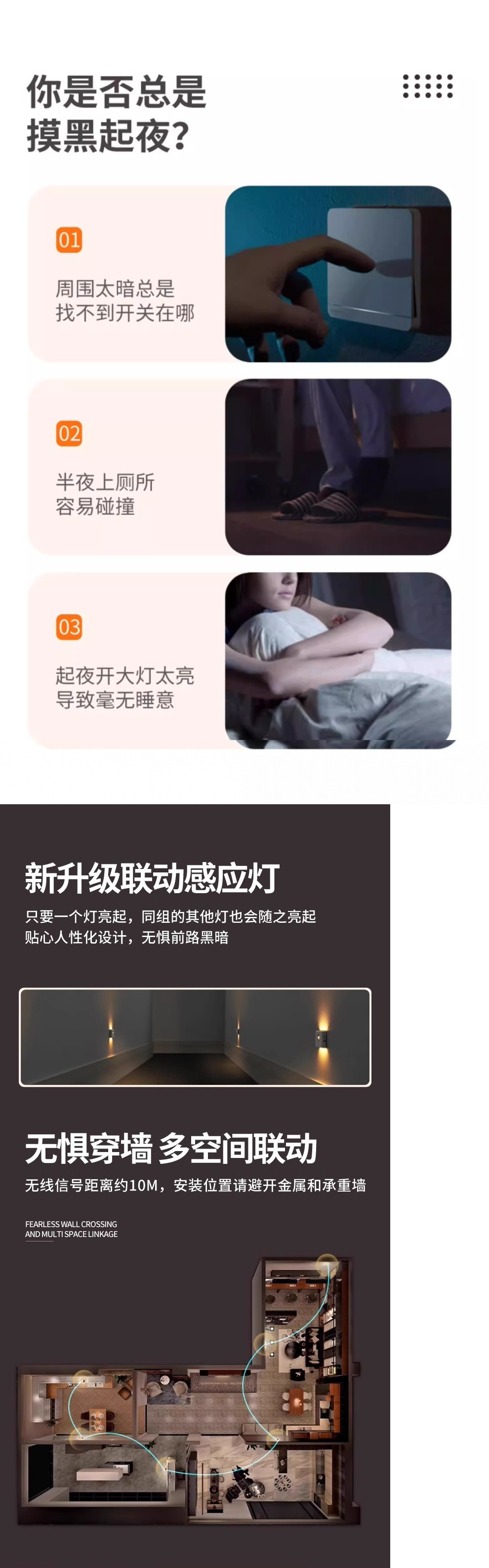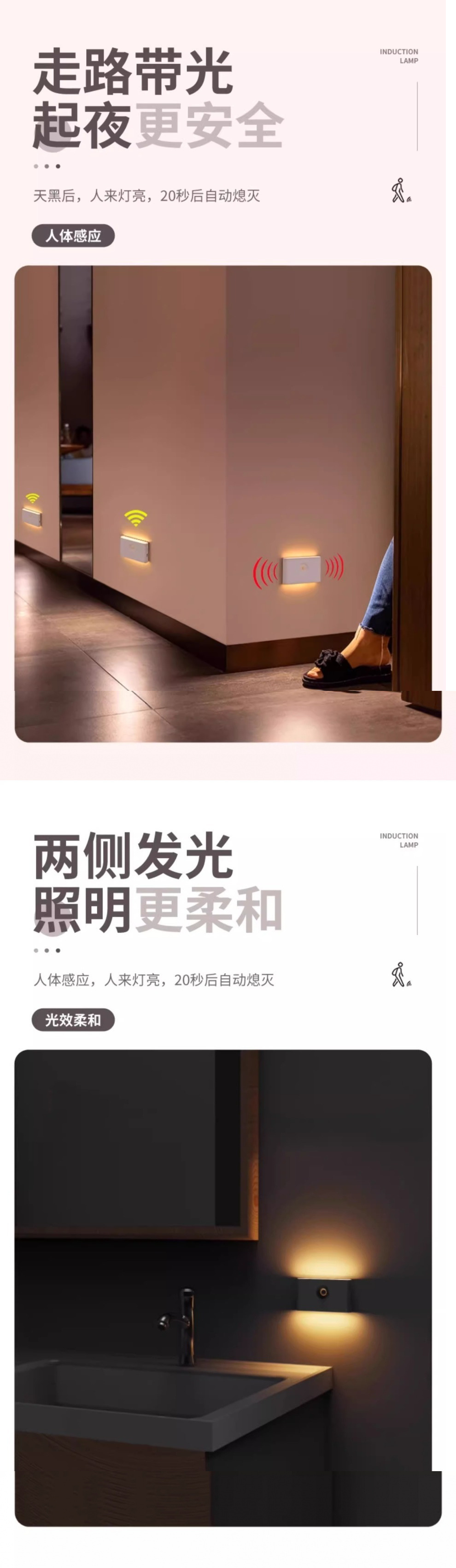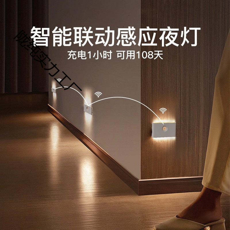 연동 스마트 인체 센서 램프 통로 홈 복도 충전 측면 발광 센서 램프 침실 머리맡 야간 조명