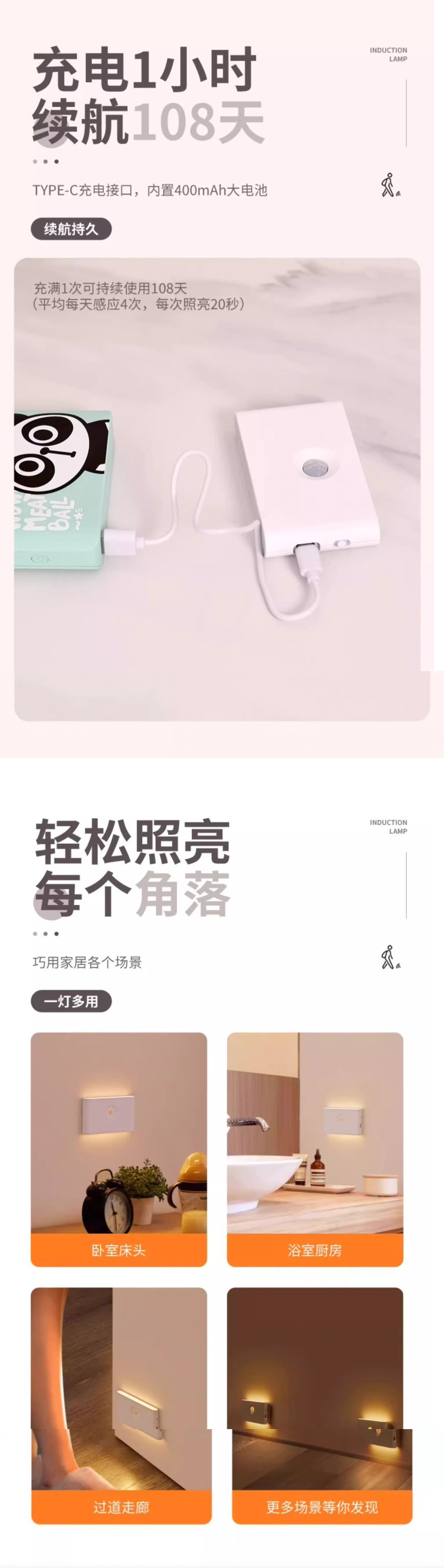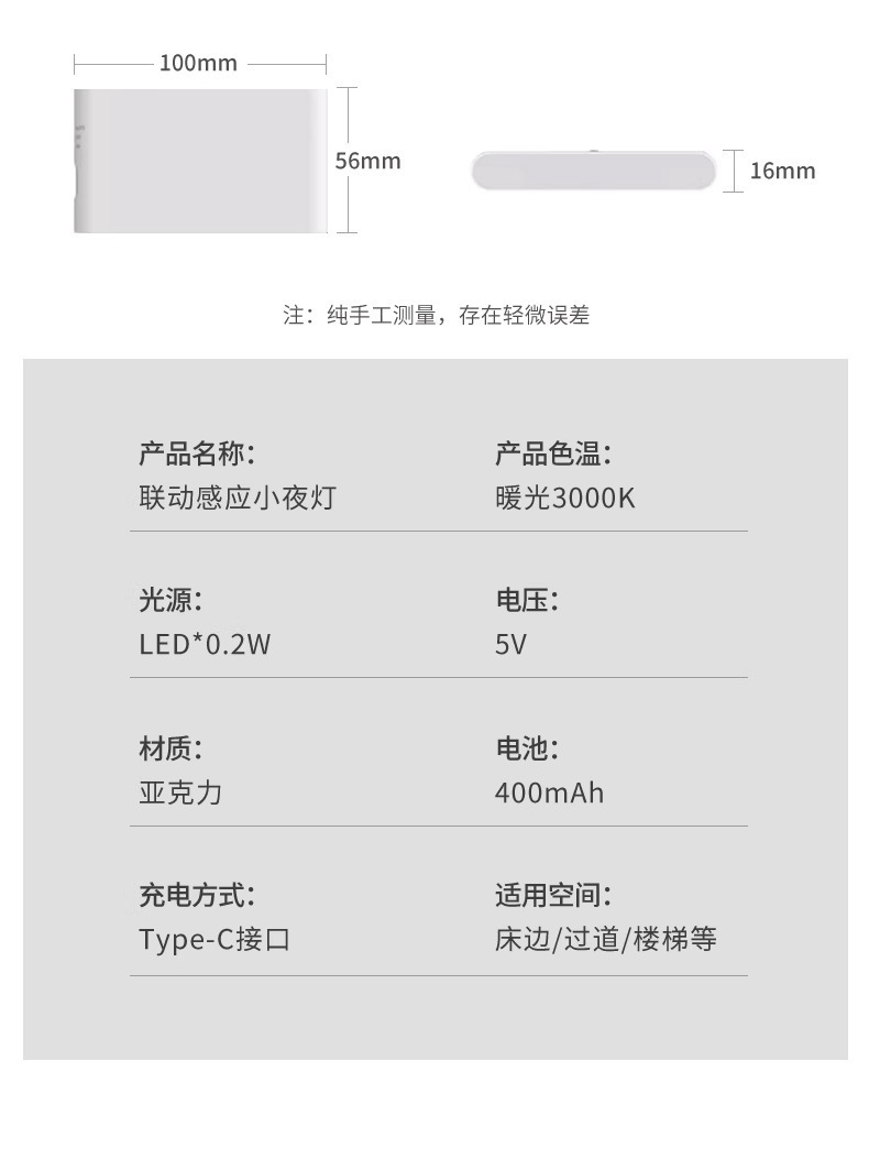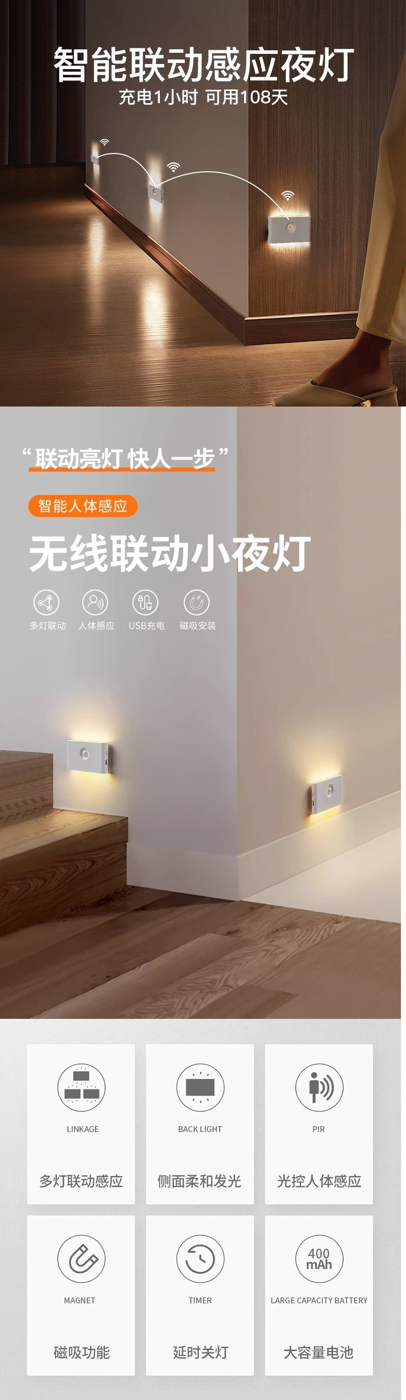 연동 스마트 인체 센서 램프 통로 홈 복도 충전 측면 발광 센서 램프 침실 머리맡 야간 조명