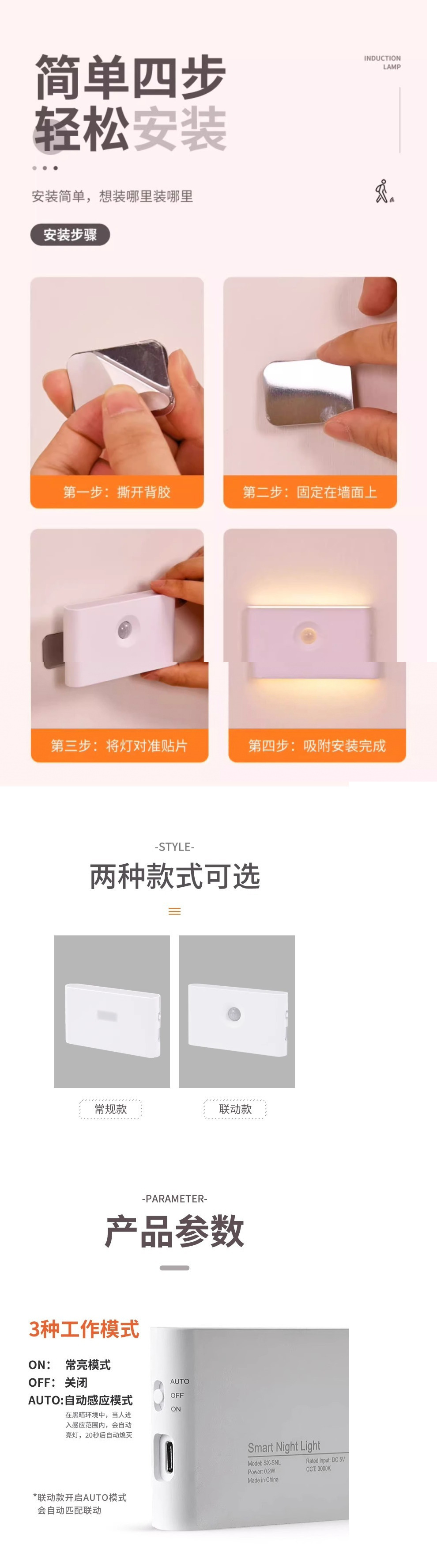 연동 스마트 인체 센서 램프 통로 홈 복도 충전 측면 발광 센서 램프 침실 머리맡 야간 조명스토어 가기