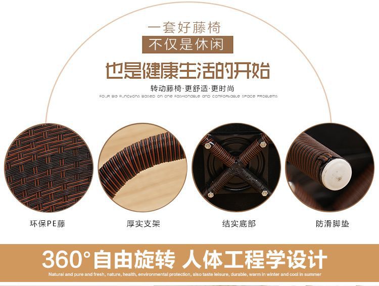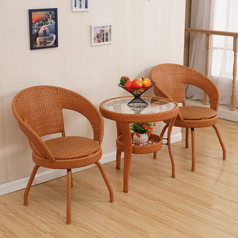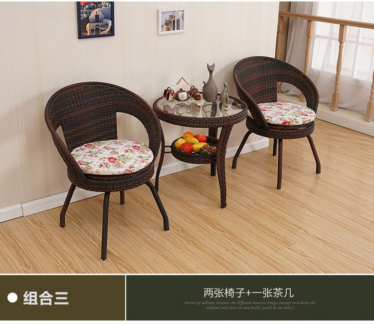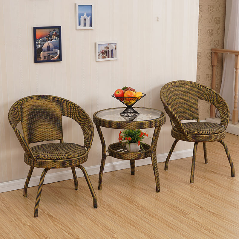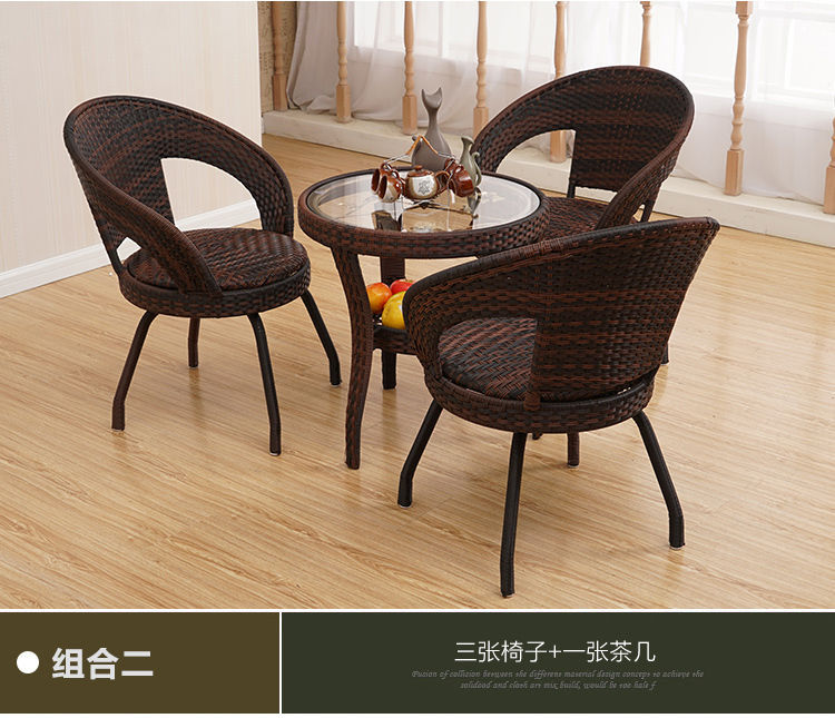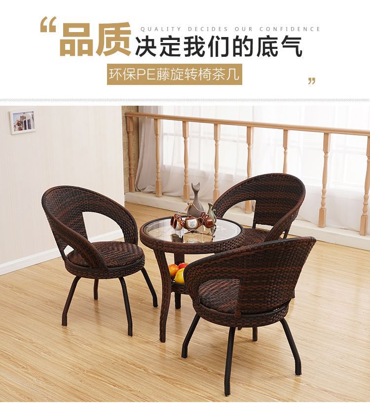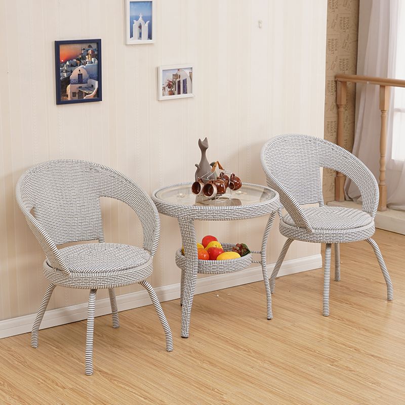 발코니 레저 테이블과 의자 등나무 의자 회전 3피스 세트 홈 실내 레저 안뜰 회전 의자 야외 조합 의자스토어 가기