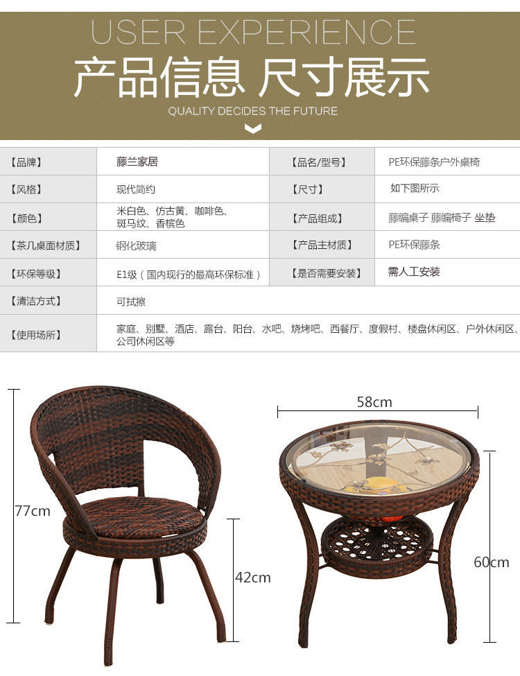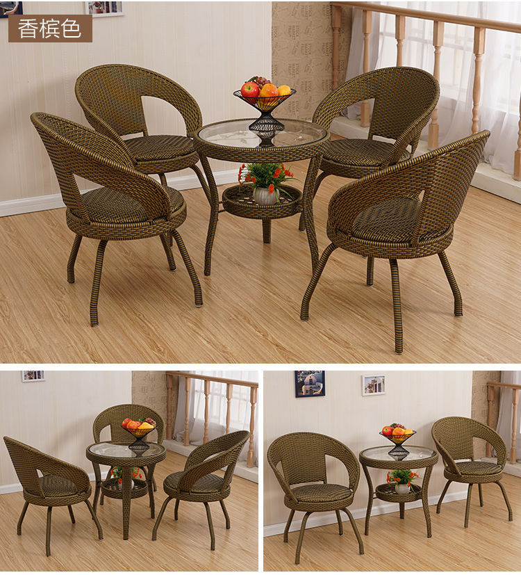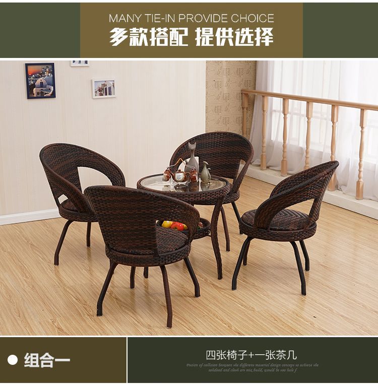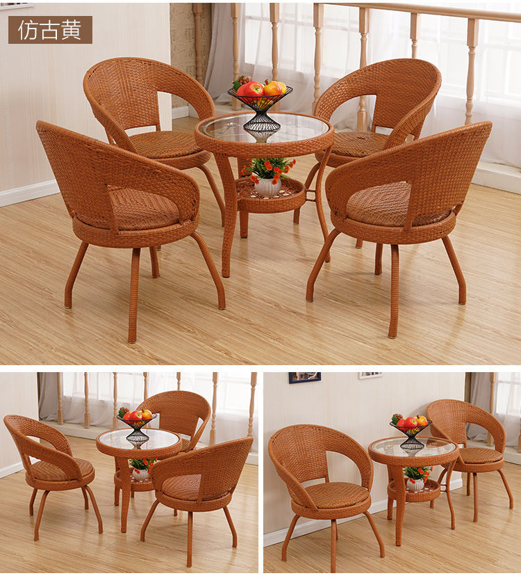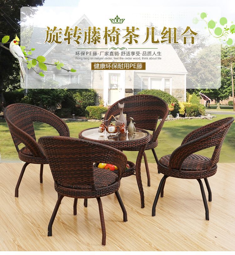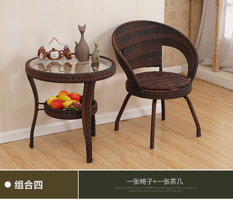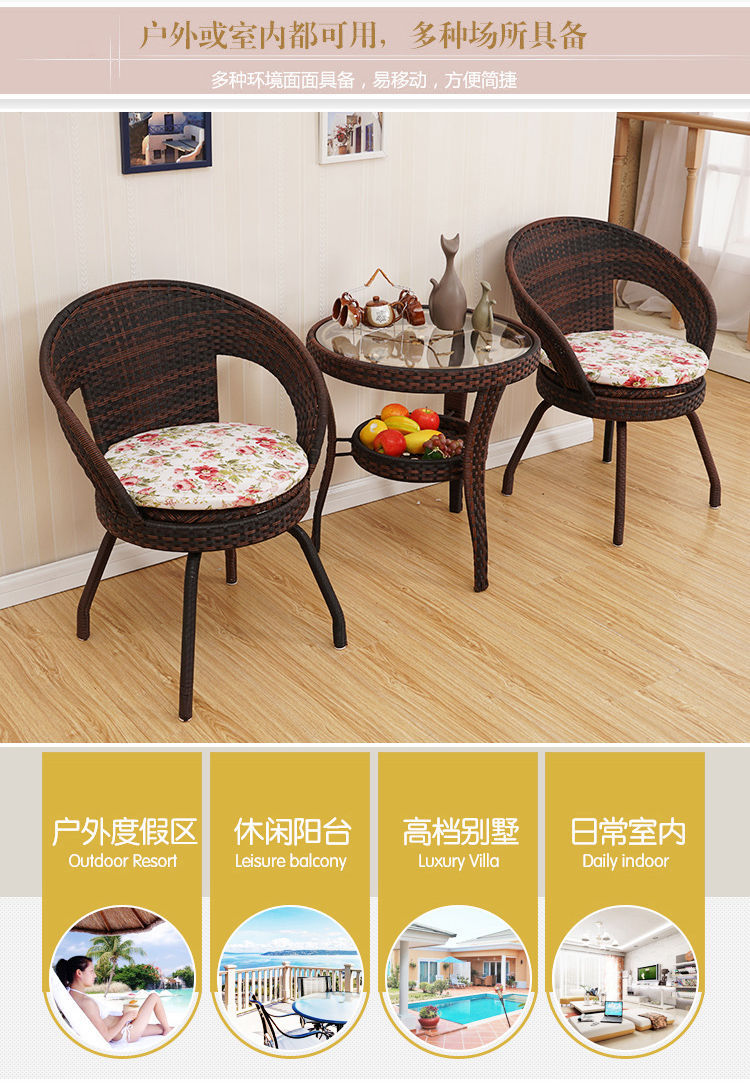 발코니 레저 테이블과 의자 등나무 의자 회전 3피스 세트 홈 실내 레저 안뜰 회전 의자 야외 조합 의자스토어 가기