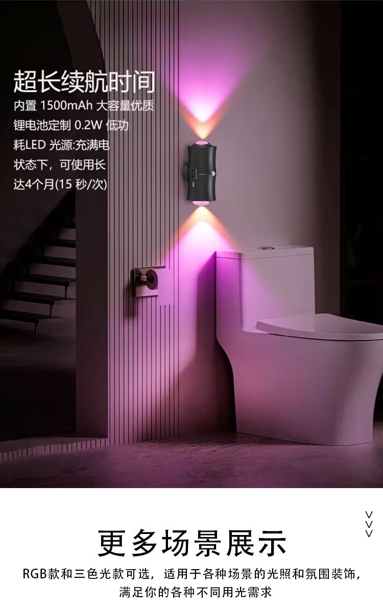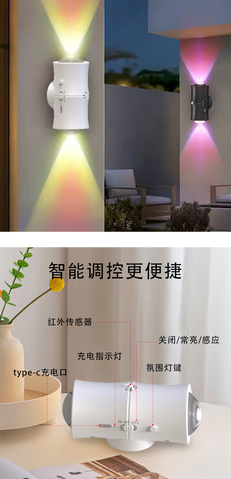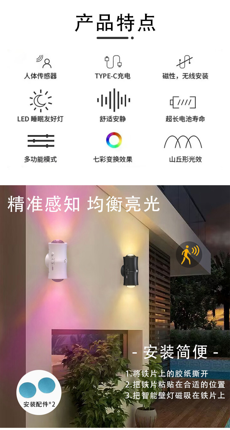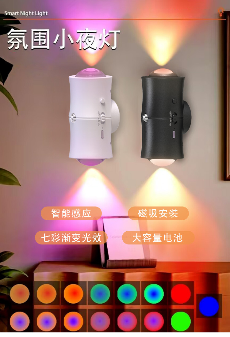 분위기 조명, 설치 불필요, 자기흡착 충전, 스마트 인체감지, 침실 침대 옆 양방향 벽등, 스마트 센서 야간등