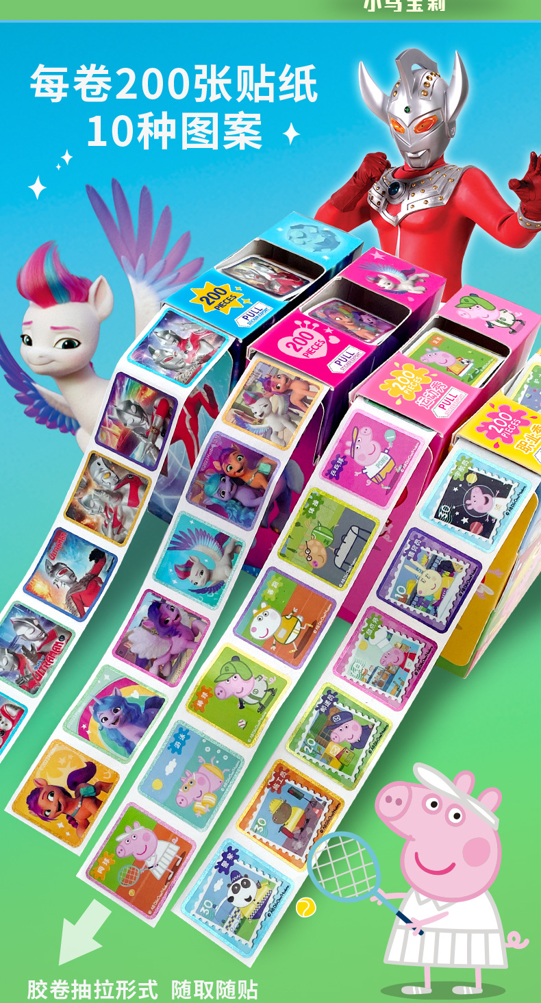 피지컬 롤 스티커 페파 피그 보상 스티커 유치원 교육 보상 스티커 레이저 스티커 diy 재료 스티커 조랑말스토어 가기