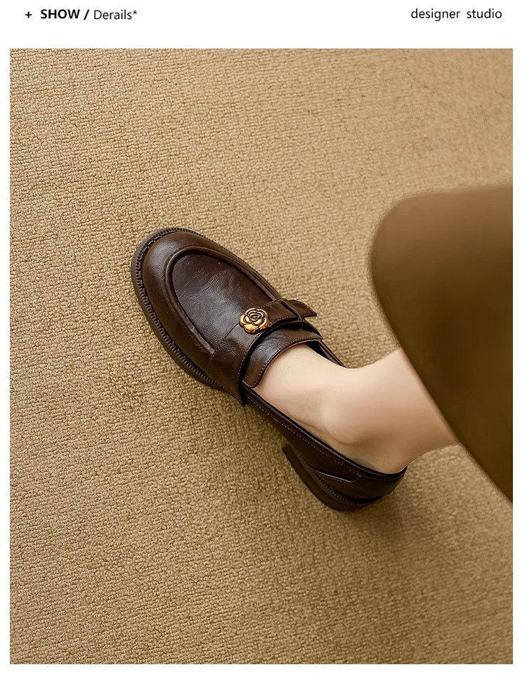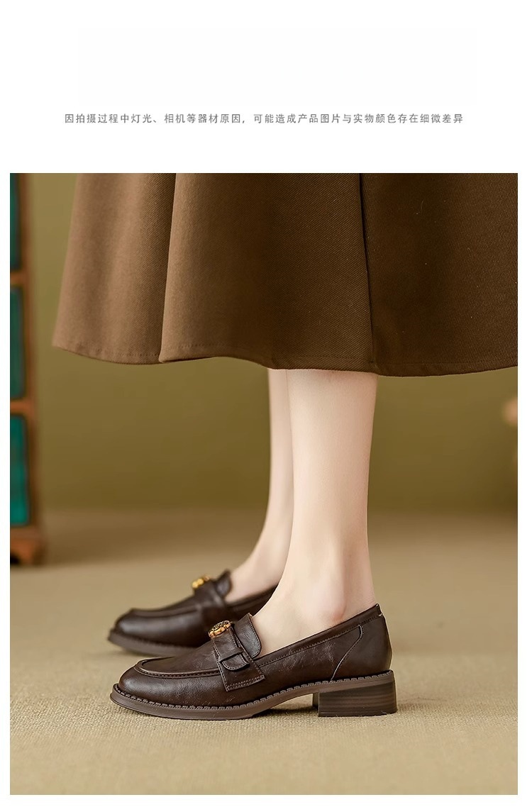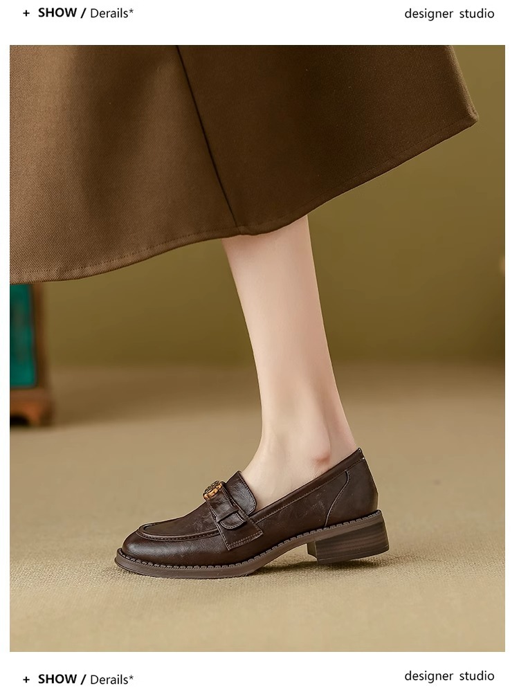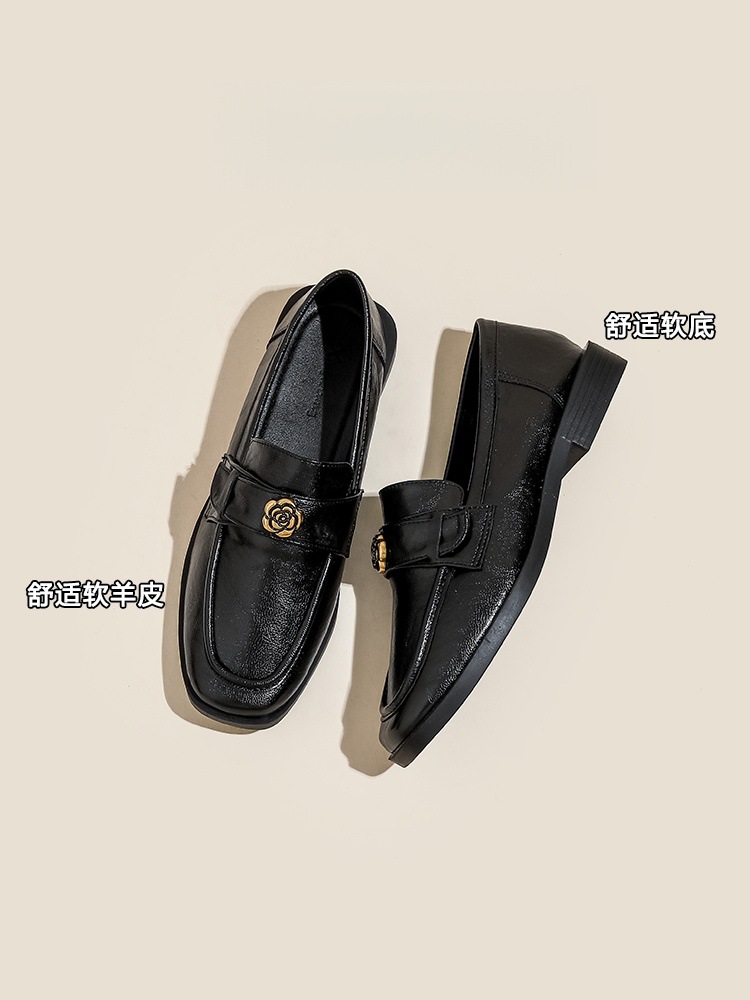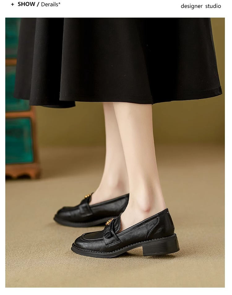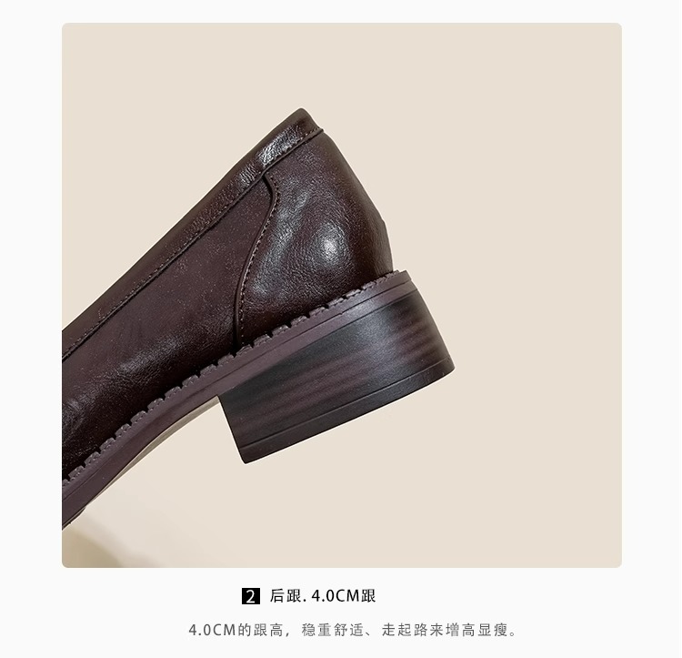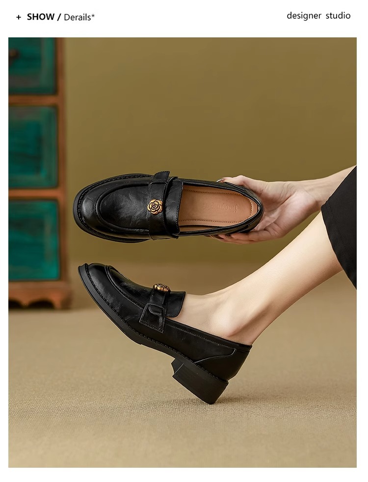 부드러운 양가죽 ~ 동백 수제 부드러운 밑창 로퍼 여성 2025 신작 봄, 가을 미드 힐 싱글 슈즈 복고풍 작은 가죽 신발스토어 가기