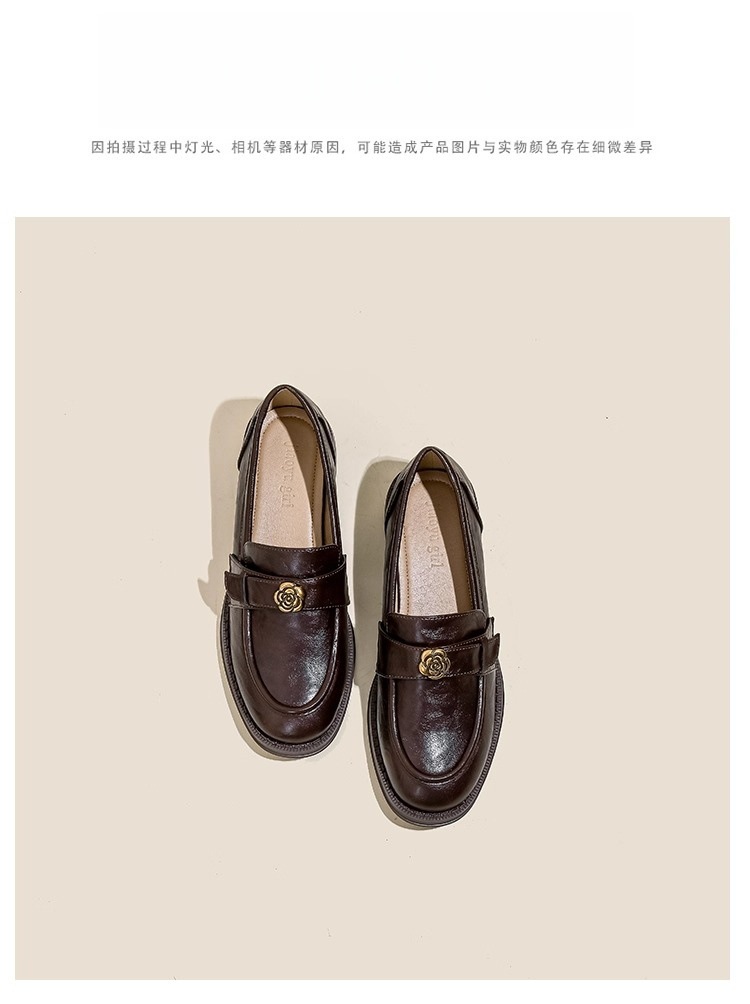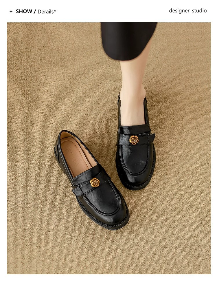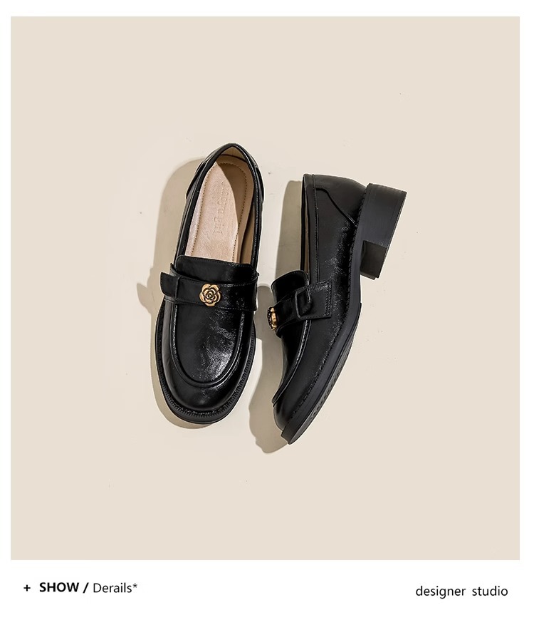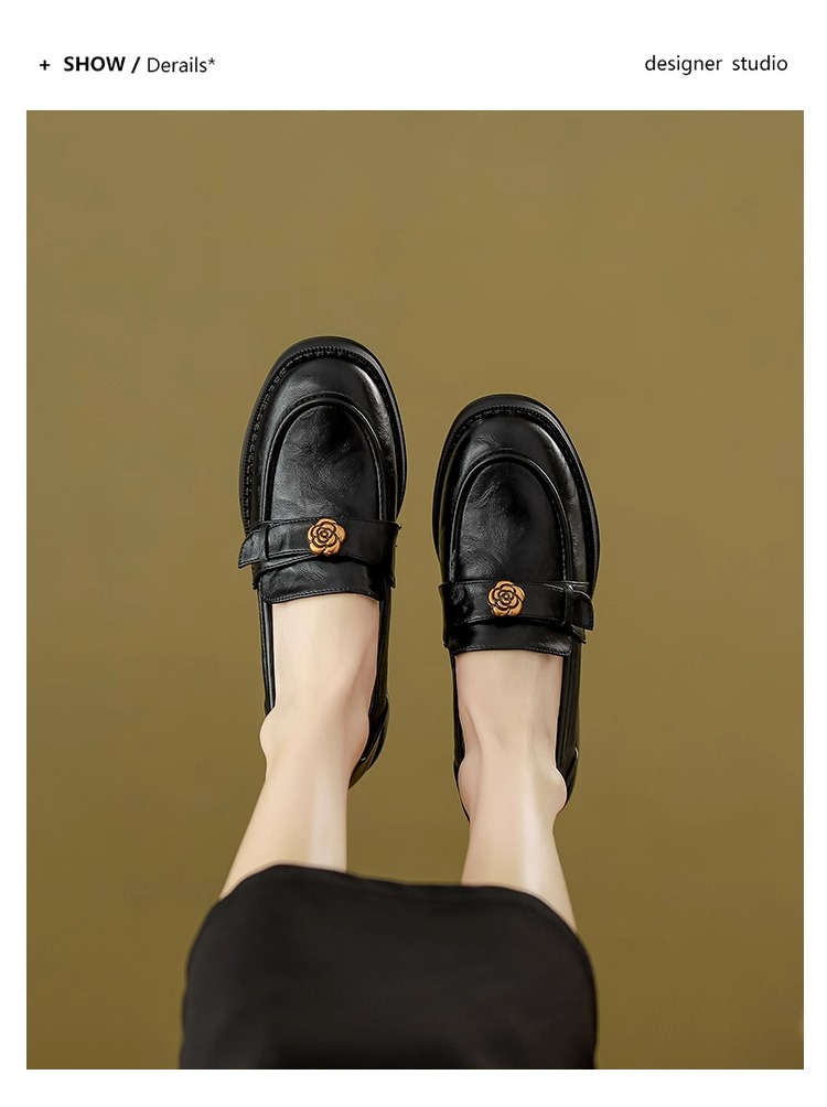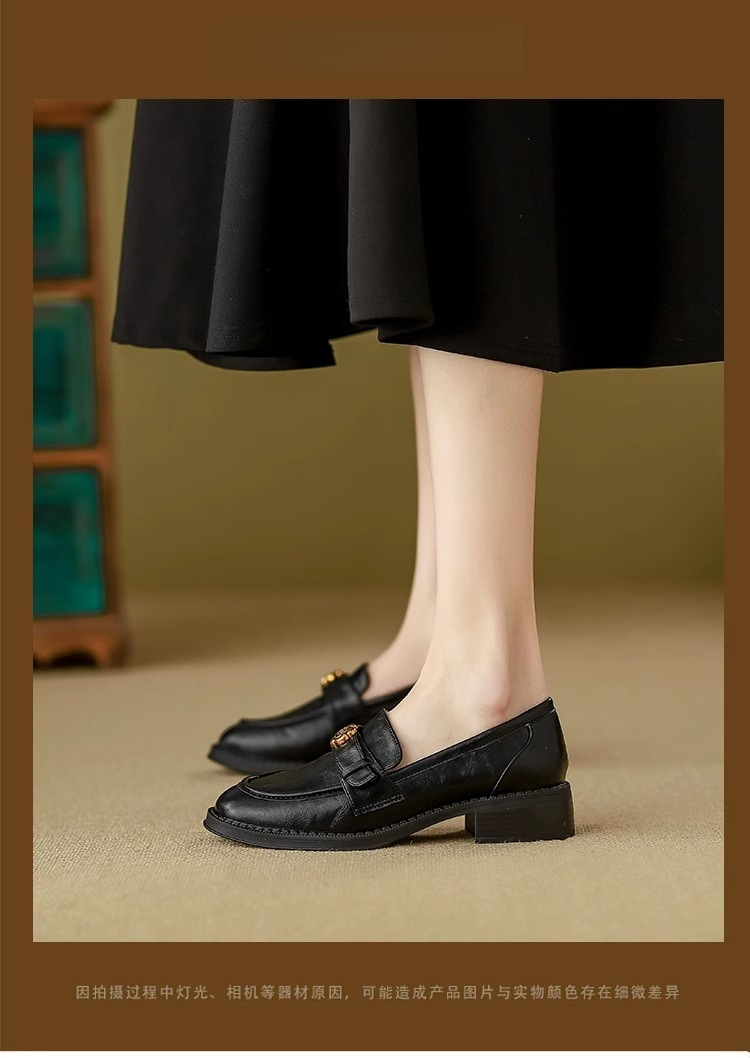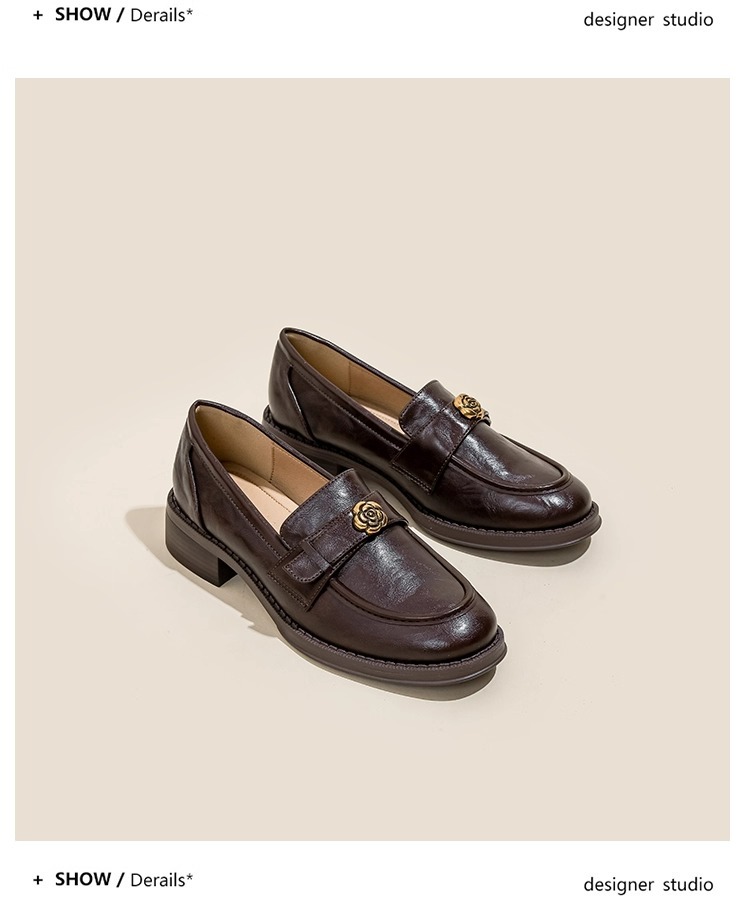 부드러운 양가죽 ~ 동백 수제 부드러운 밑창 로퍼 여성 2025 신작 봄, 가을 미드 힐 싱글 슈즈 복고풍 작은 가죽 신발스토어 가기