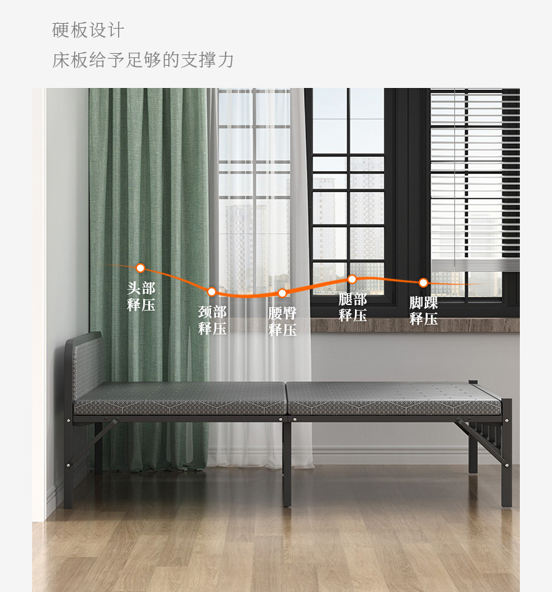 간이 가정용 접이식 침대, 1인용 점심시간 침대, 임대 주택, 성인용 단단한 침대, 휴대용 캠프 침대, 철제 침대