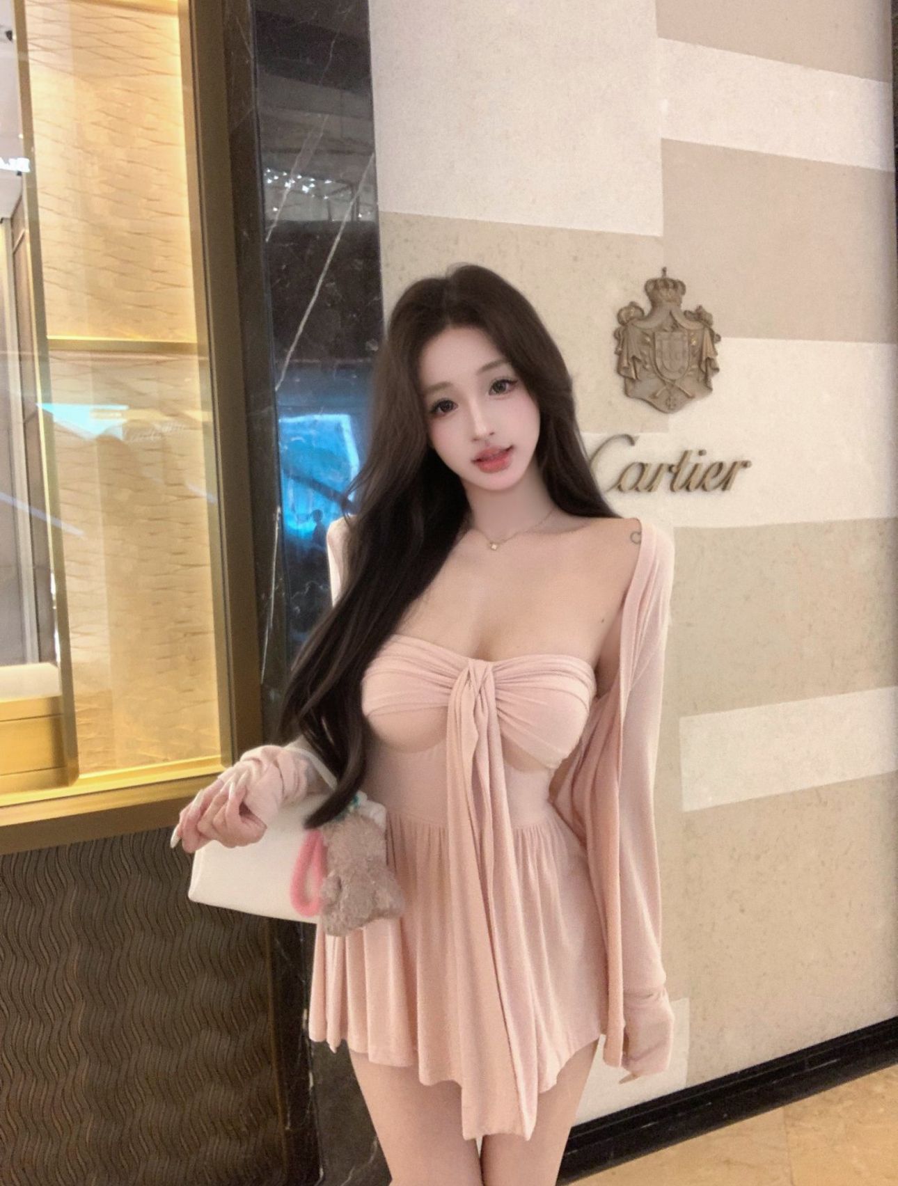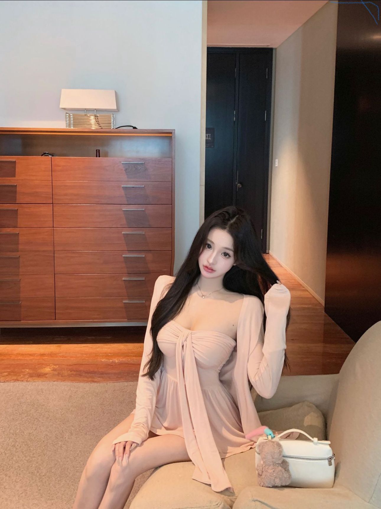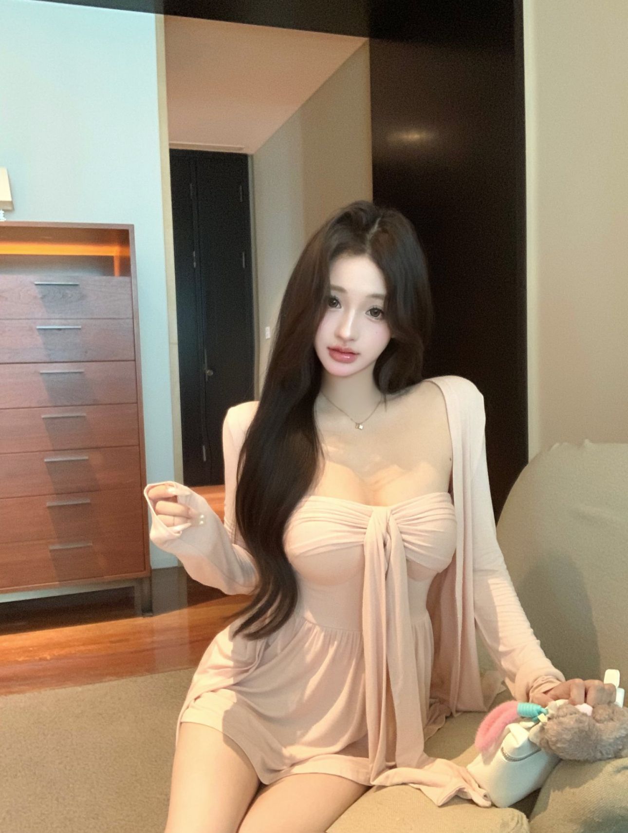 [공장 재고 있음] 여성용 핑크 긴팔 자외선 차단 카디건 여름 정장 순수한 욕망 리본 튜브 탑 투피스 세트스토어 가기