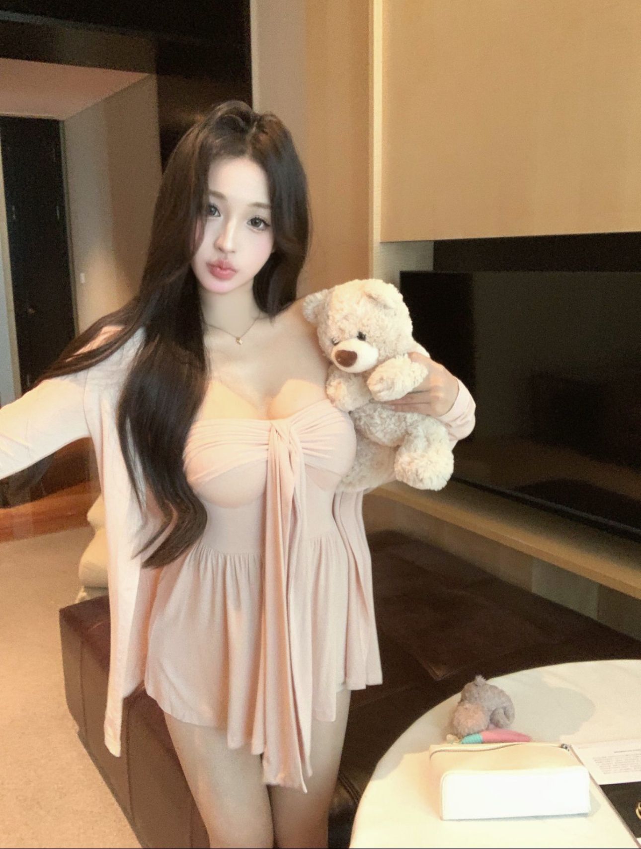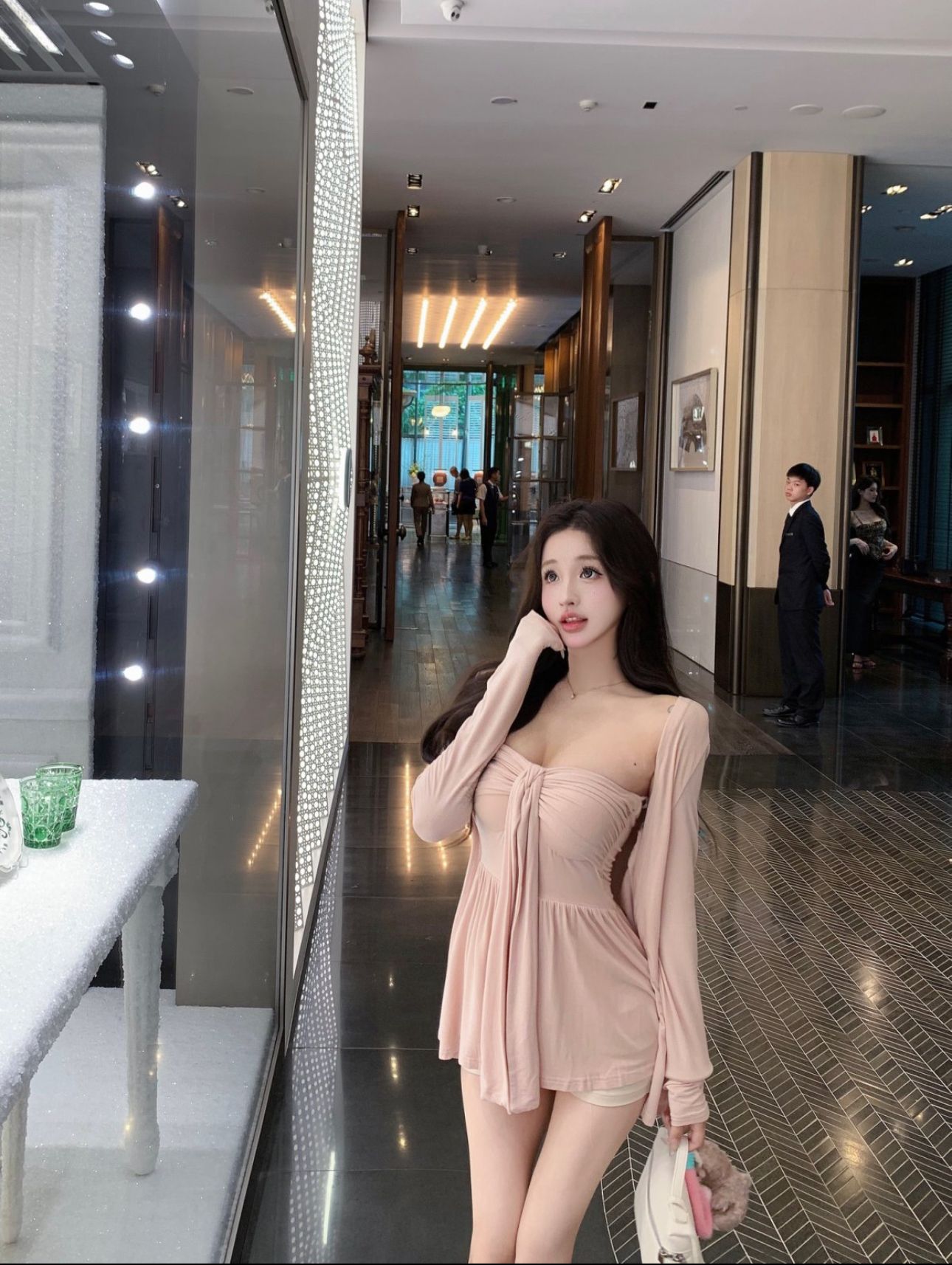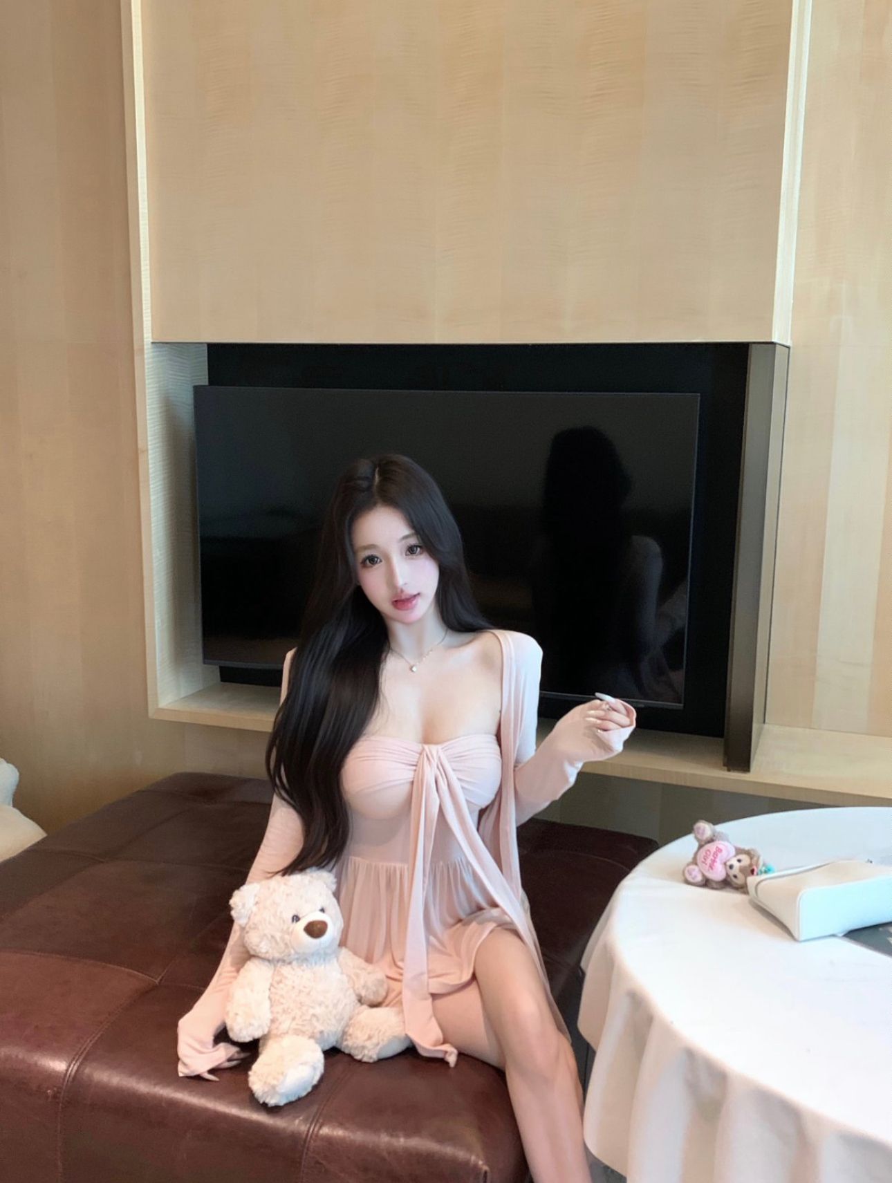 [공장 재고 있음] 여성용 핑크 긴팔 자외선 차단 카디건 여름 정장 순수한 욕망 리본 튜브 탑 투피스 세트스토어 가기