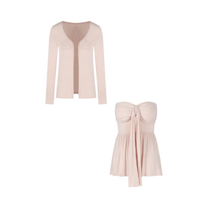 [공장 재고 있음] 여성용 핑크 긴팔 자외선 차단 카디건 여름 정장 순수한 욕망 리본 튜브 탑 투피스 세트