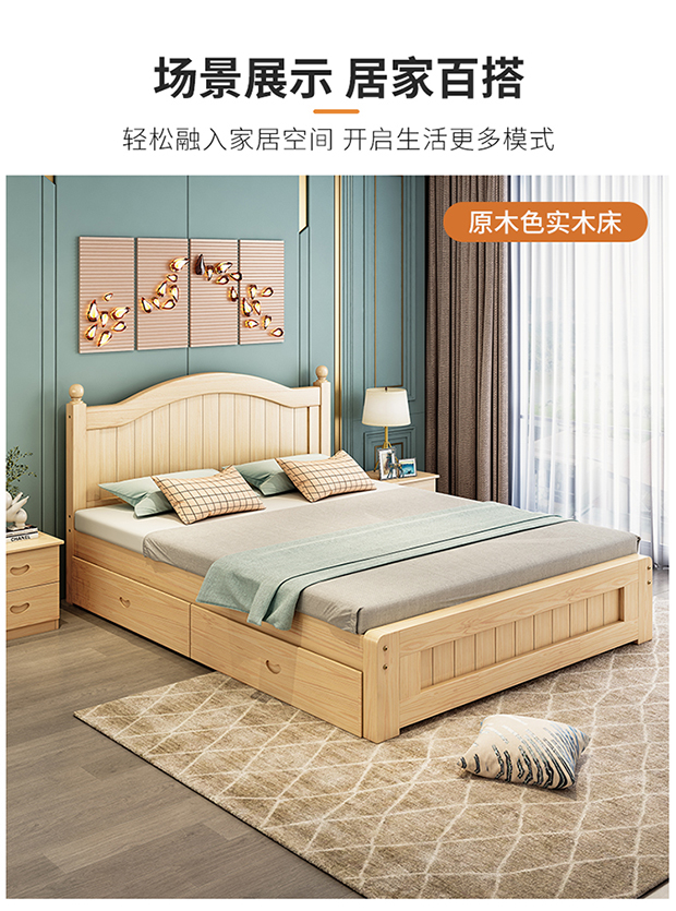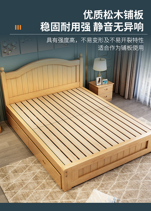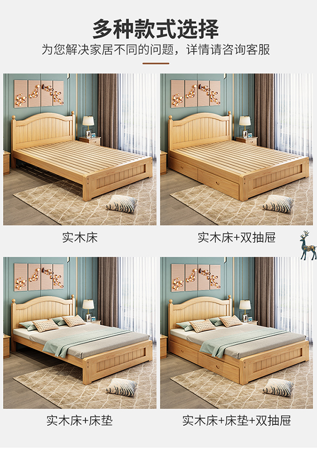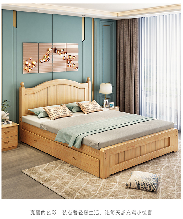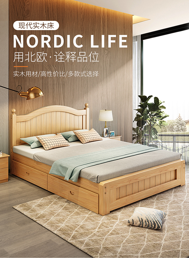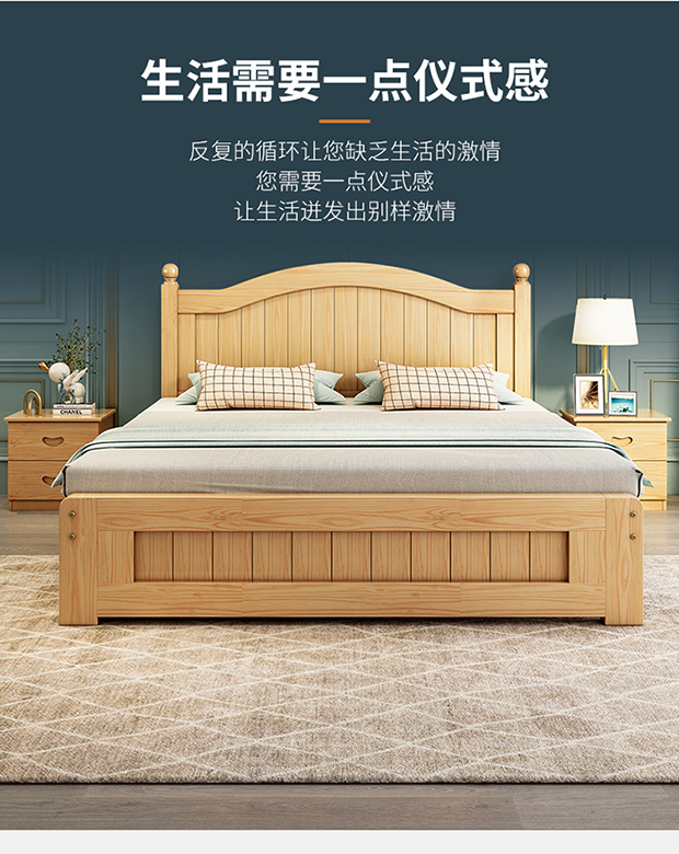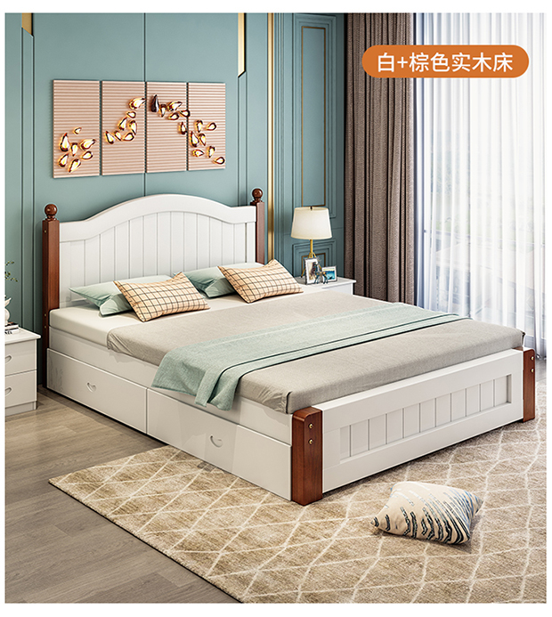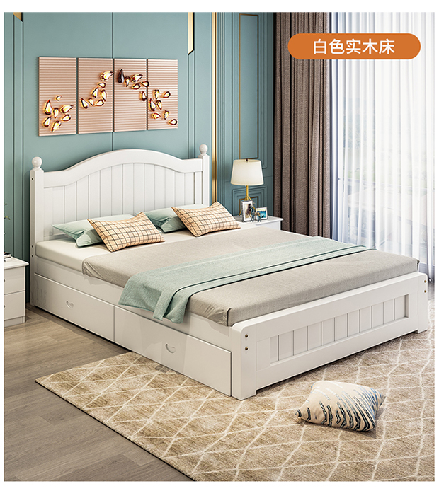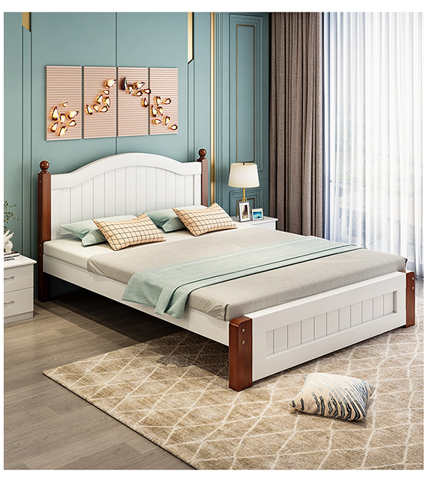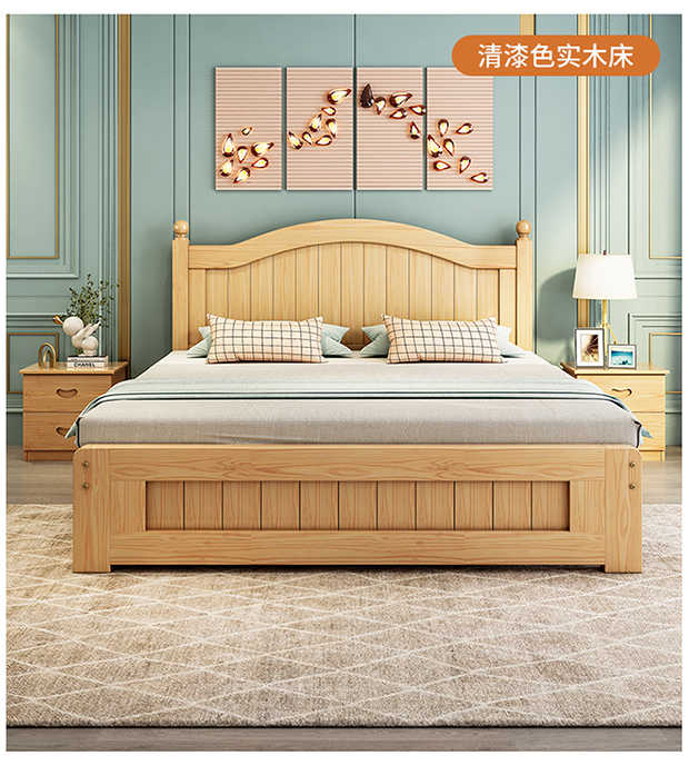 원목 침대 1.5m 모던 심플 유럽식 더블 침대 마스터 침실 1.8 가정용 경제적 임대실 원목 침대 싱글 침대스토어 가기