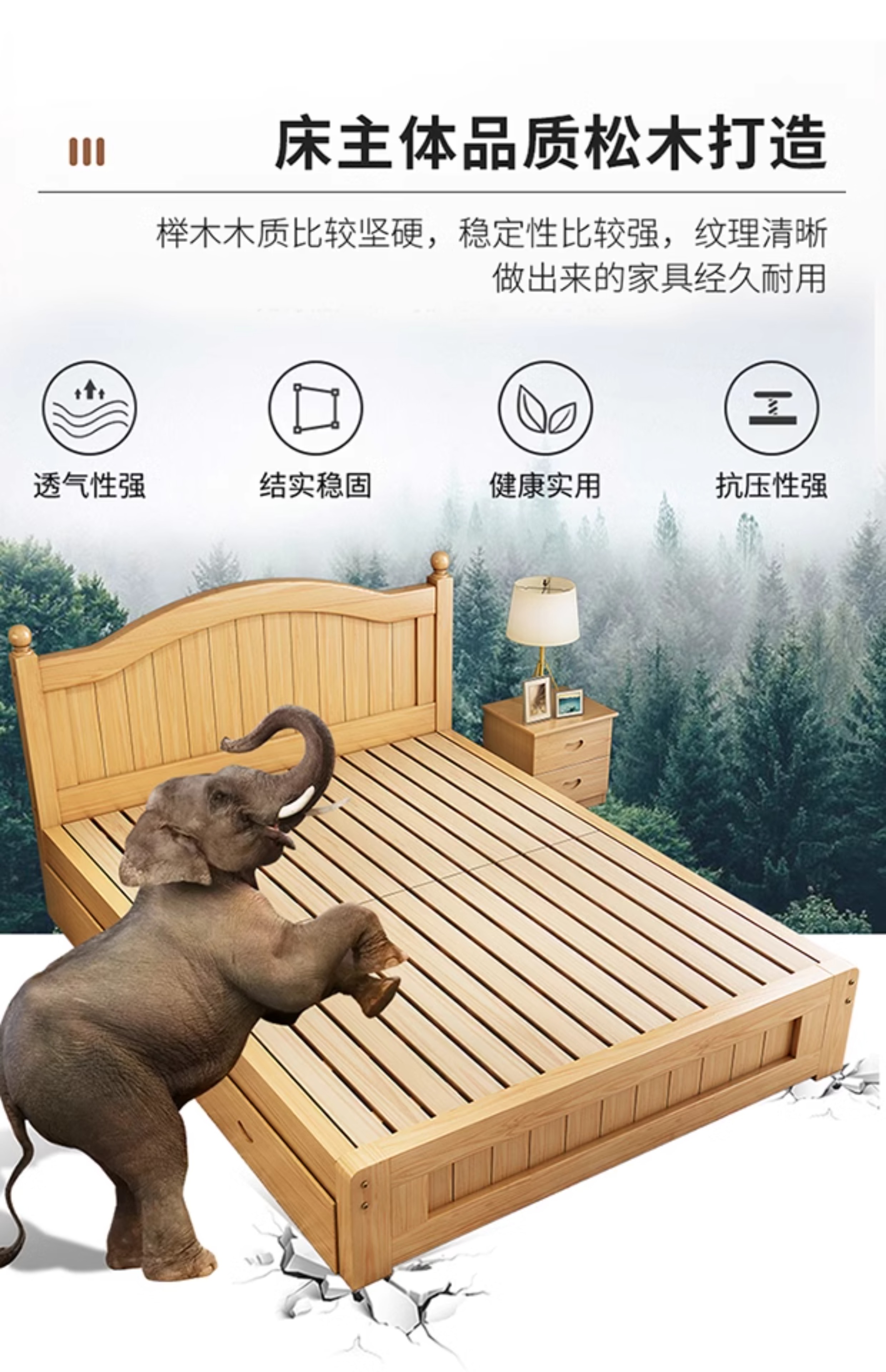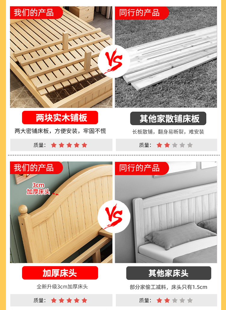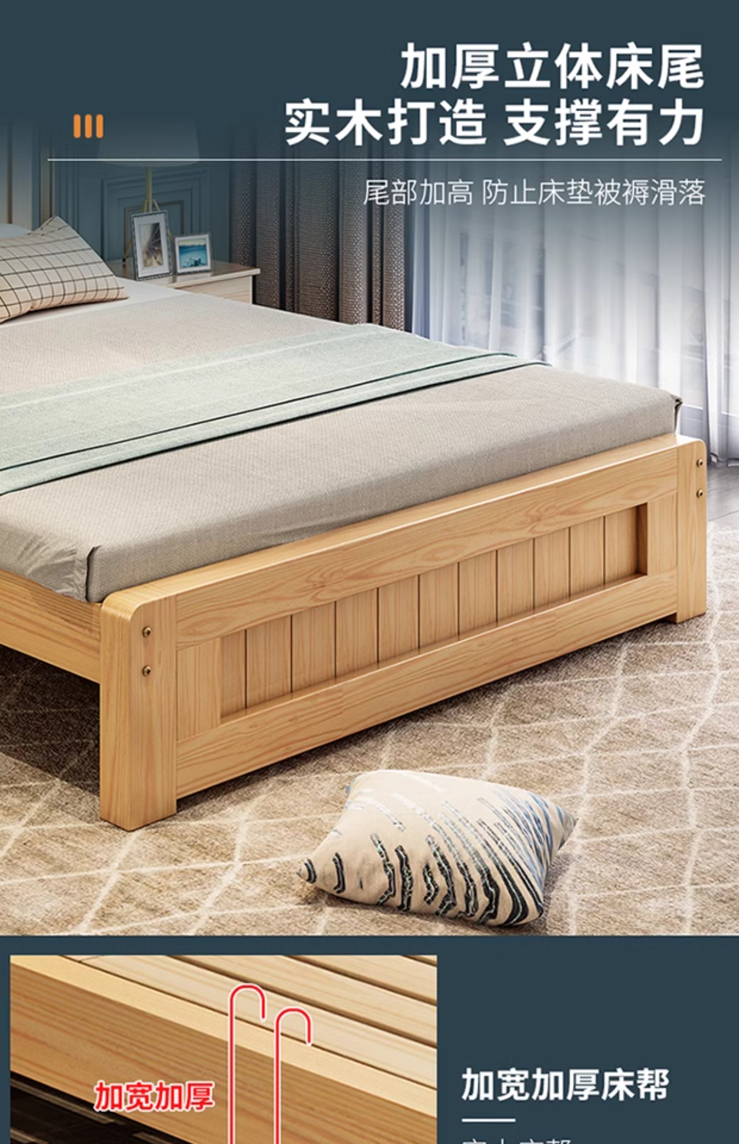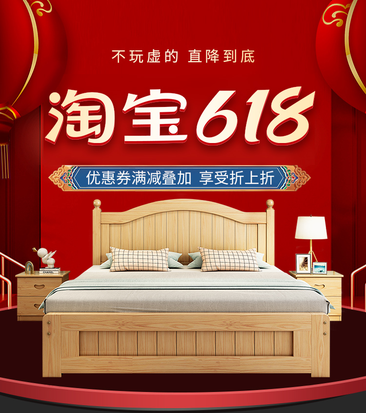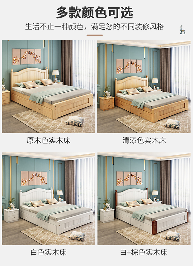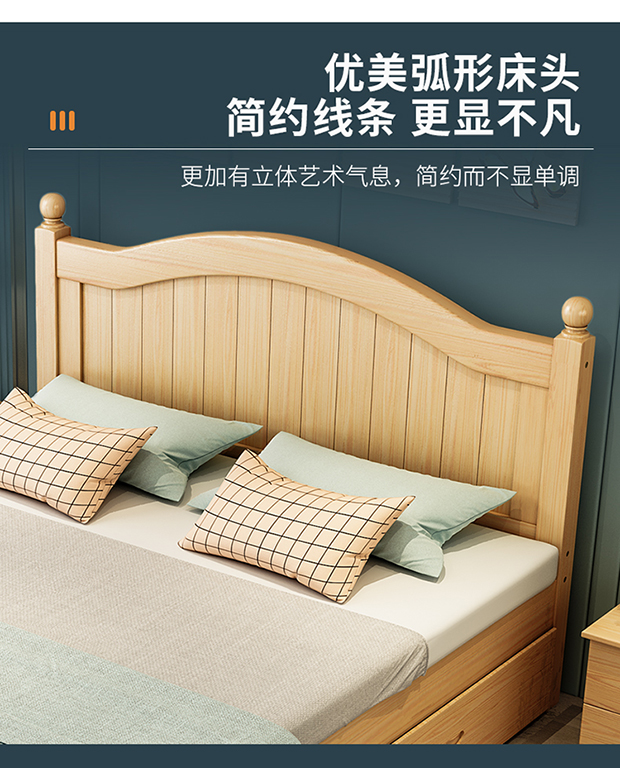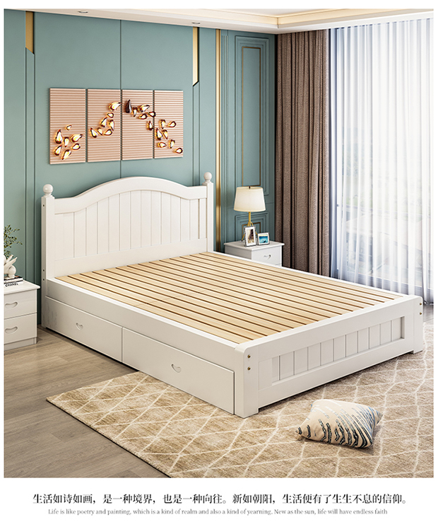 원목 침대 1.5m 모던 심플 유럽식 더블 침대 마스터 침실 1.8 가정용 경제적 임대실 원목 침대 싱글 침대스토어 가기