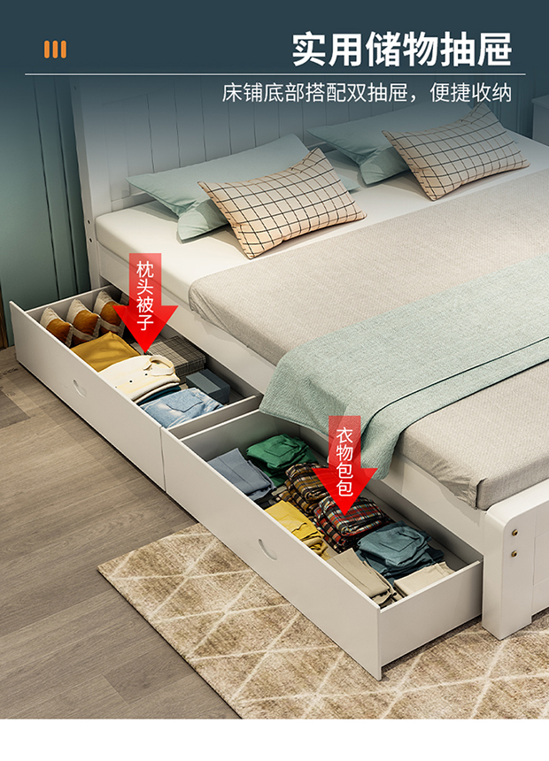 원목 침대 1.5m 모던 심플 유럽식 더블 침대 마스터 침실 1.8 가정용 경제적 임대실 원목 침대 싱글 침대