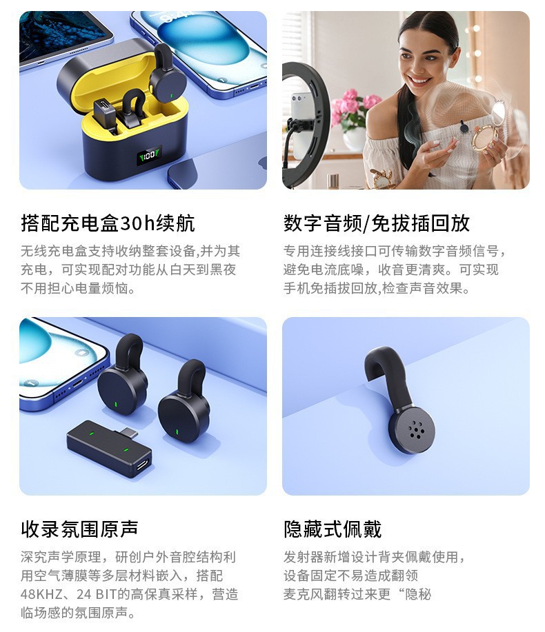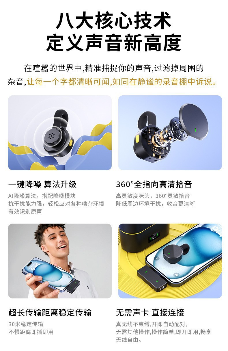 2025년 크로스보더 인기 무선 보이지 않는 마이크 라이브 녹화 비디오 전용 지능형 소음 감소 라발리에 마이크스토어 가기