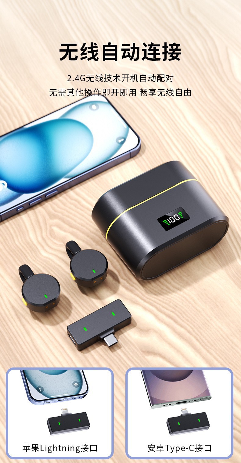 2025년 크로스보더 인기 무선 보이지 않는 마이크 라이브 녹화 비디오 전용 지능형 소음 감소 라발리에 마이크