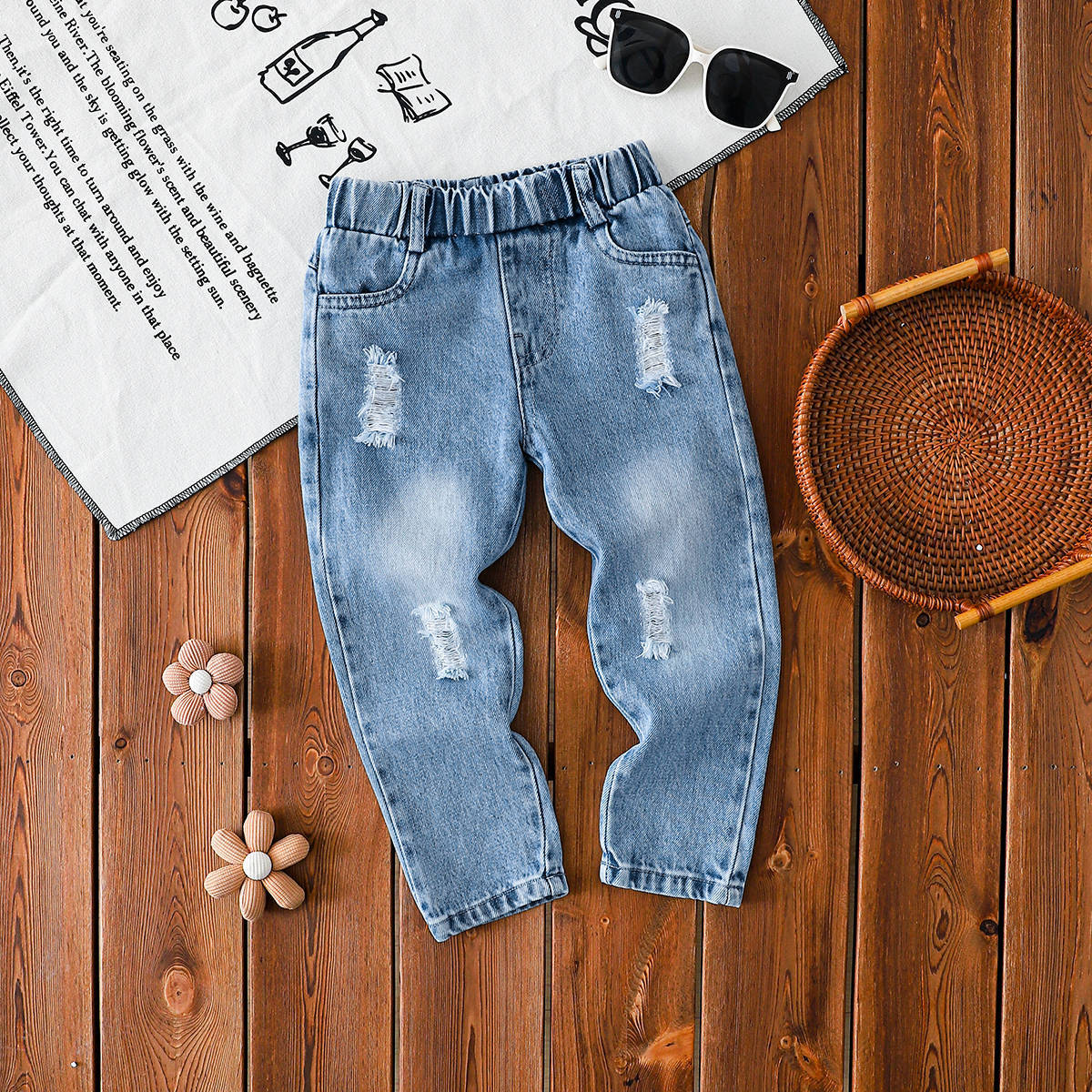 아동복 아동 찢어진 청바지 봄과 가을 새로운 스타일 2-7 세 소녀와 소년 느슨한 바지 아기 유행 아빠 바지스토어 가기
