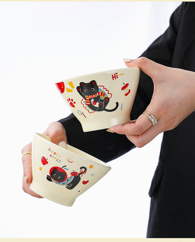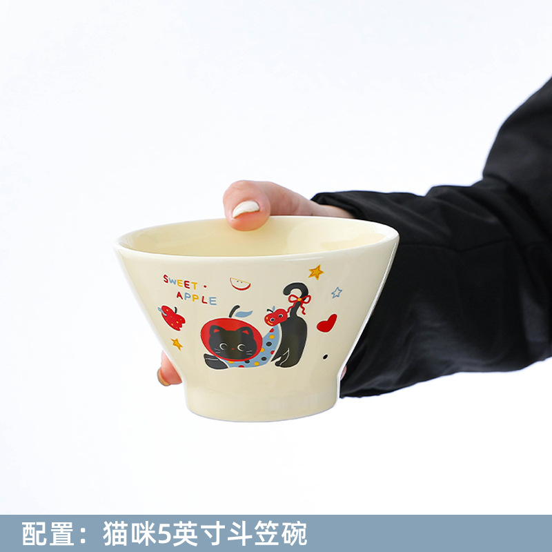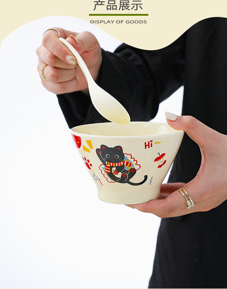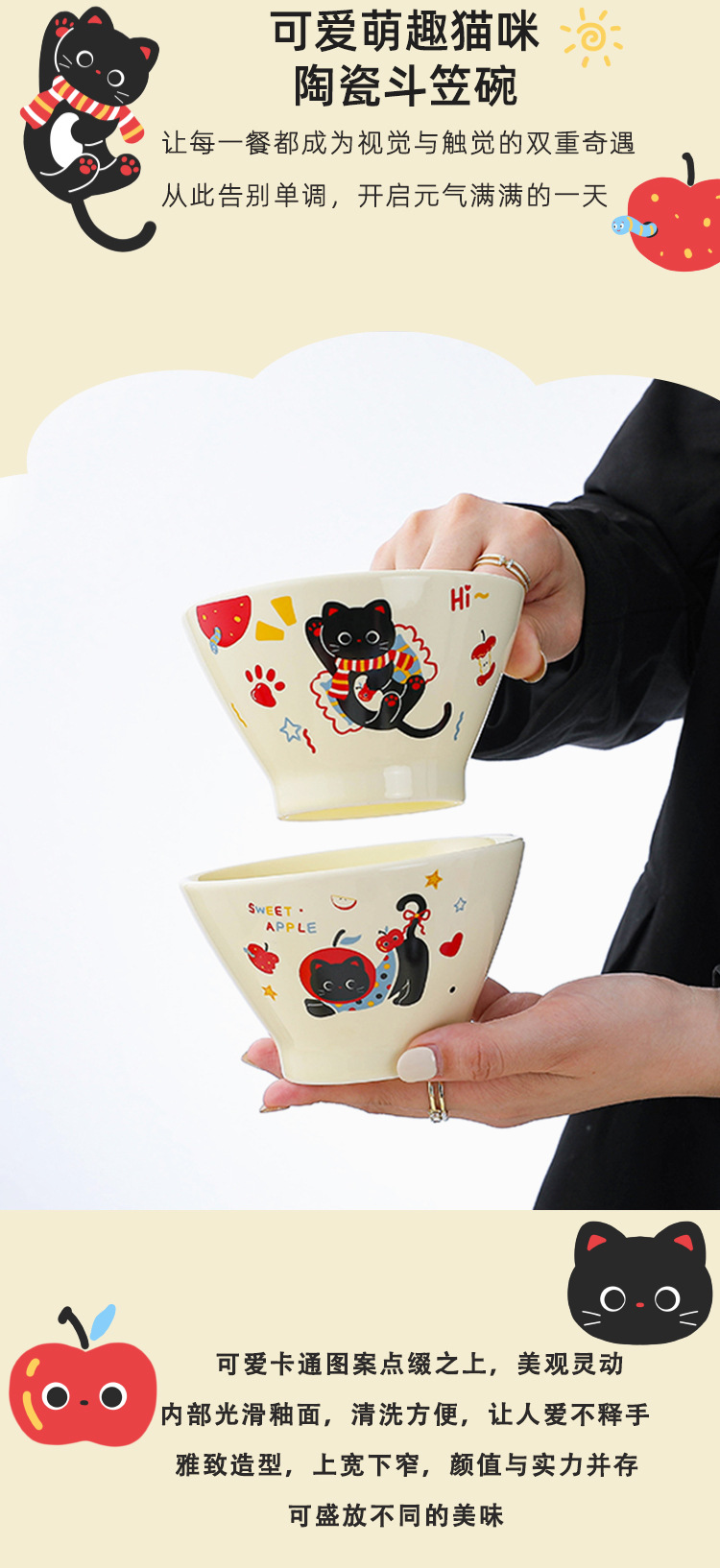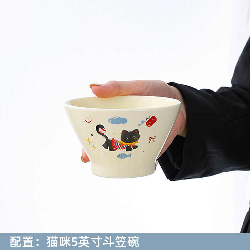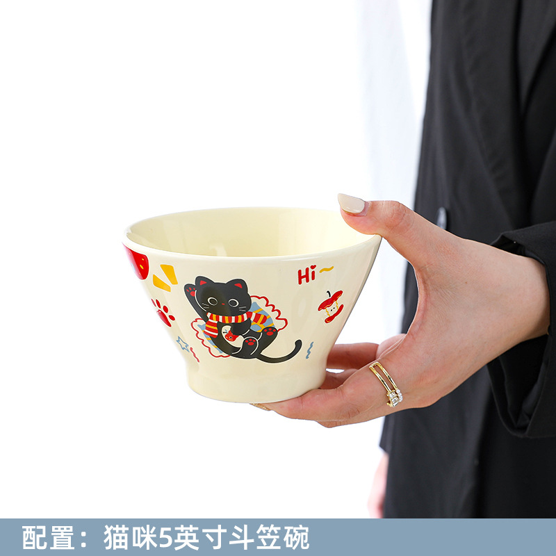 귀여운 고양이 그릇, 세라믹 밥 그릇, 귀엽고 멋진 만화 모자 그릇, 과일 샐러드 그릇, 가정용 밥 그릇스토어 가기