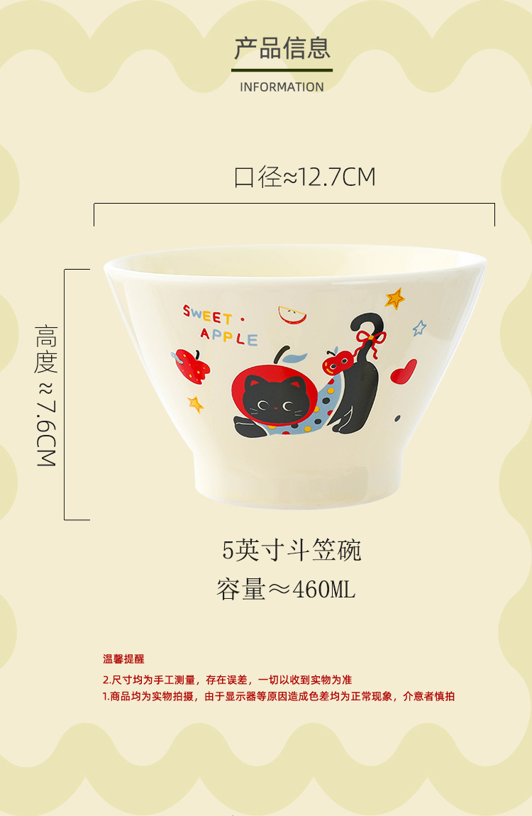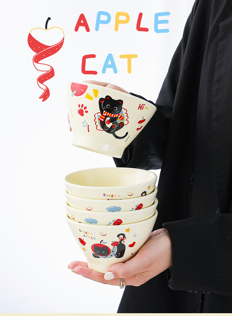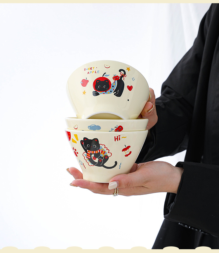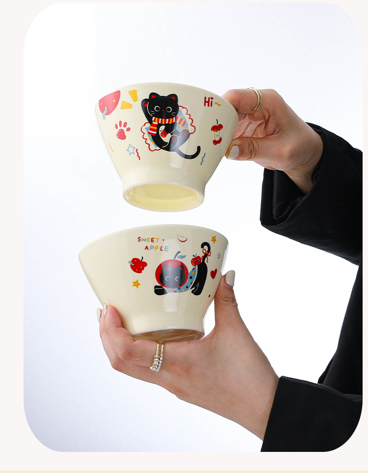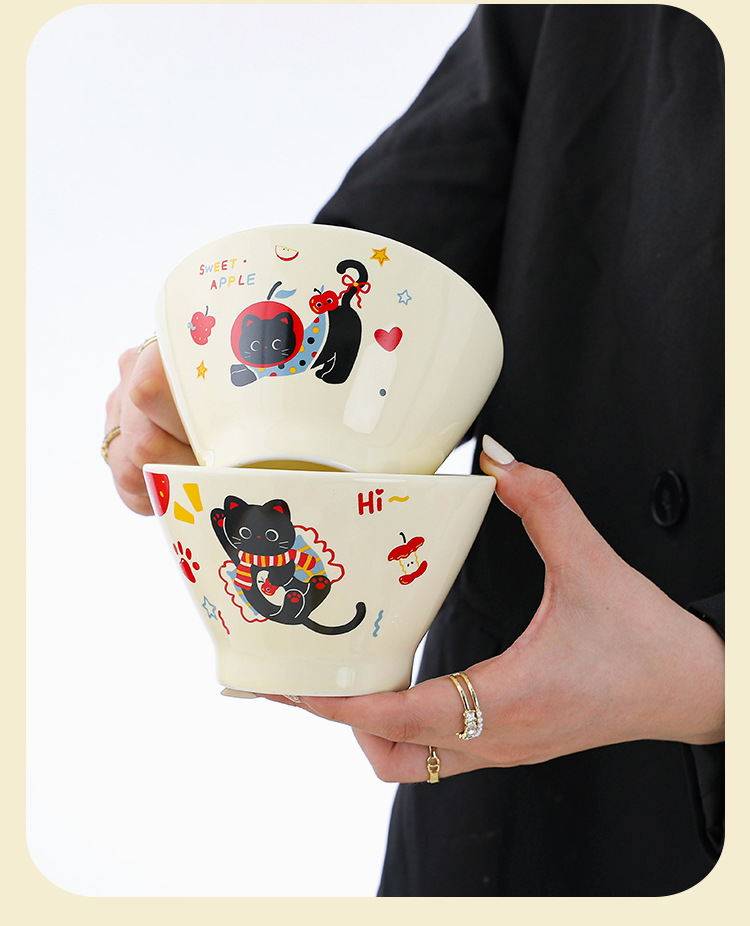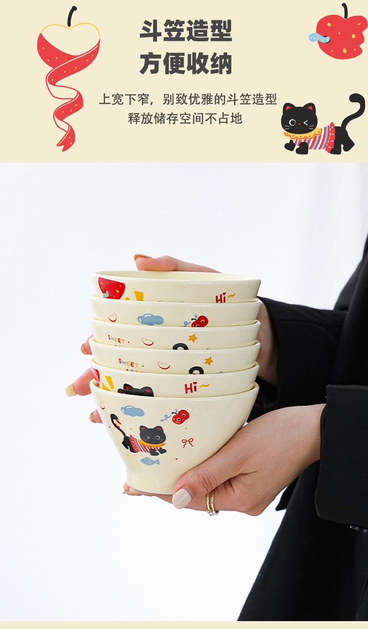 귀여운 고양이 그릇, 세라믹 밥 그릇, 귀엽고 멋진 만화 모자 그릇, 과일 샐러드 그릇, 가정용 밥 그릇스토어 가기