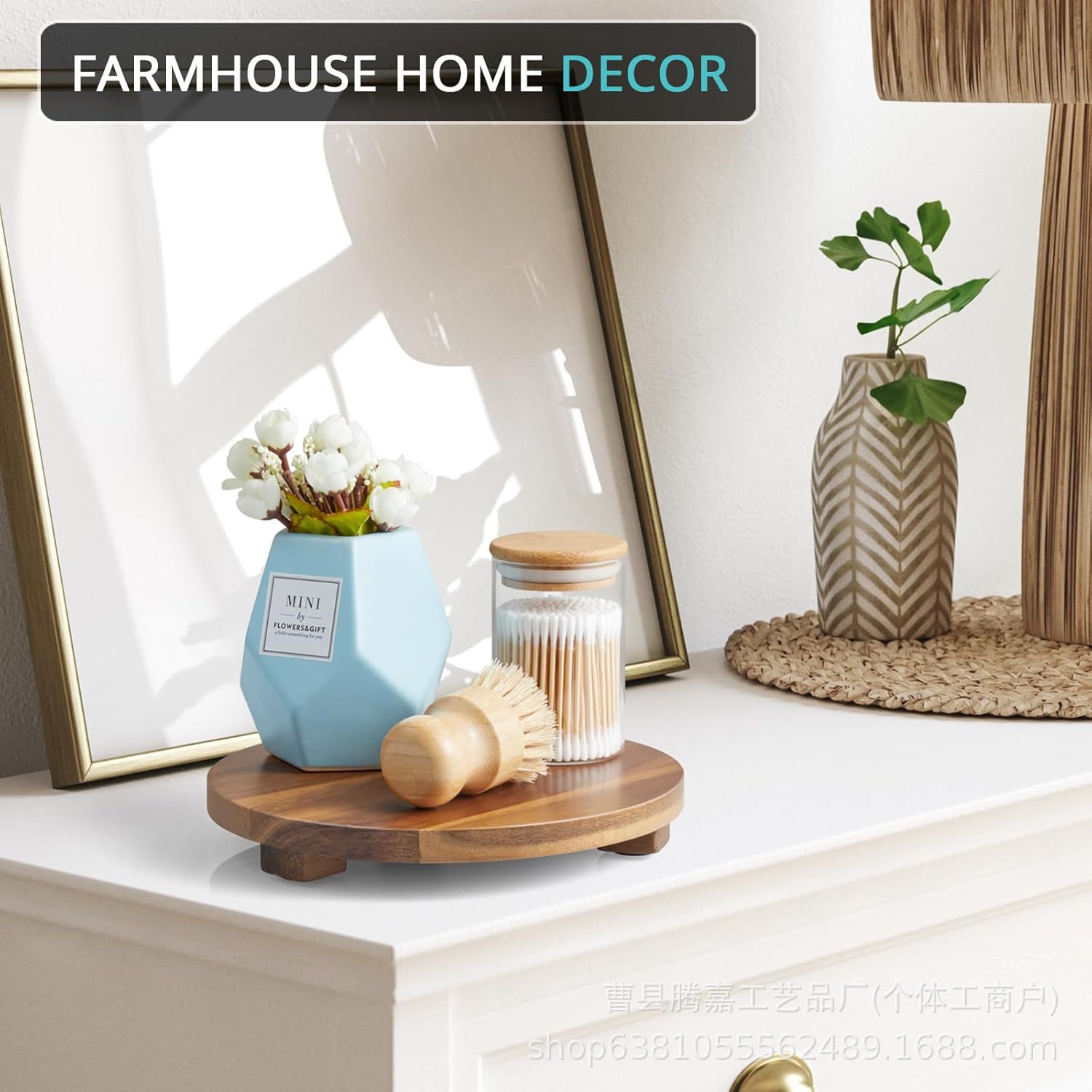 소박한 나무 갈색 커피 컵 베이스 홀더 욕실 보관 서빙 트레이 둥근 화분 다육 베이스스토어 가기