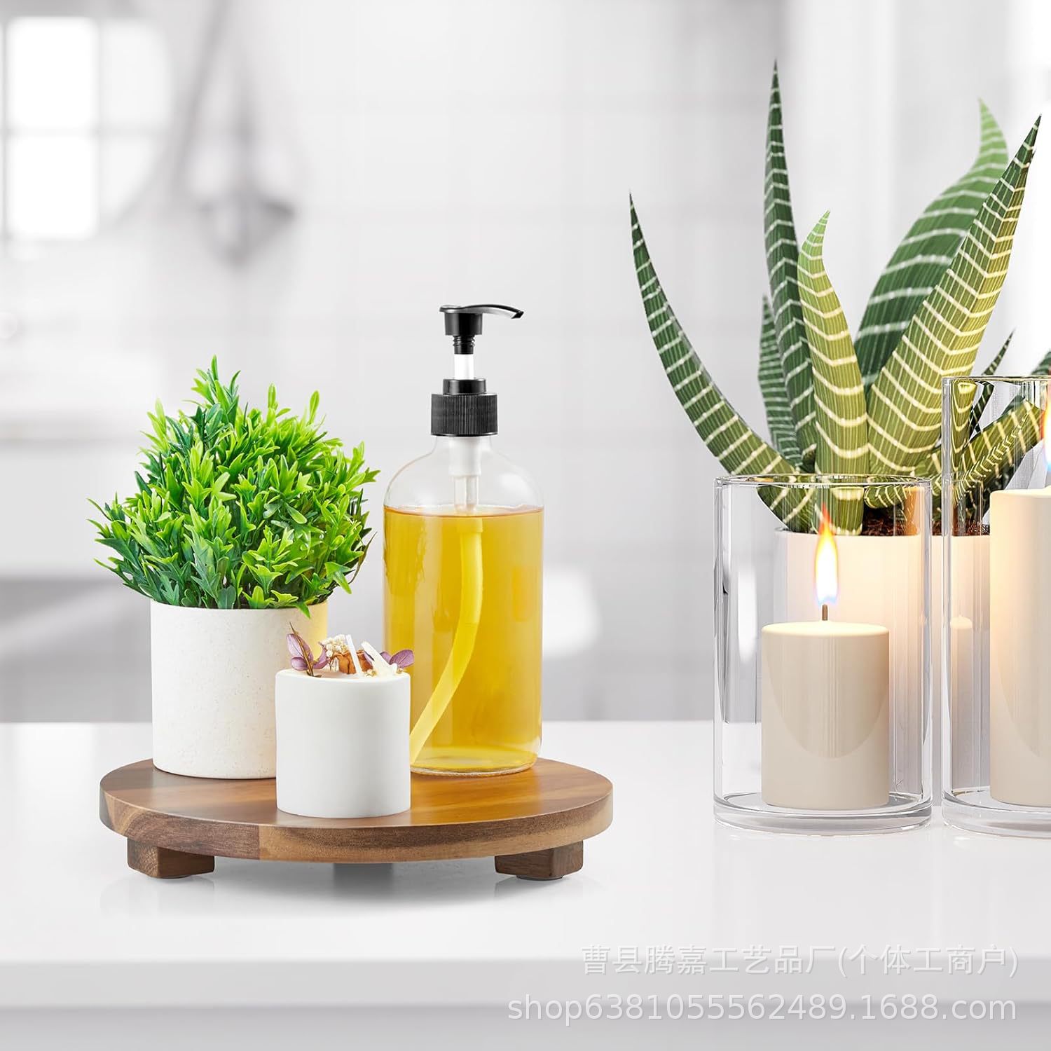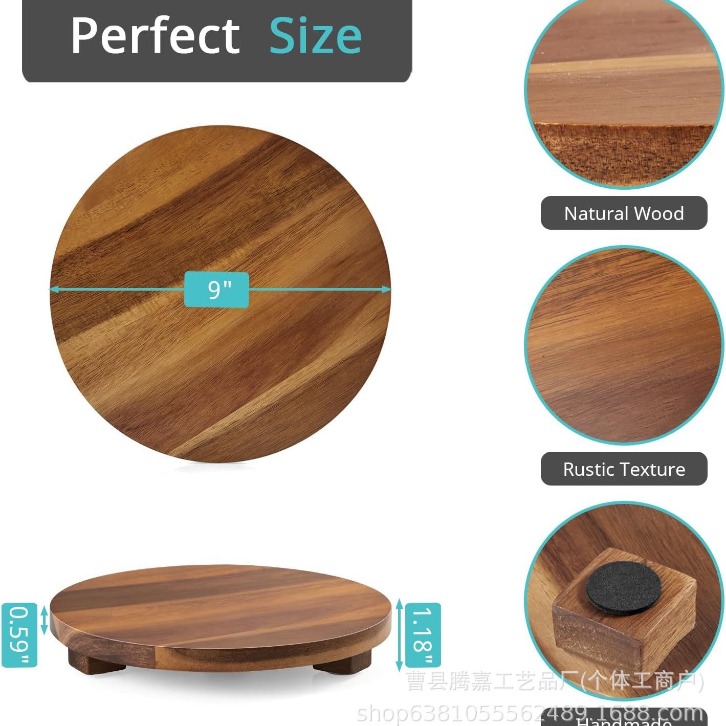 소박한 나무 갈색 커피 컵 베이스 홀더 욕실 보관 서빙 트레이 둥근 화분 다육 베이스