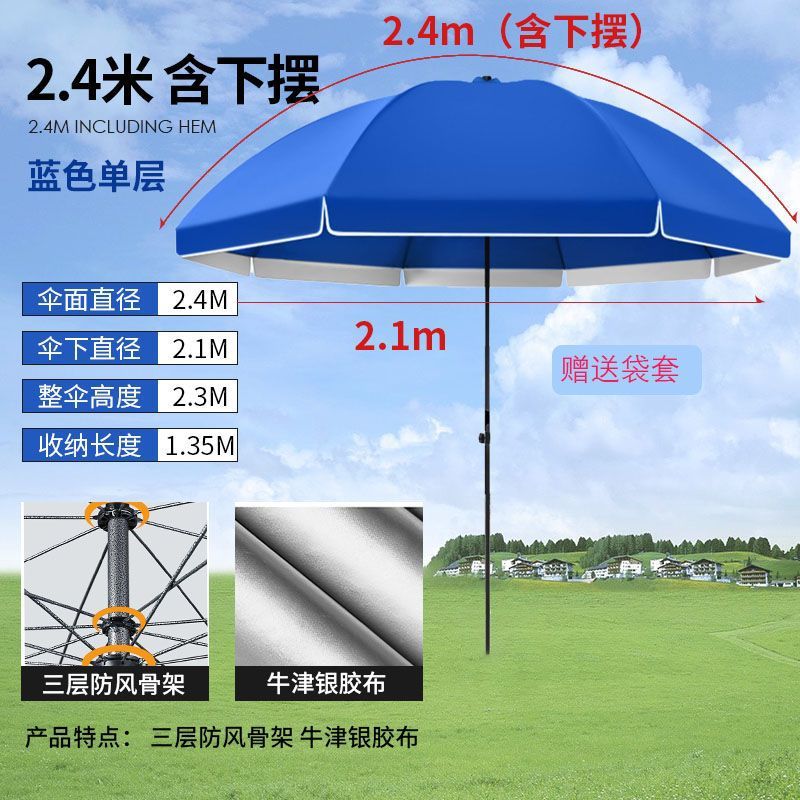 • 2.4M 로얄 블루 두꺼운 옥스포드 실버 접착제 + 3겹 우산 꽂이