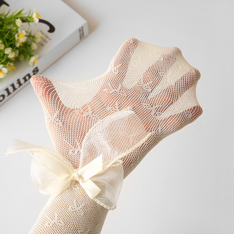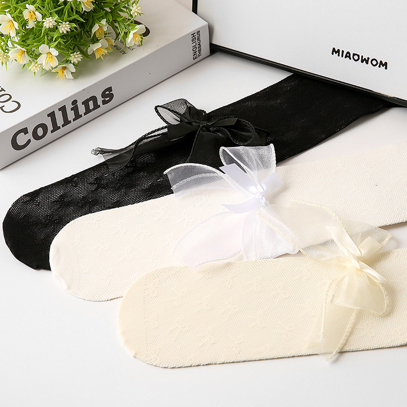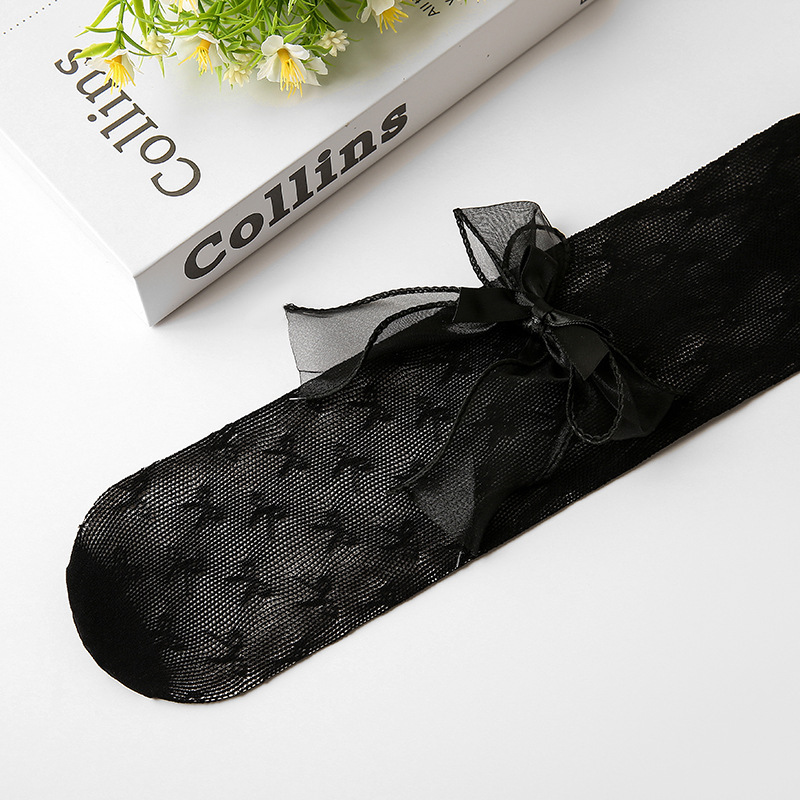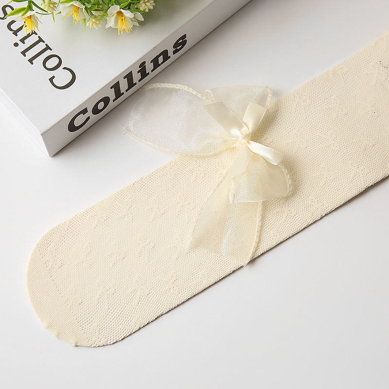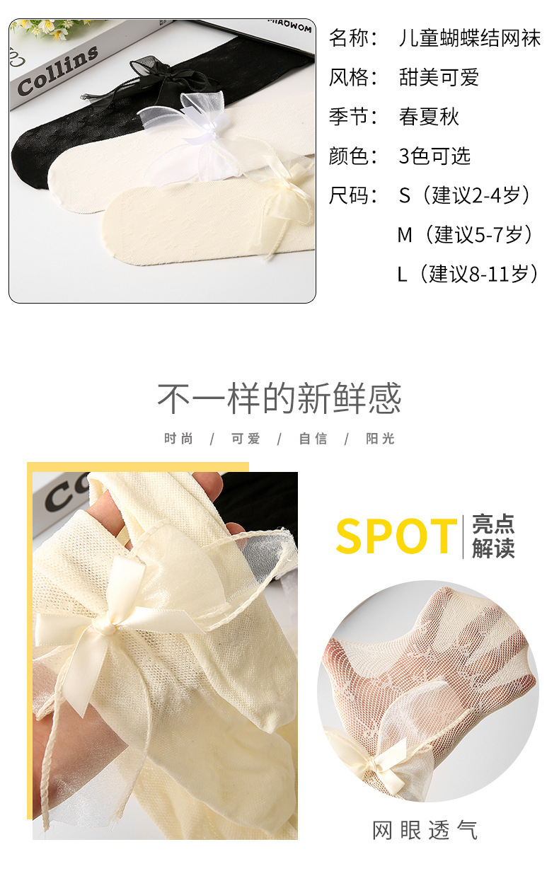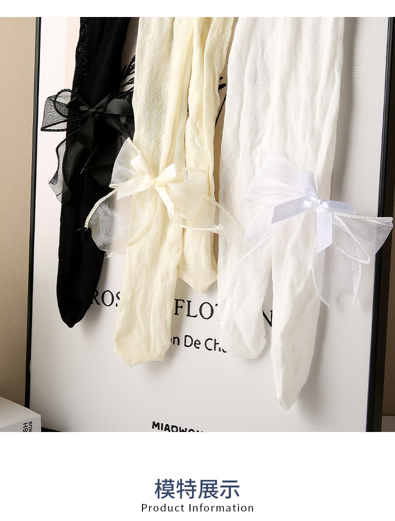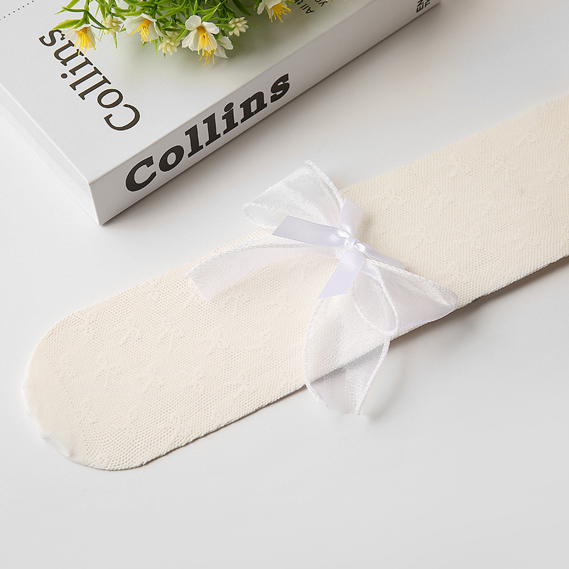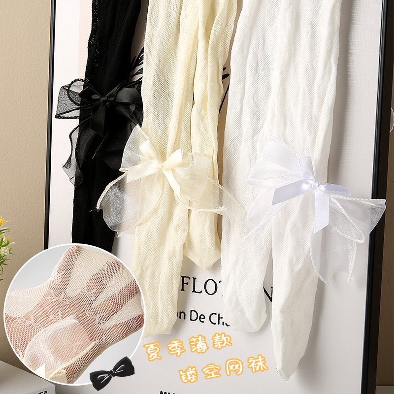 2024春夏款儿童连裤袜网眼镂空蝴蝶结女童打底裤白色丝袜宝宝袜子