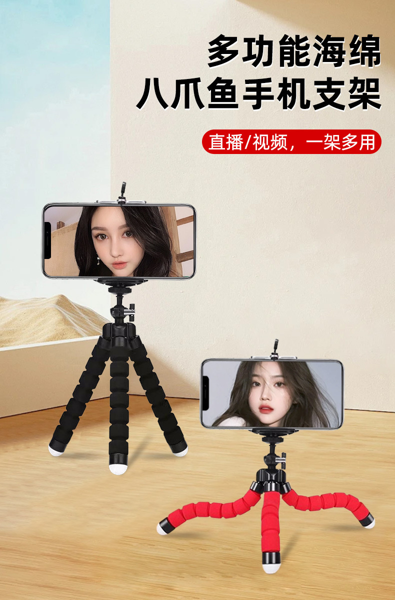 다양한 휴대용 Octopus 휴대폰 홀더, Bluetooth 스폰지 Octopus 삼각대가 포함된 다기능 데스크탑 라이브 방송스토어 가기