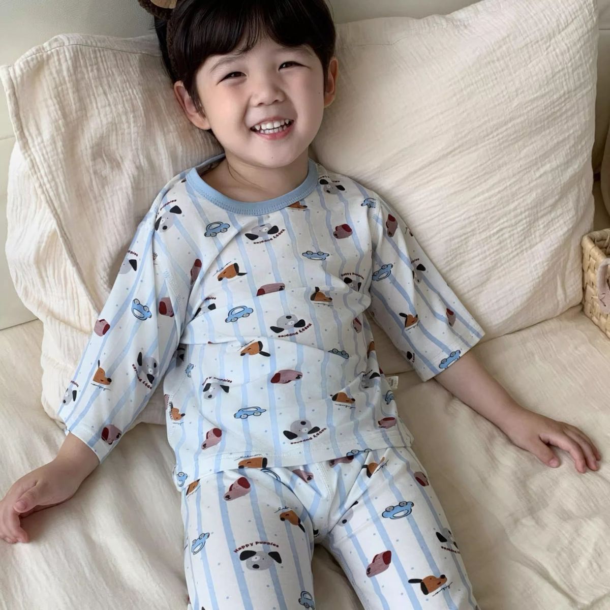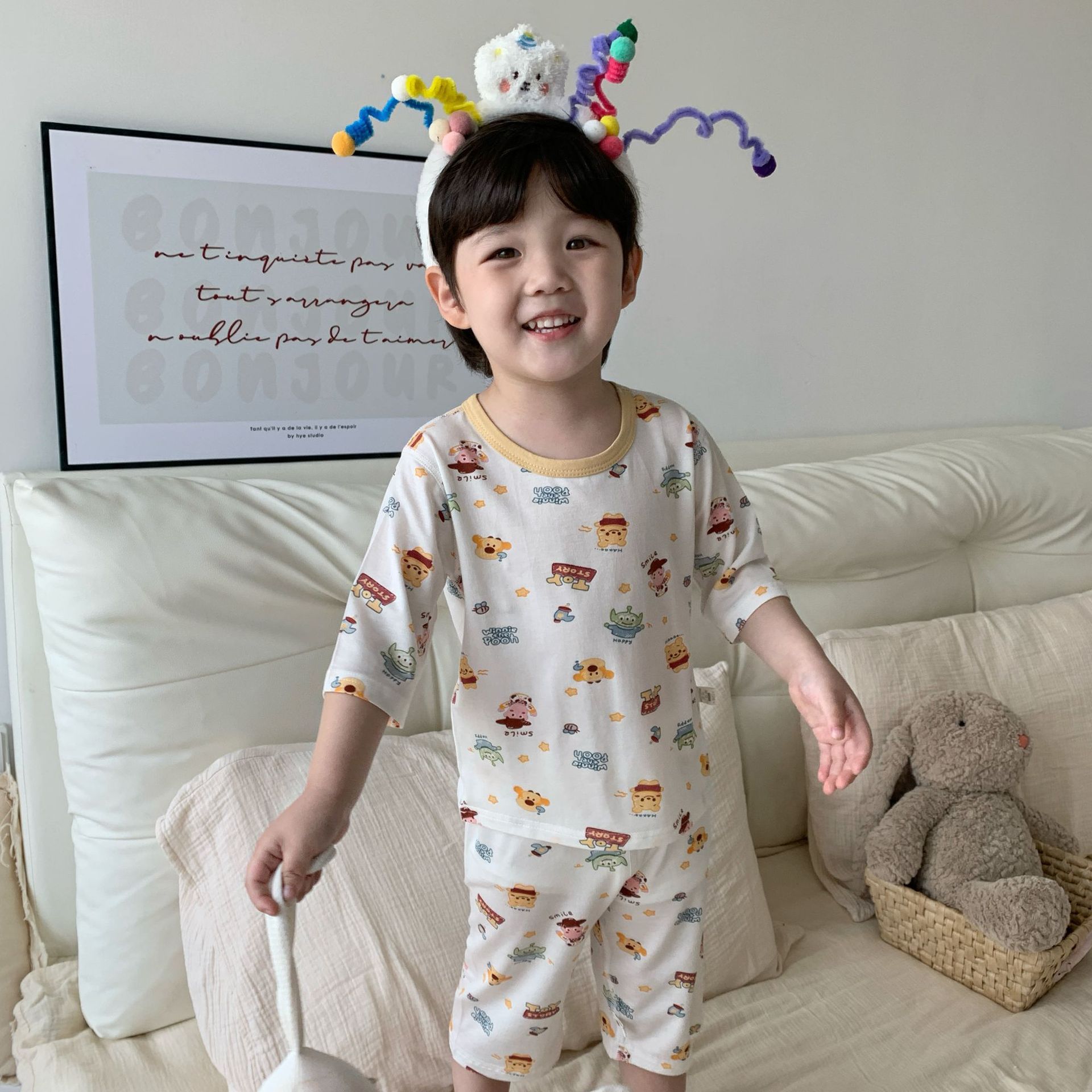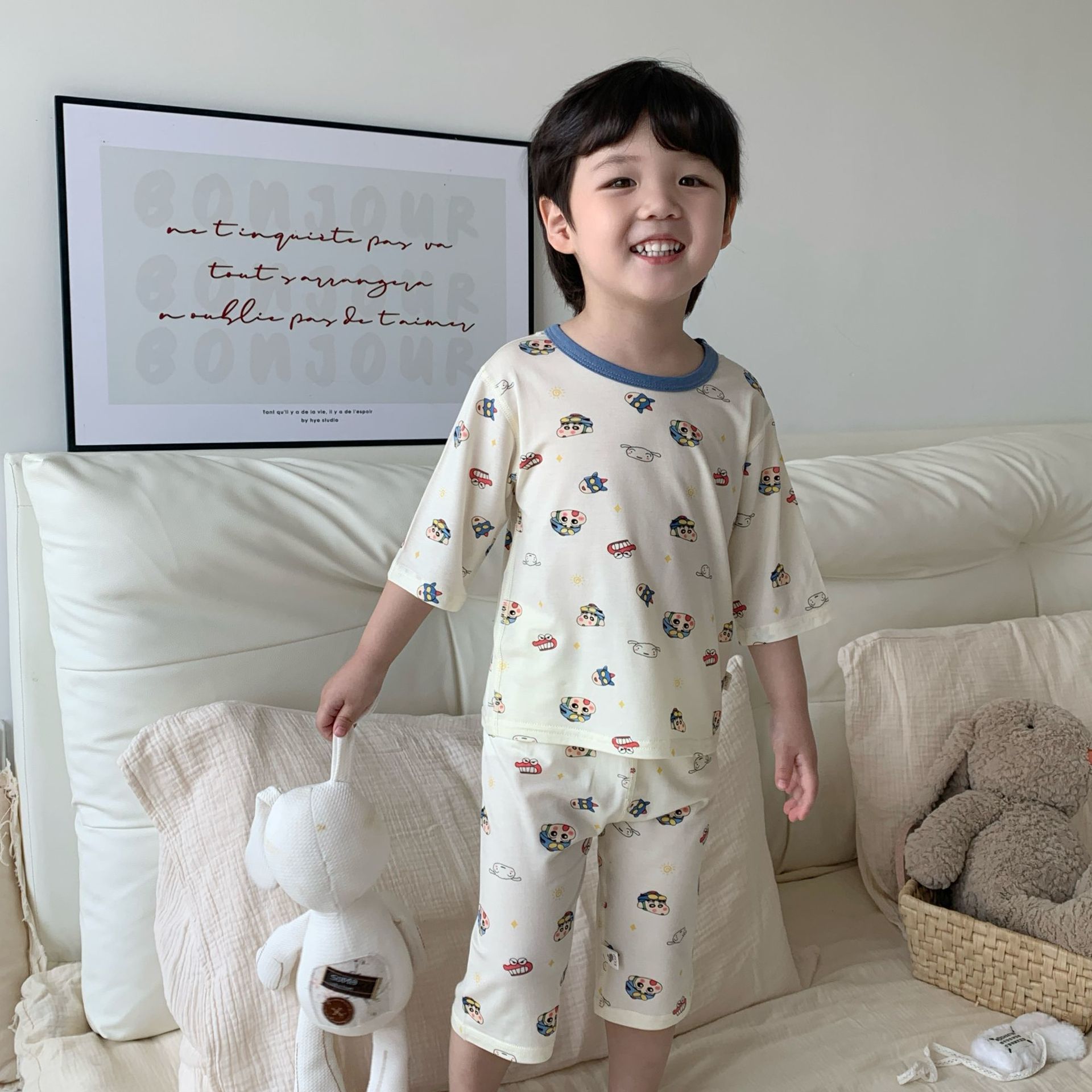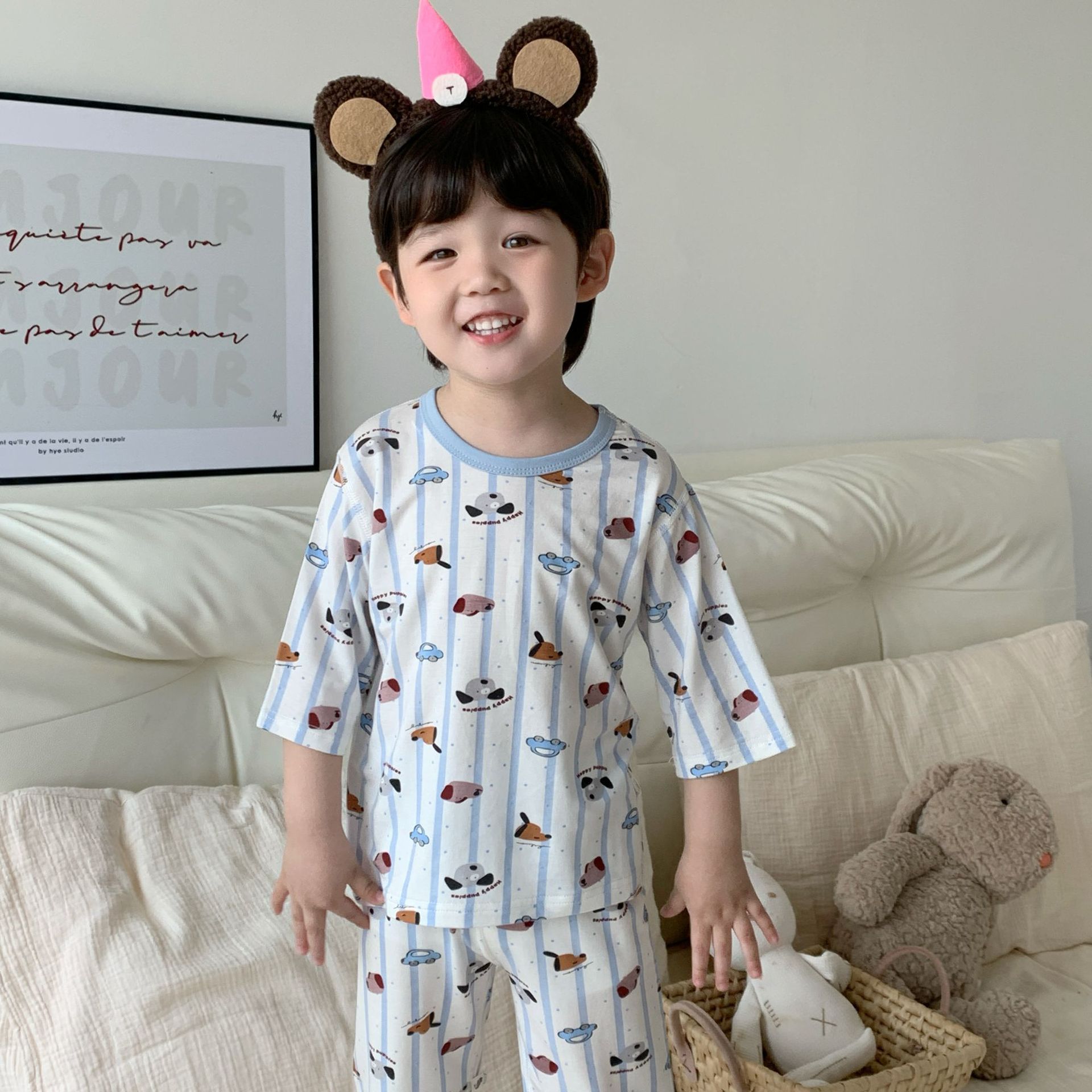여름 아동복 세트, 남아용 7부소매 얇은 잠옷, 여아용 텐셀 통기성 에어컨 의류스토어 가기