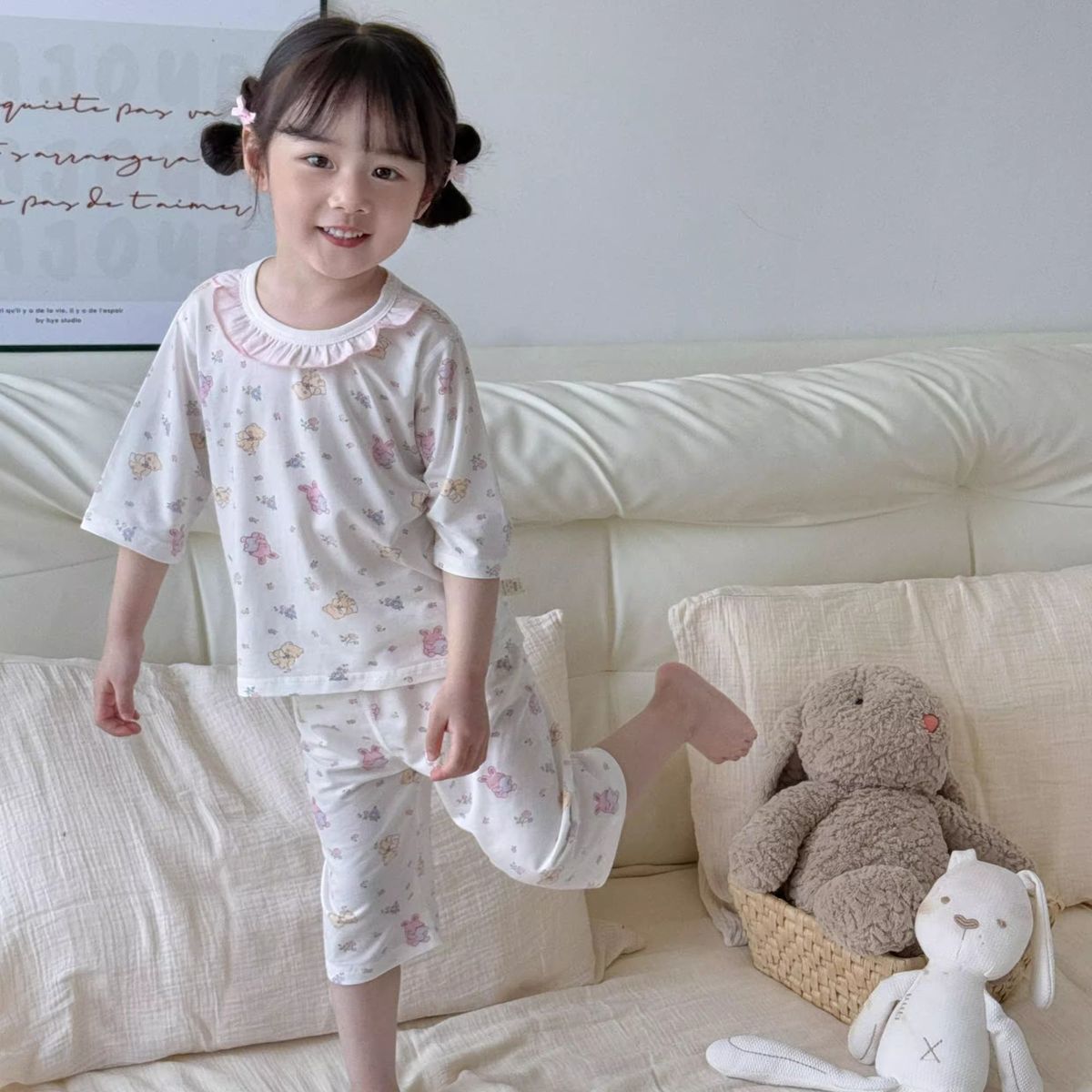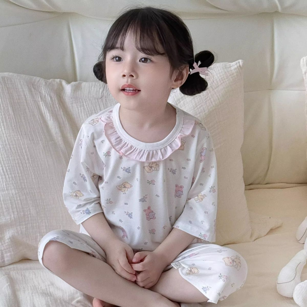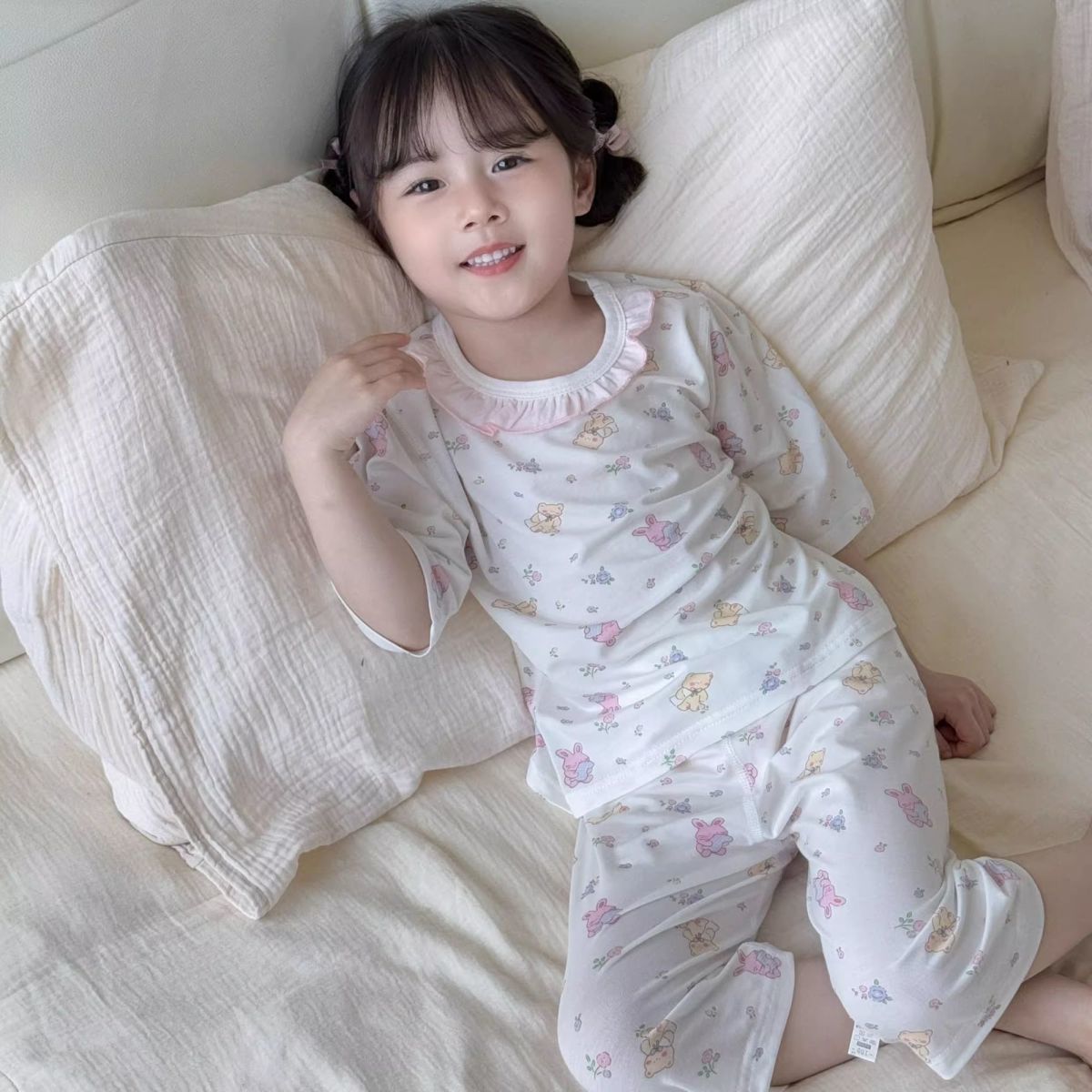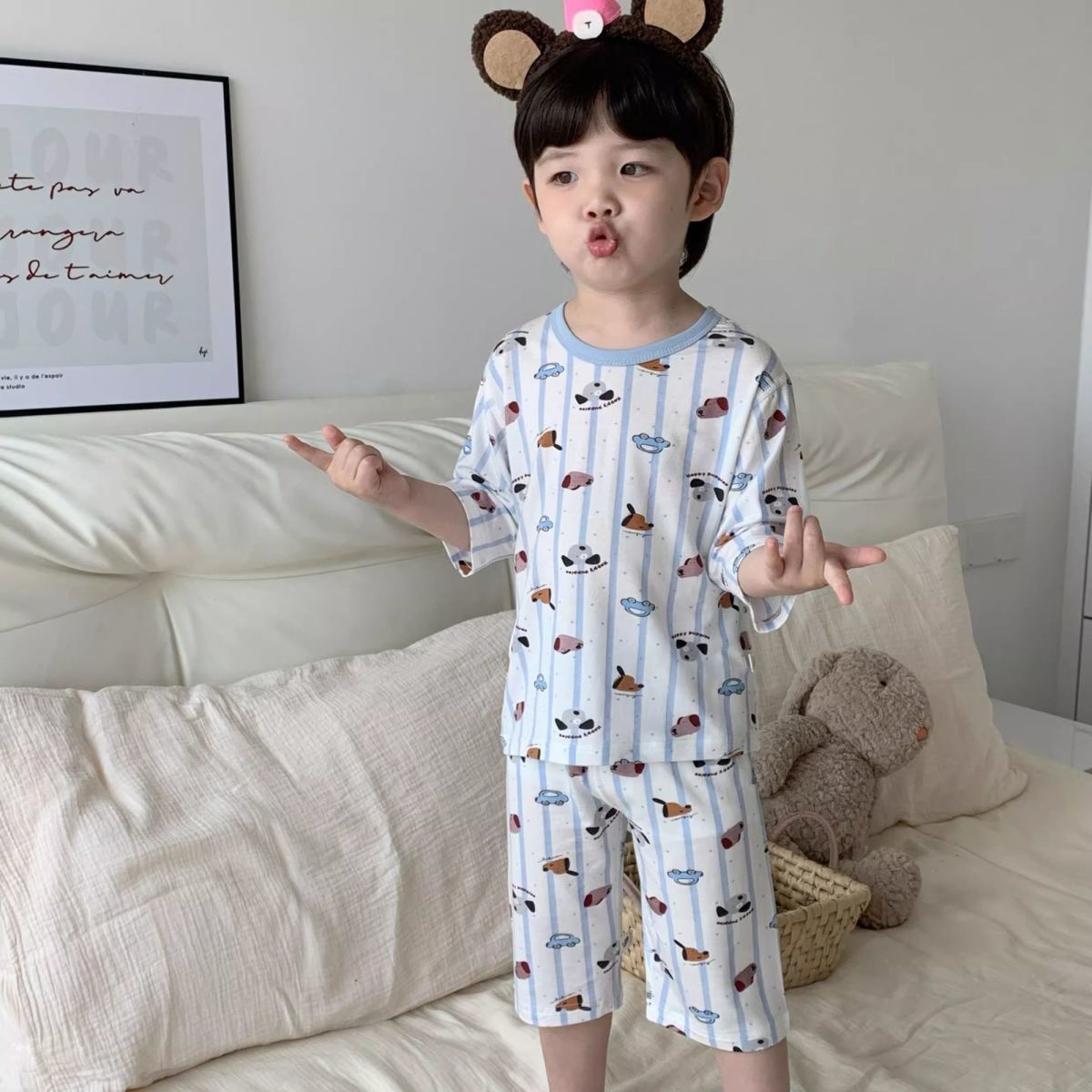 여름 아동복 세트, 남아용 7부소매 얇은 잠옷, 여아용 텐셀 통기성 에어컨 의류스토어 가기