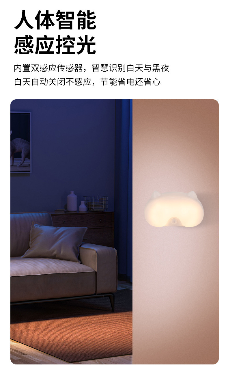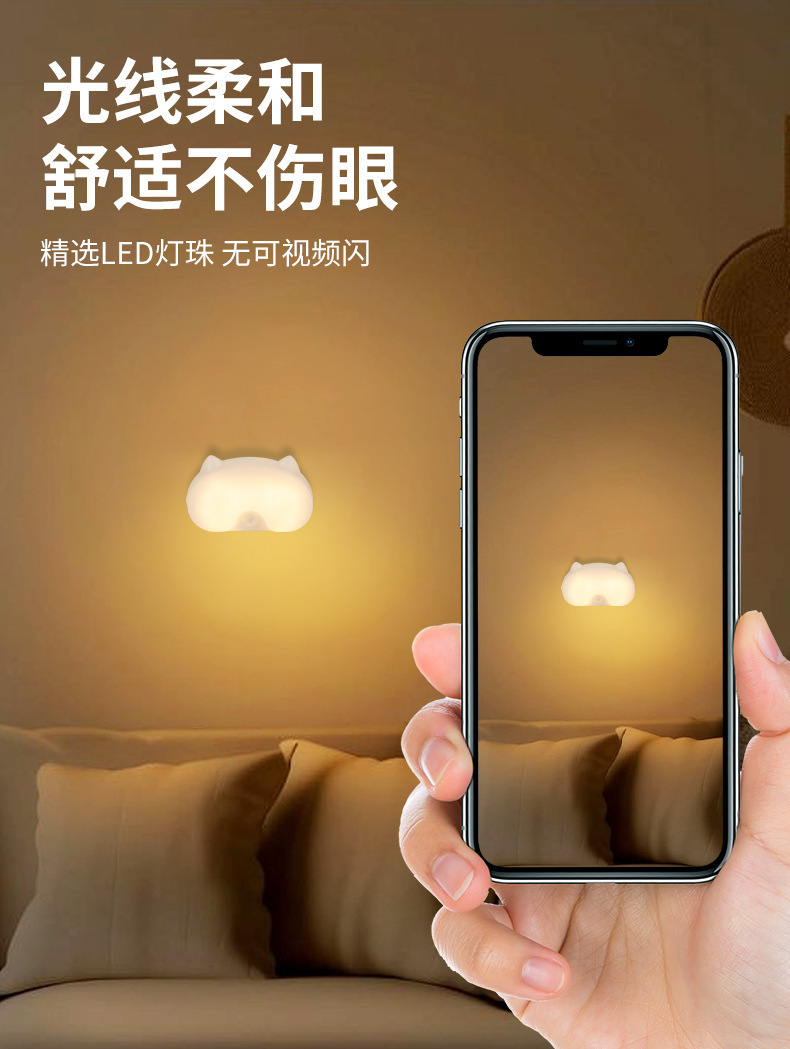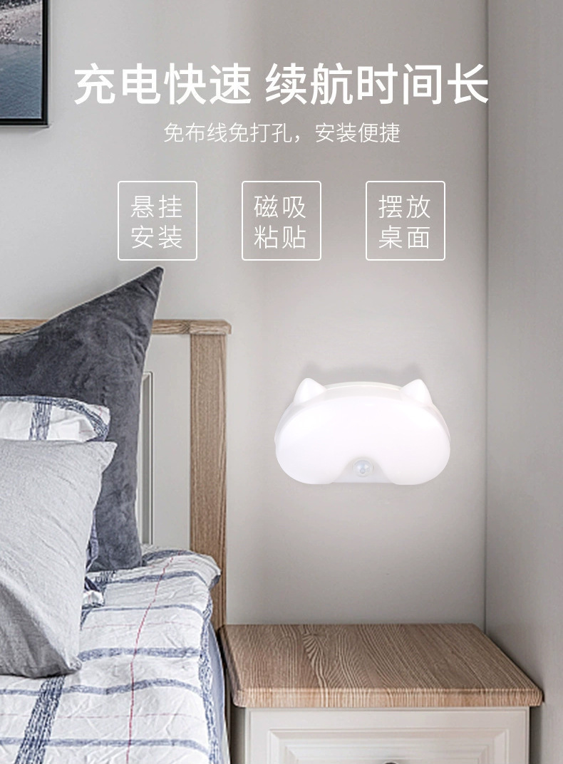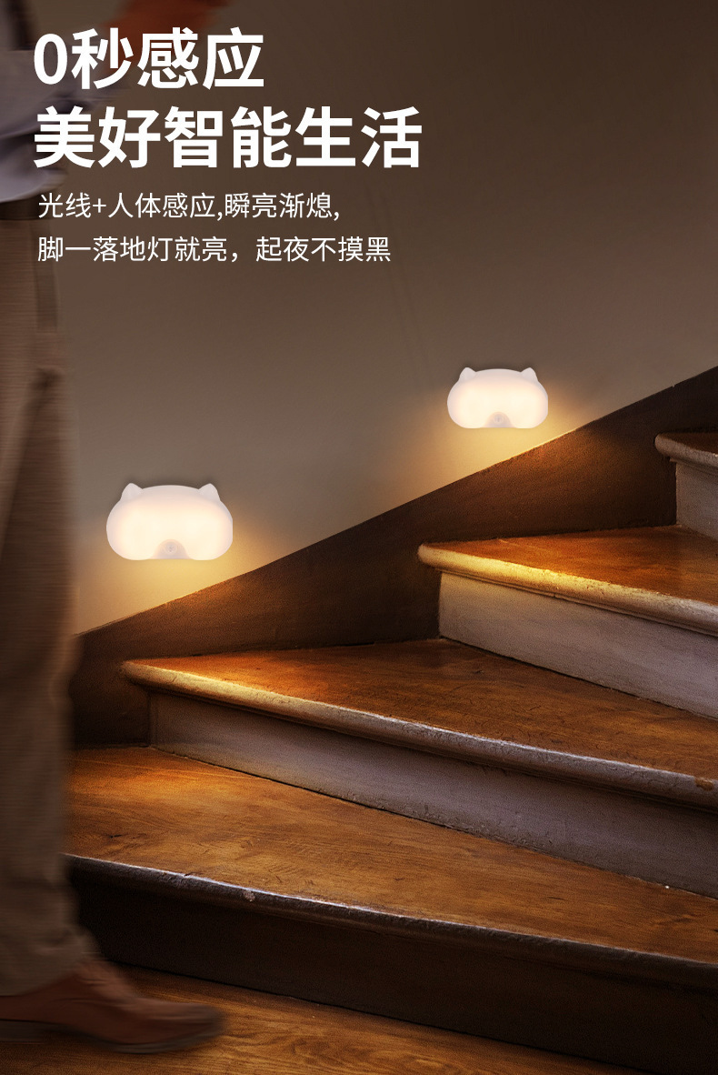 배선이 필요 없는 새로운 충전식 야간 조명, 방 발코니, 욕실, 현관, 통로 지연 인체 유도 램프, 따뜻한 빛