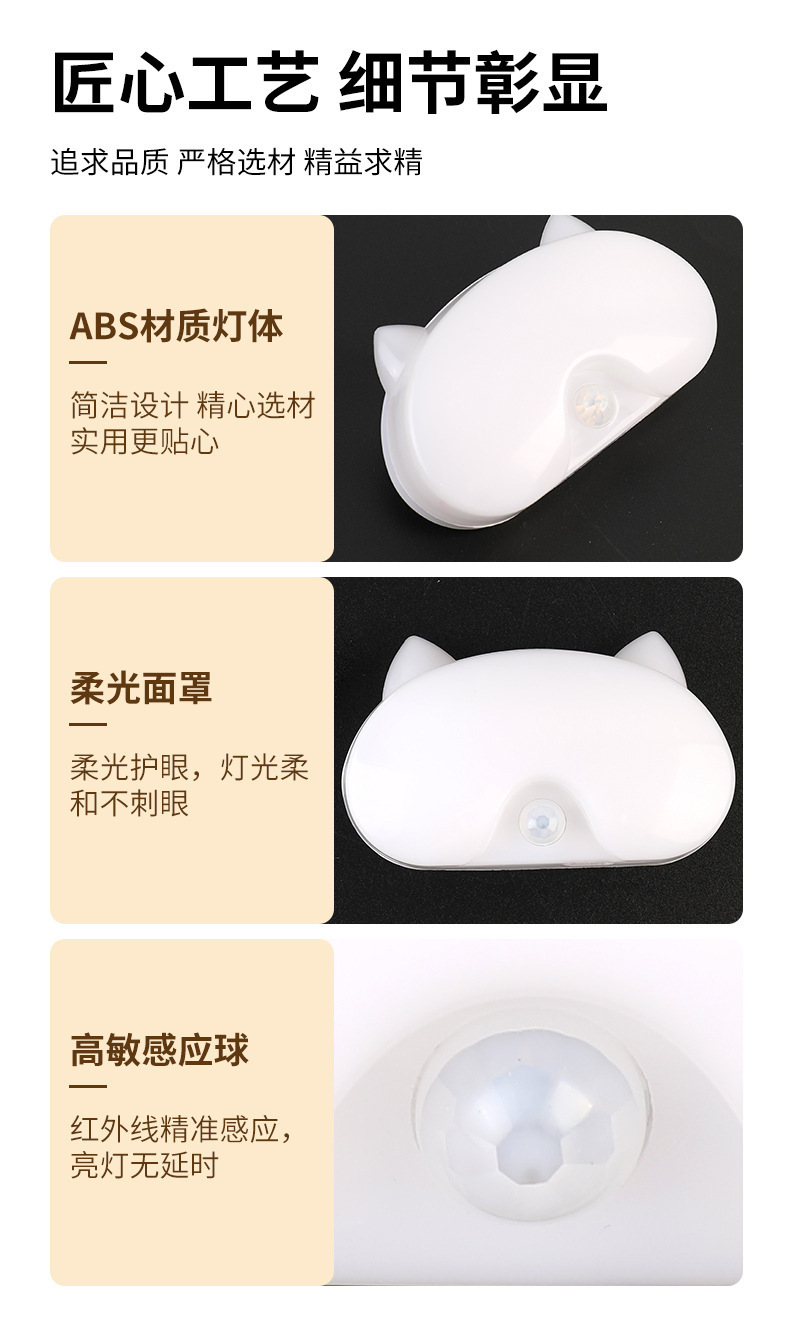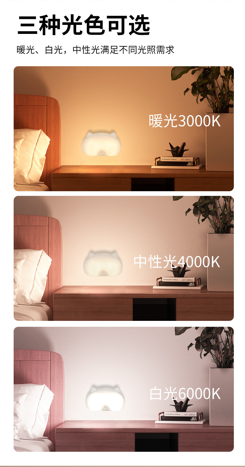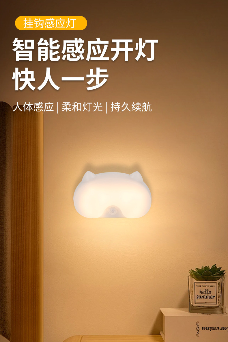 배선이 필요 없는 새로운 충전식 야간 조명, 방 발코니, 욕실, 현관, 통로 지연 인체 유도 램프, 따뜻한 빛