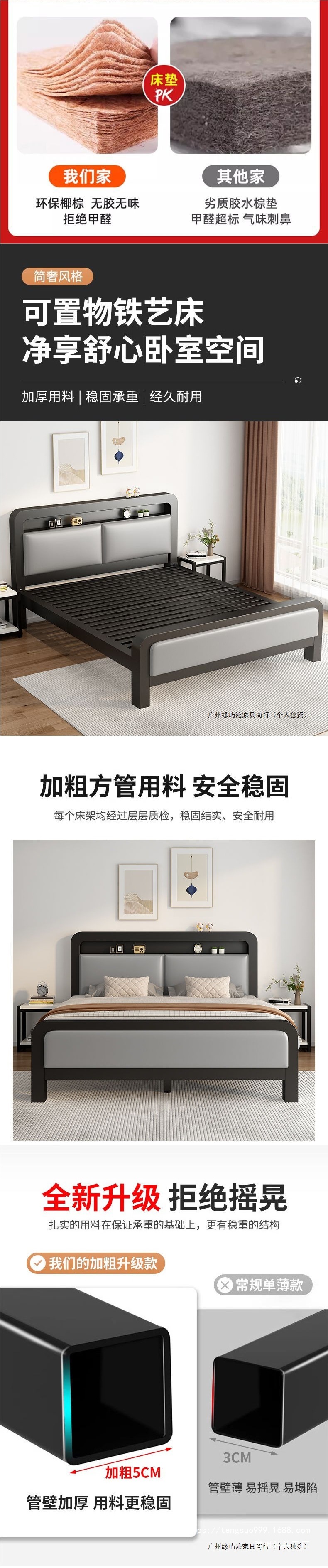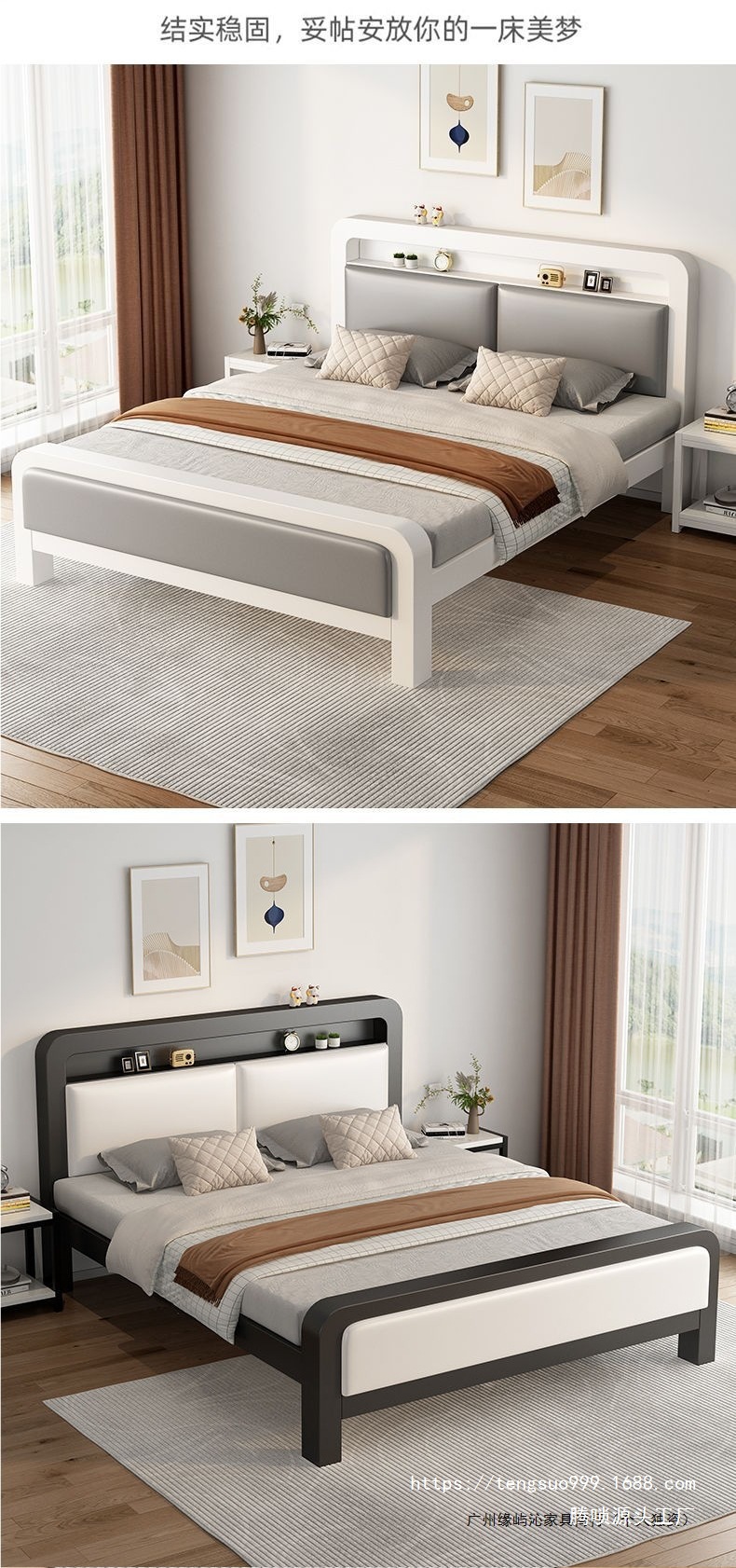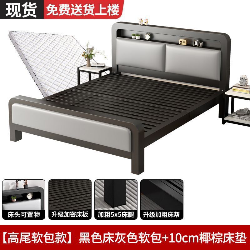 가정용 침실용 단철 침대 두껍고 강화된 스테인레스 스틸 더블 침대 간단한 철 프레임 임대용 싱글 침대스토어 가기