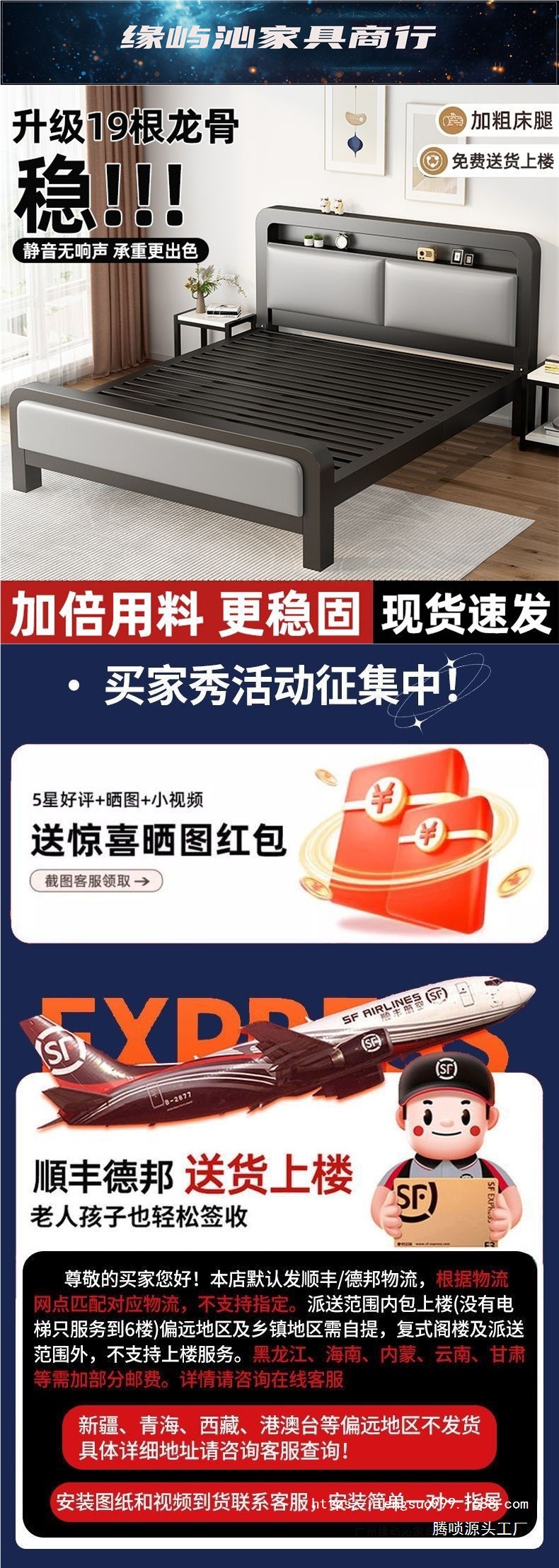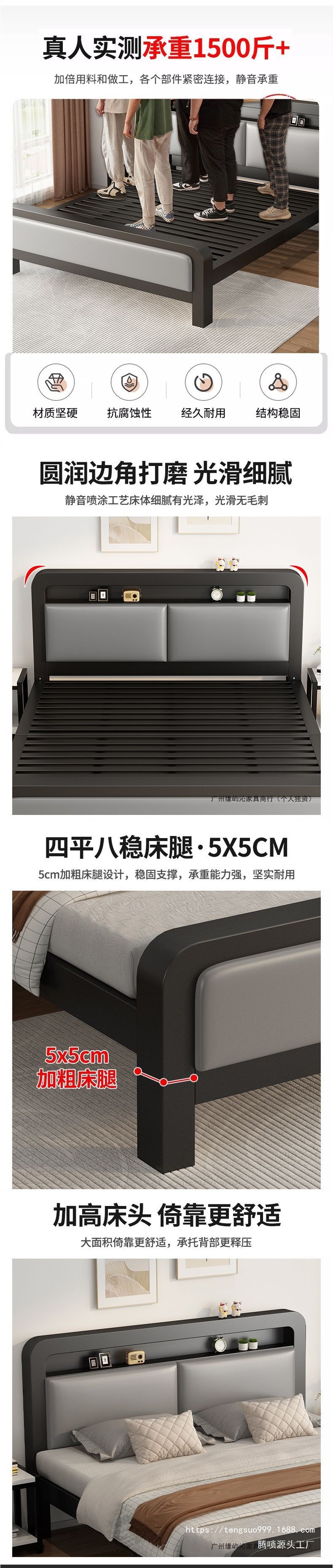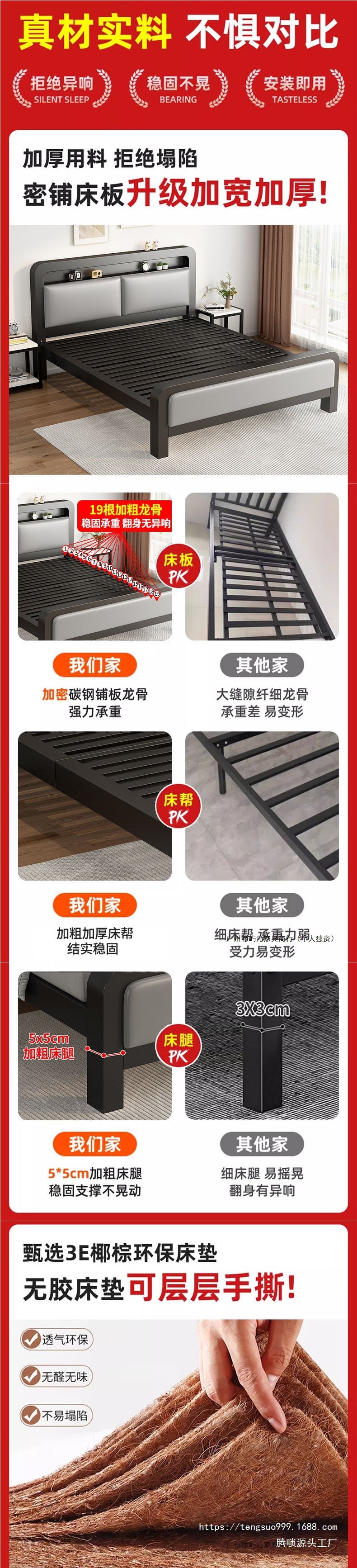 가정용 침실용 단철 침대 두껍고 강화된 스테인레스 스틸 더블 침대 간단한 철 프레임 임대용 싱글 침대스토어 가기
