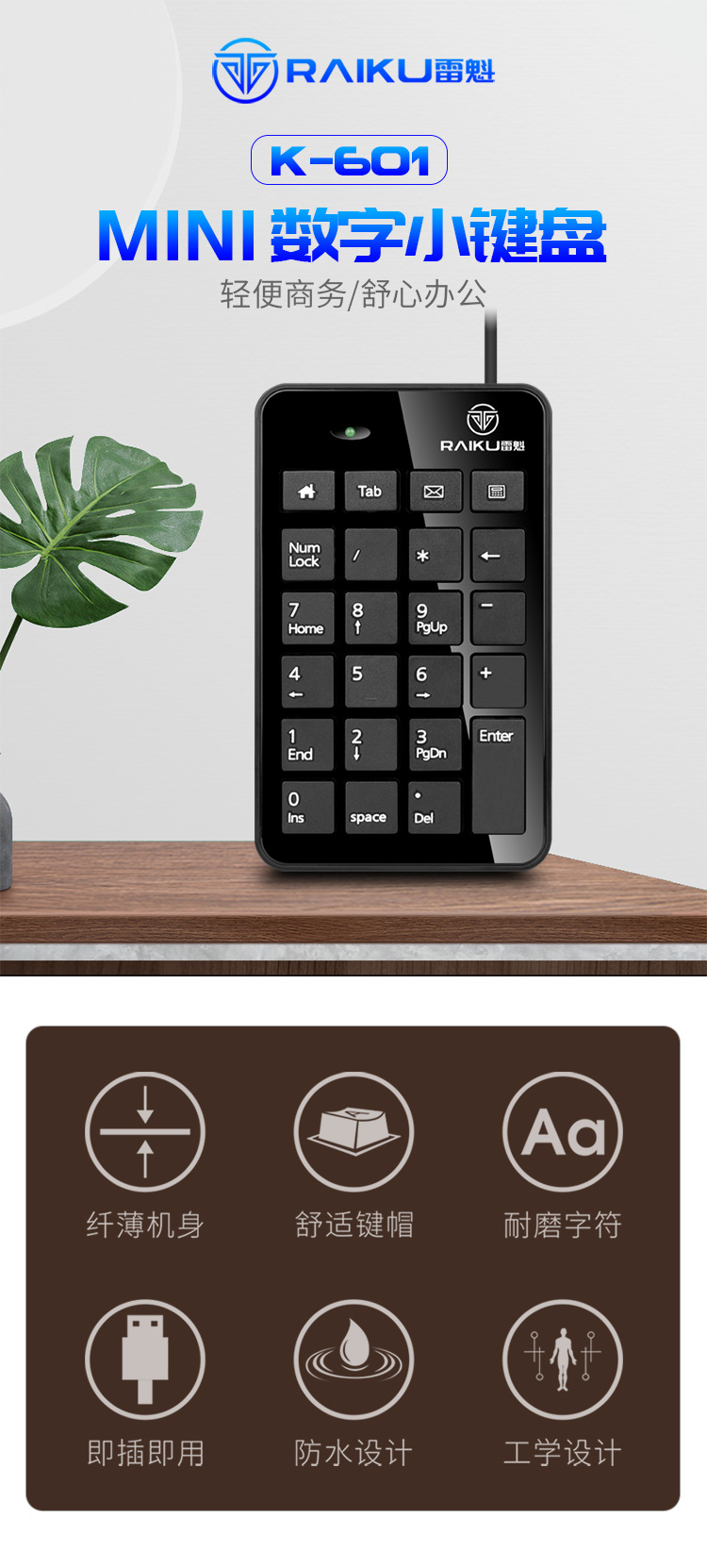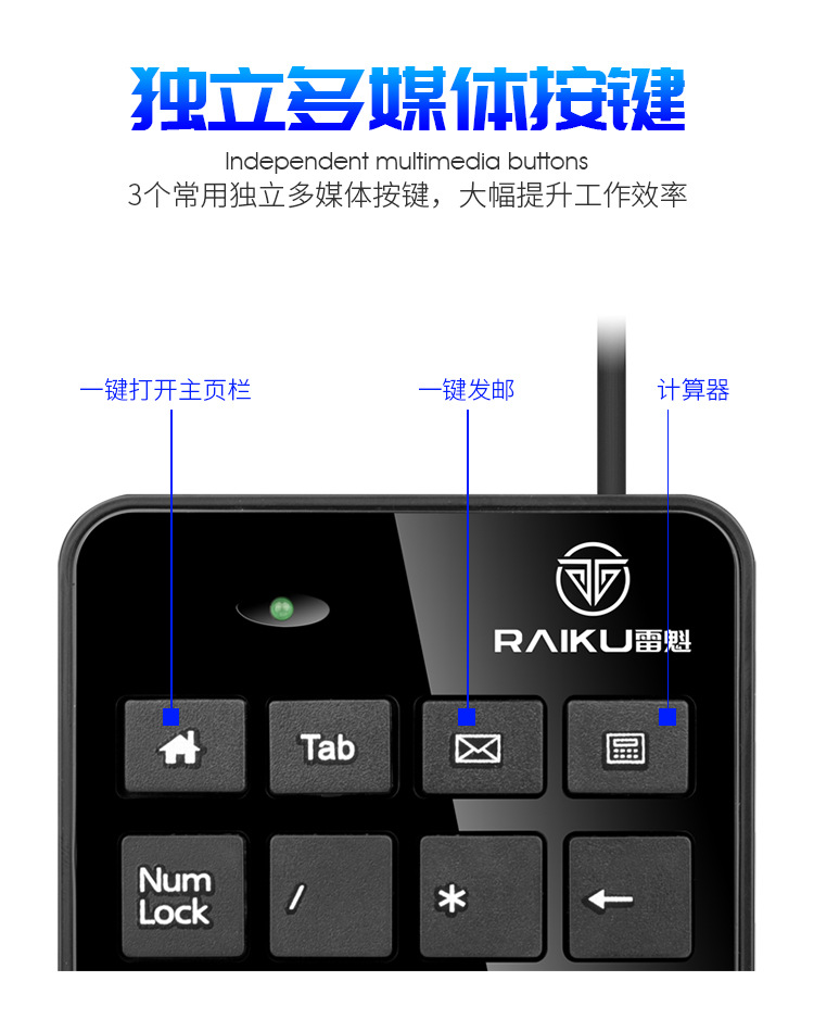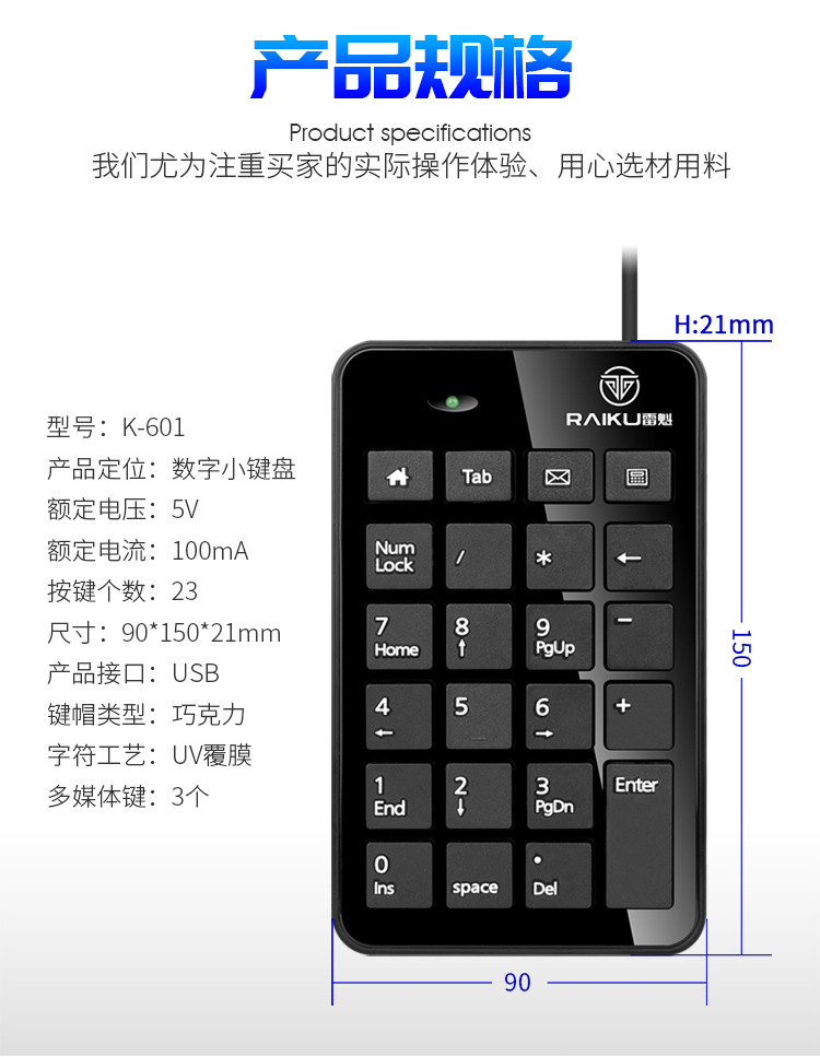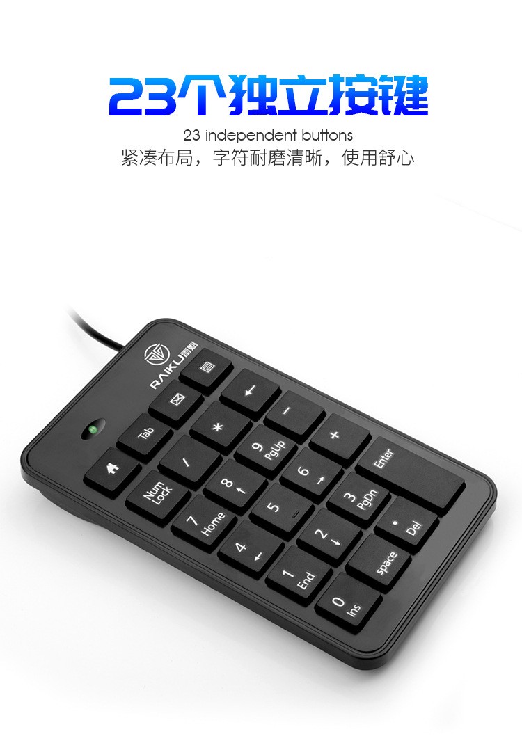 무료 배송 RAIKU Leikui K-601 디지털 키패드 usb 미니 23 키 회계 키보드 금융 유선 키보드스토어 가기